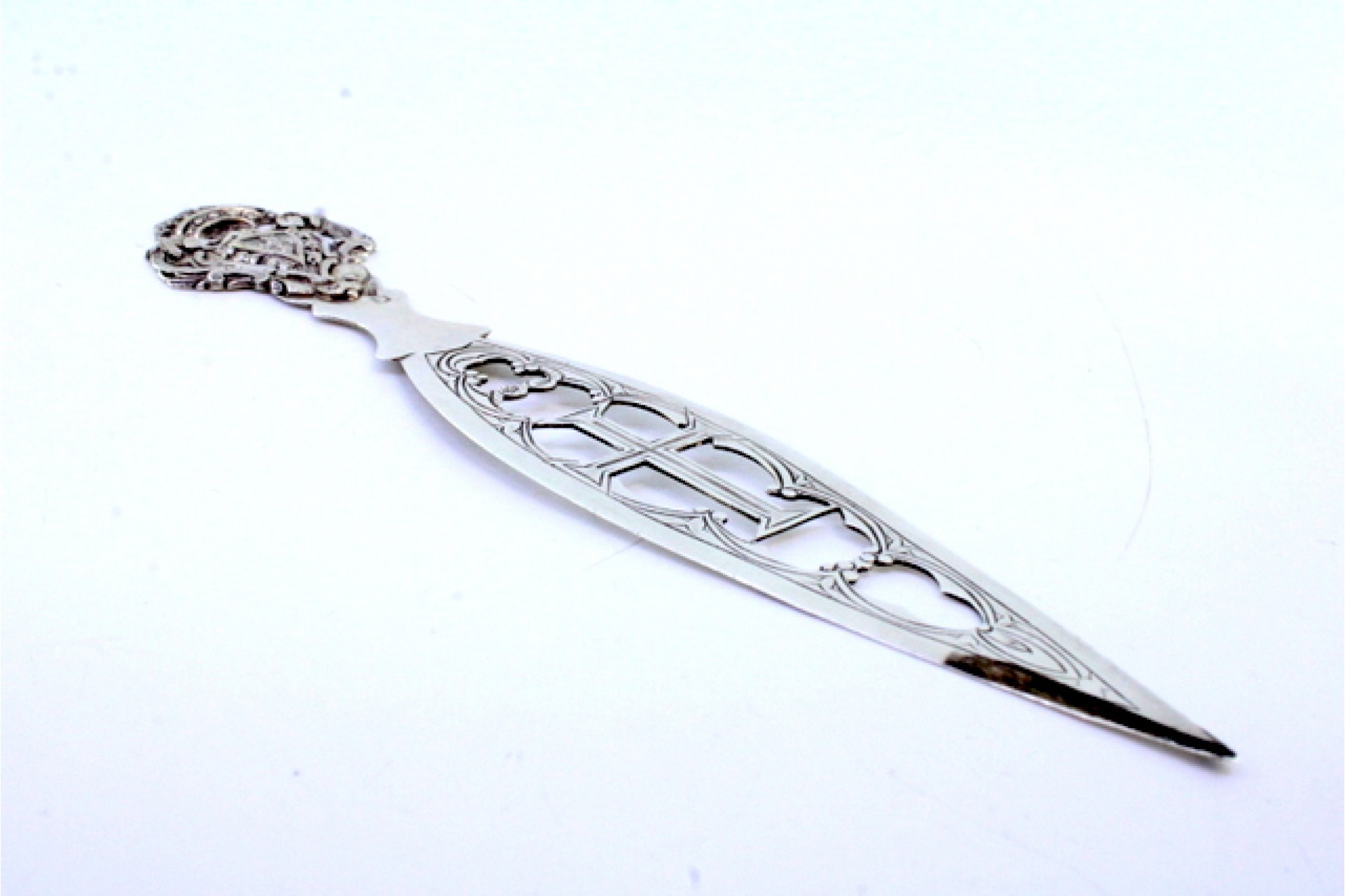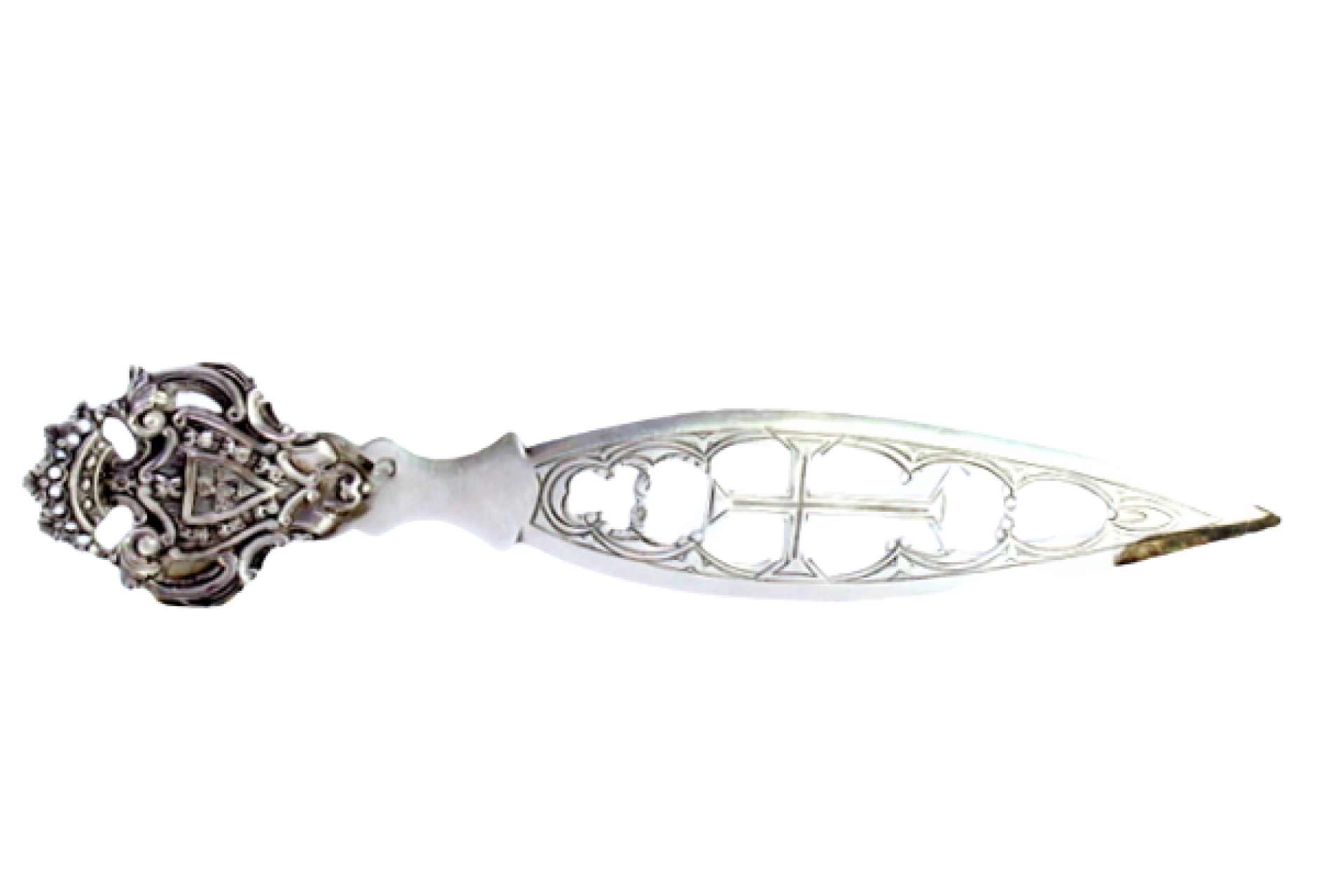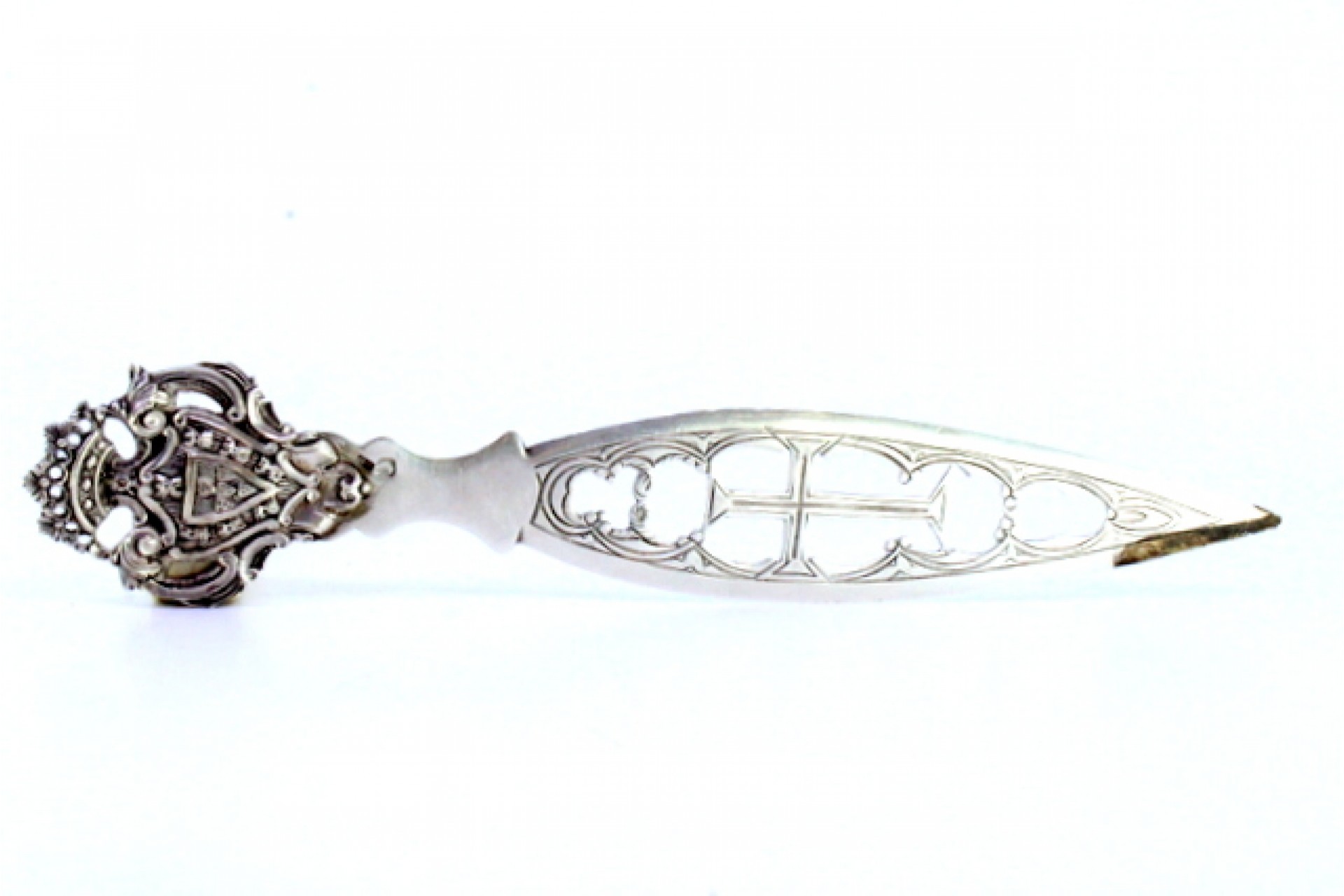 Etiquetas: Abre cartas, Prata, Cruz, Brasão, Relevos