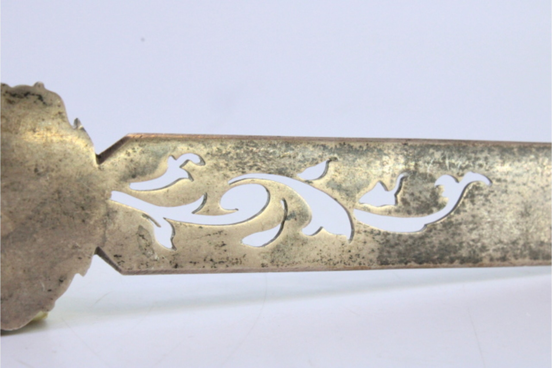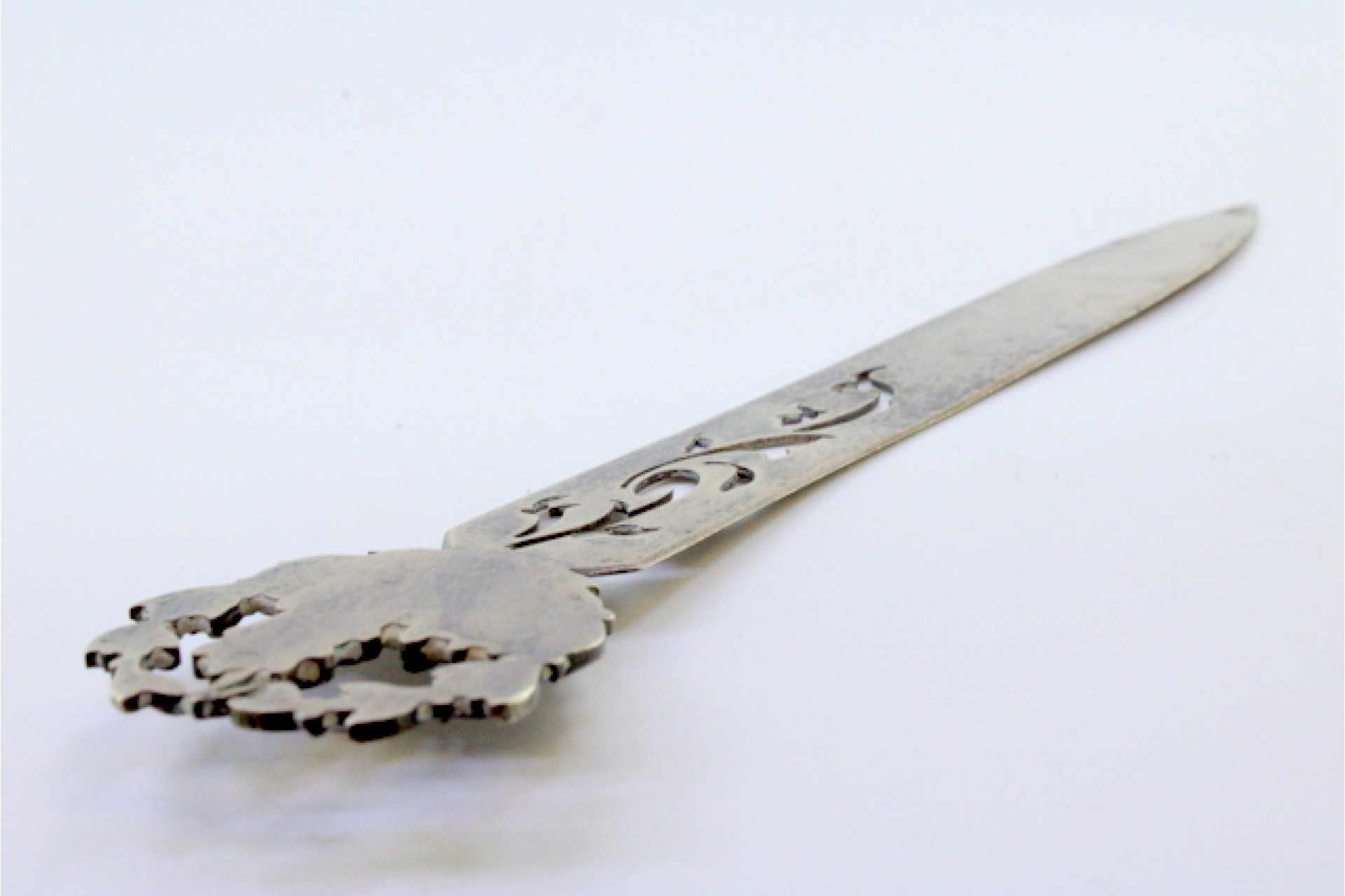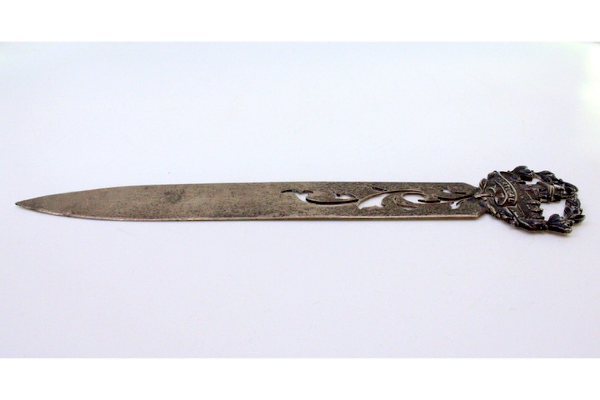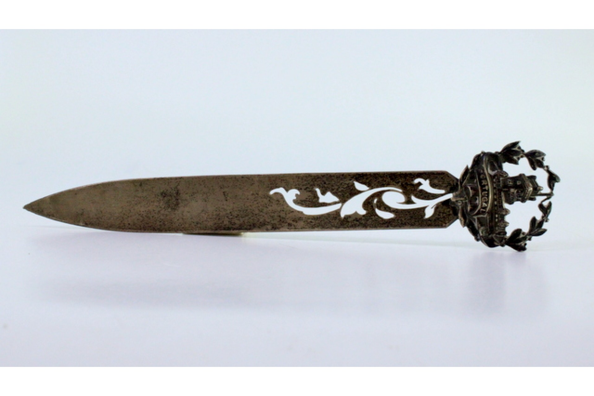 Abre cartas em prata com alto relevo da Torre de Belém no cabo e lâmina recortada.