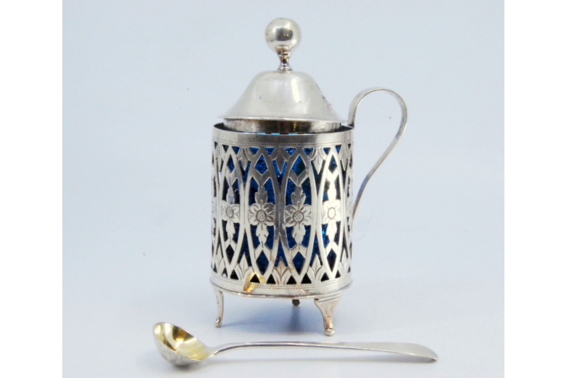 • Descrição: Açucareiro em prata com estrutura recortada e interior em vidro com pá de açucar e tampa com pega redonda