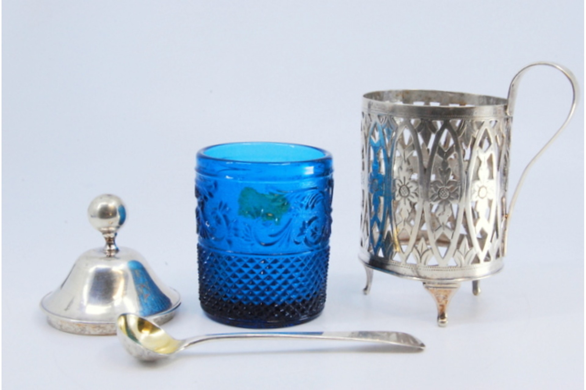 Etiquetas: Açucareiro, Prata, Vidro, Açúcar, Relevos