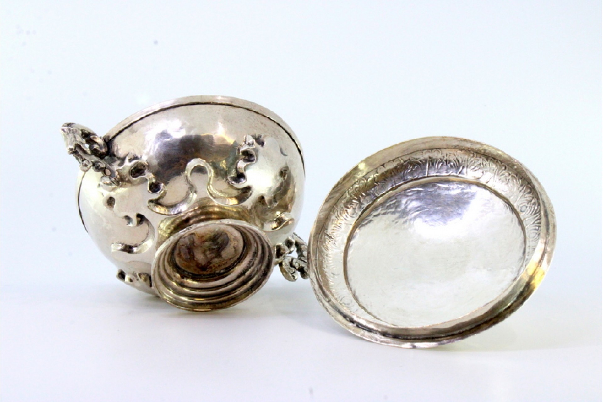 Etiquetas: Açucareiro, Prata, Relevo, Pomo