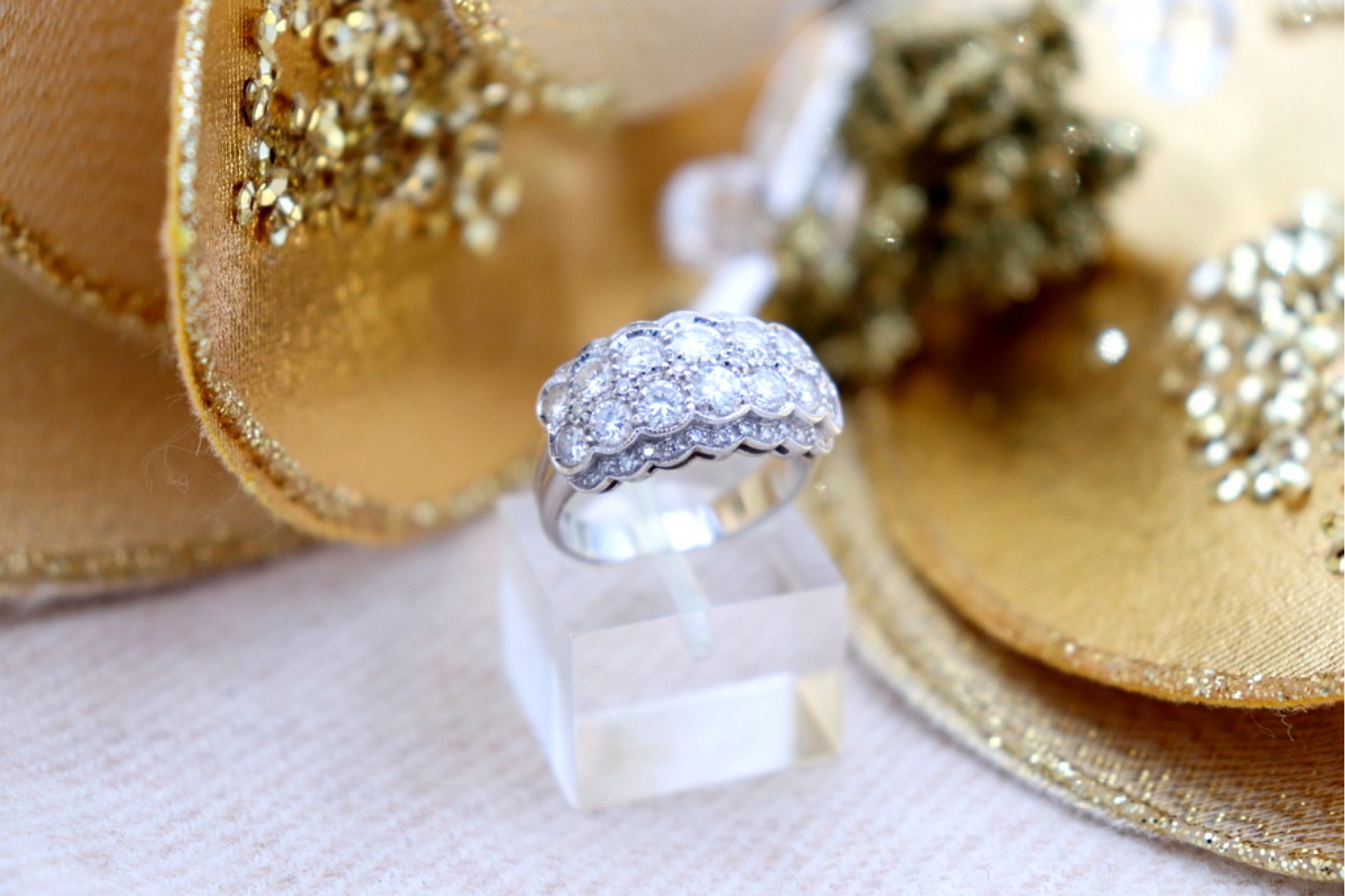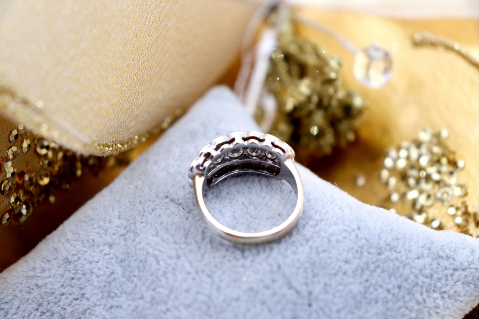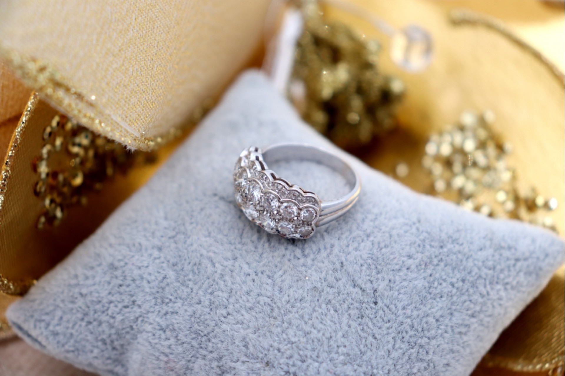 Anel em ouro com aro relevado e diamantes