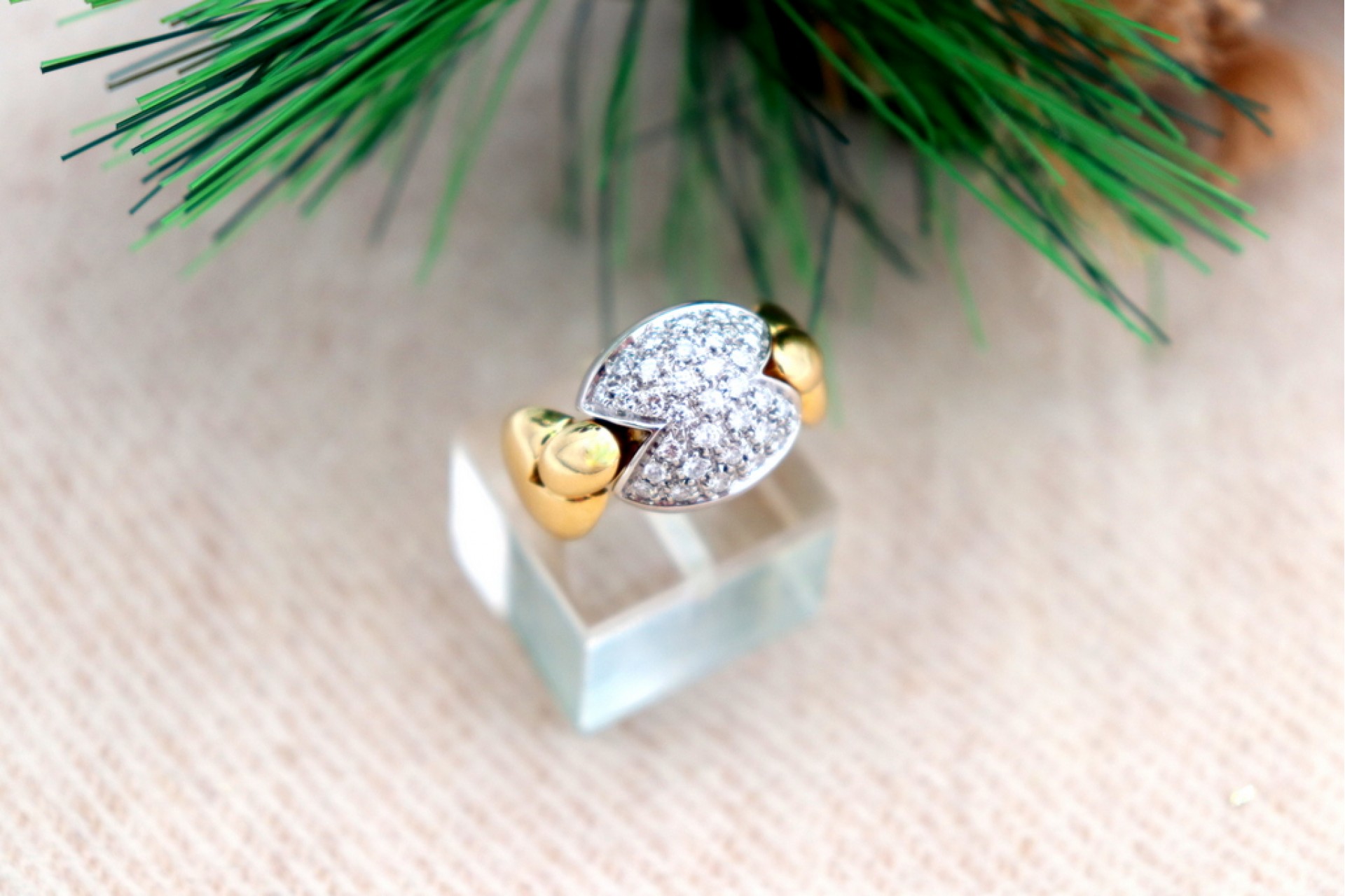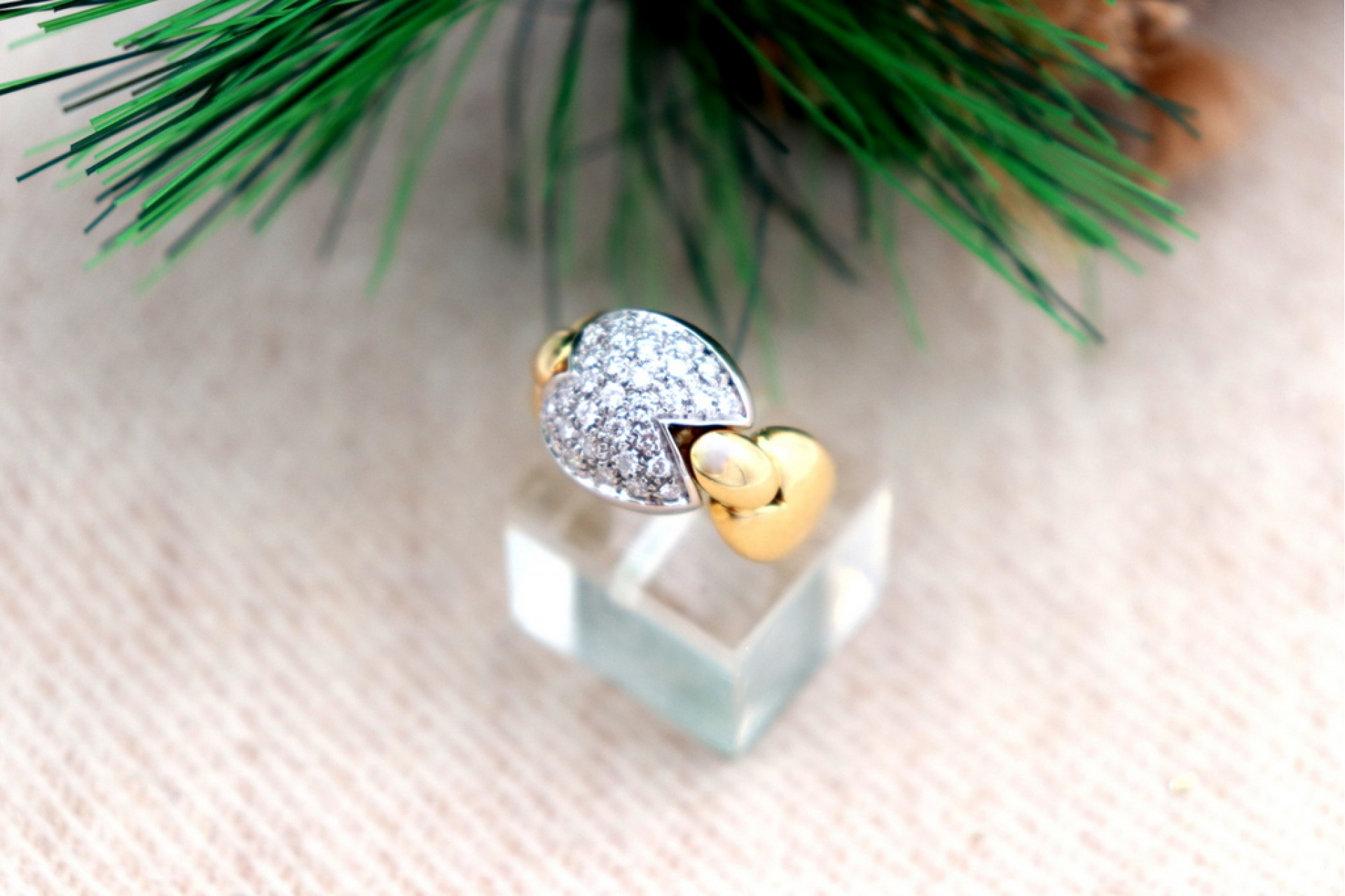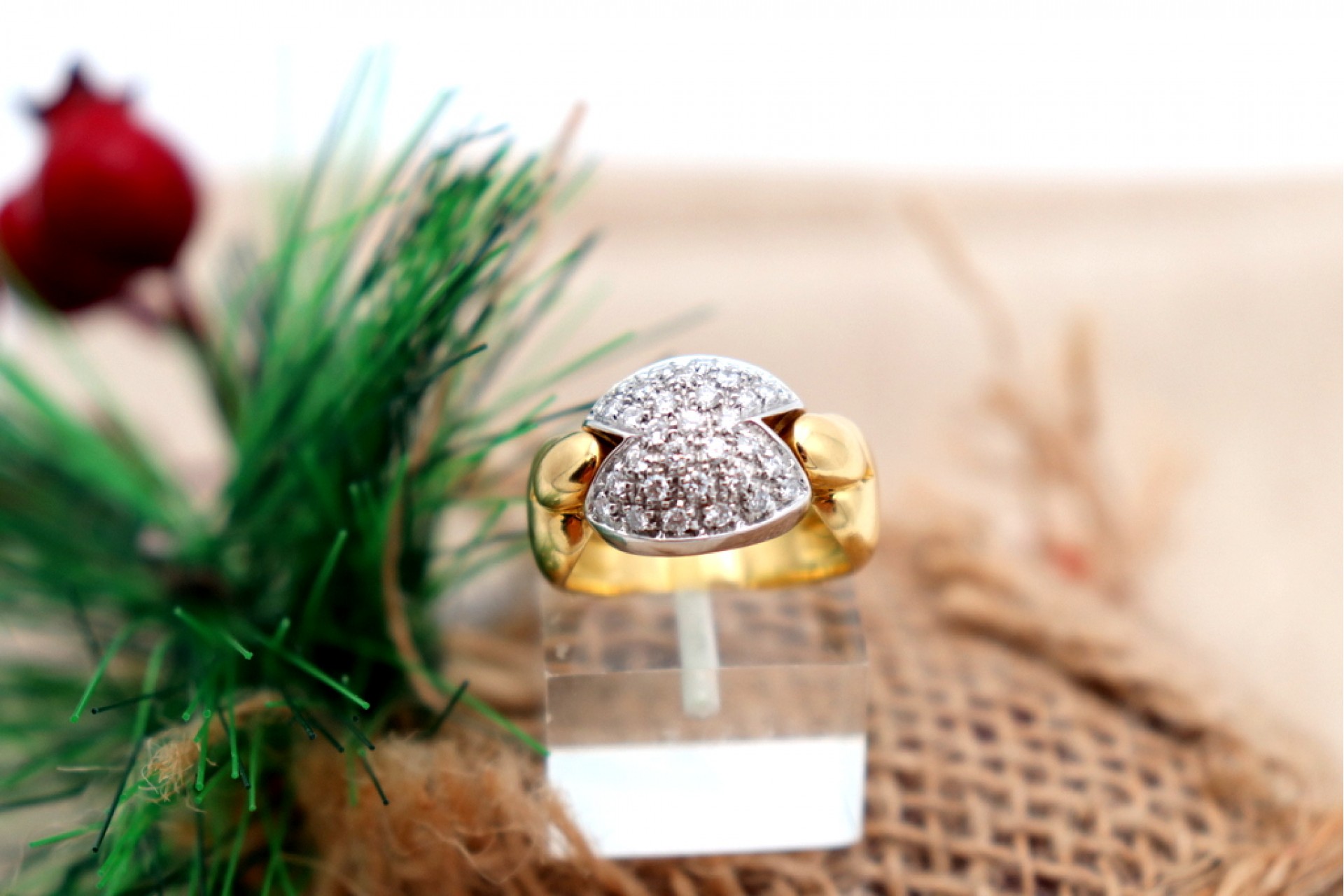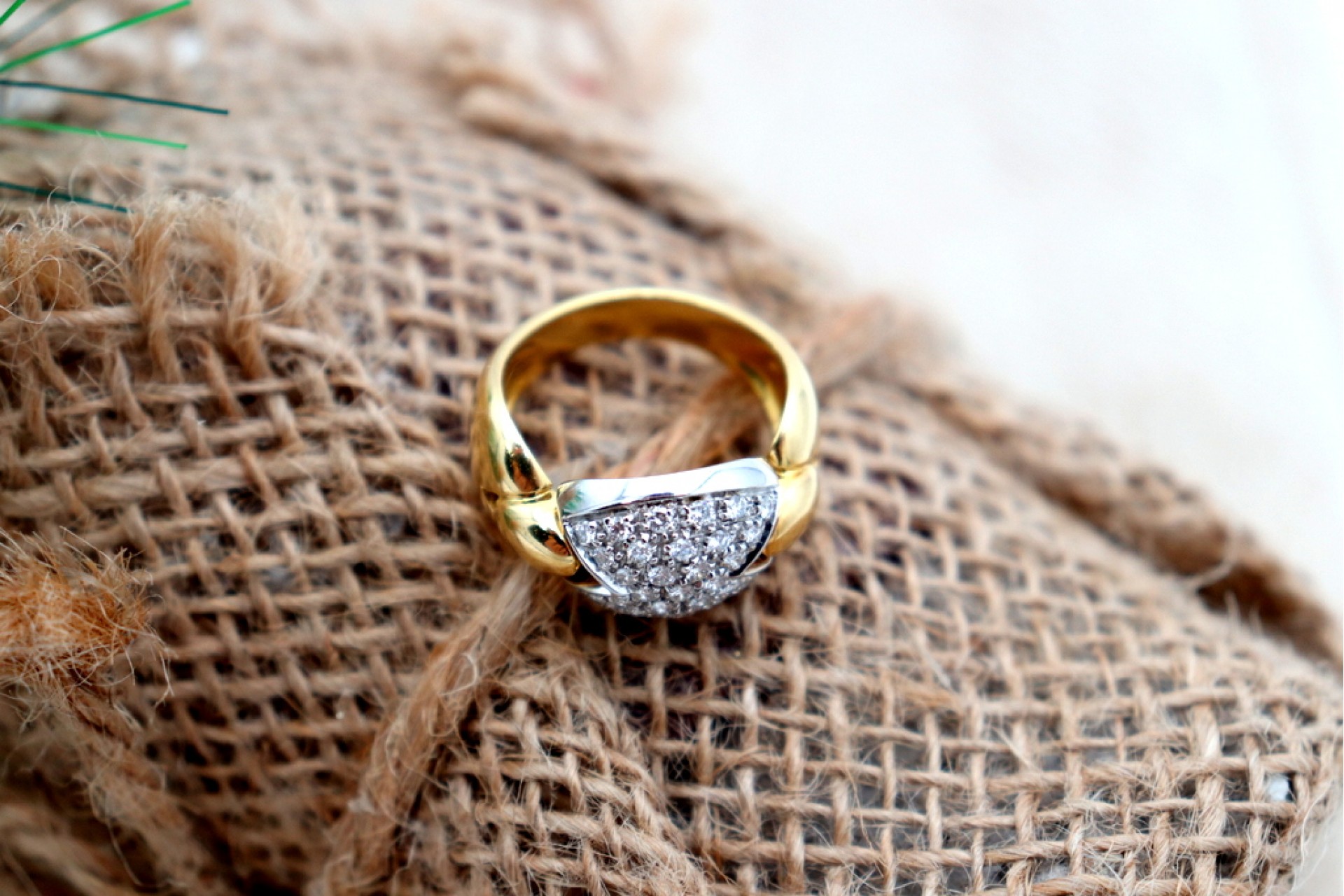 • Descrição: Anel em ouro bicolor com diamantes (31) em talhe brilhante 8/8.