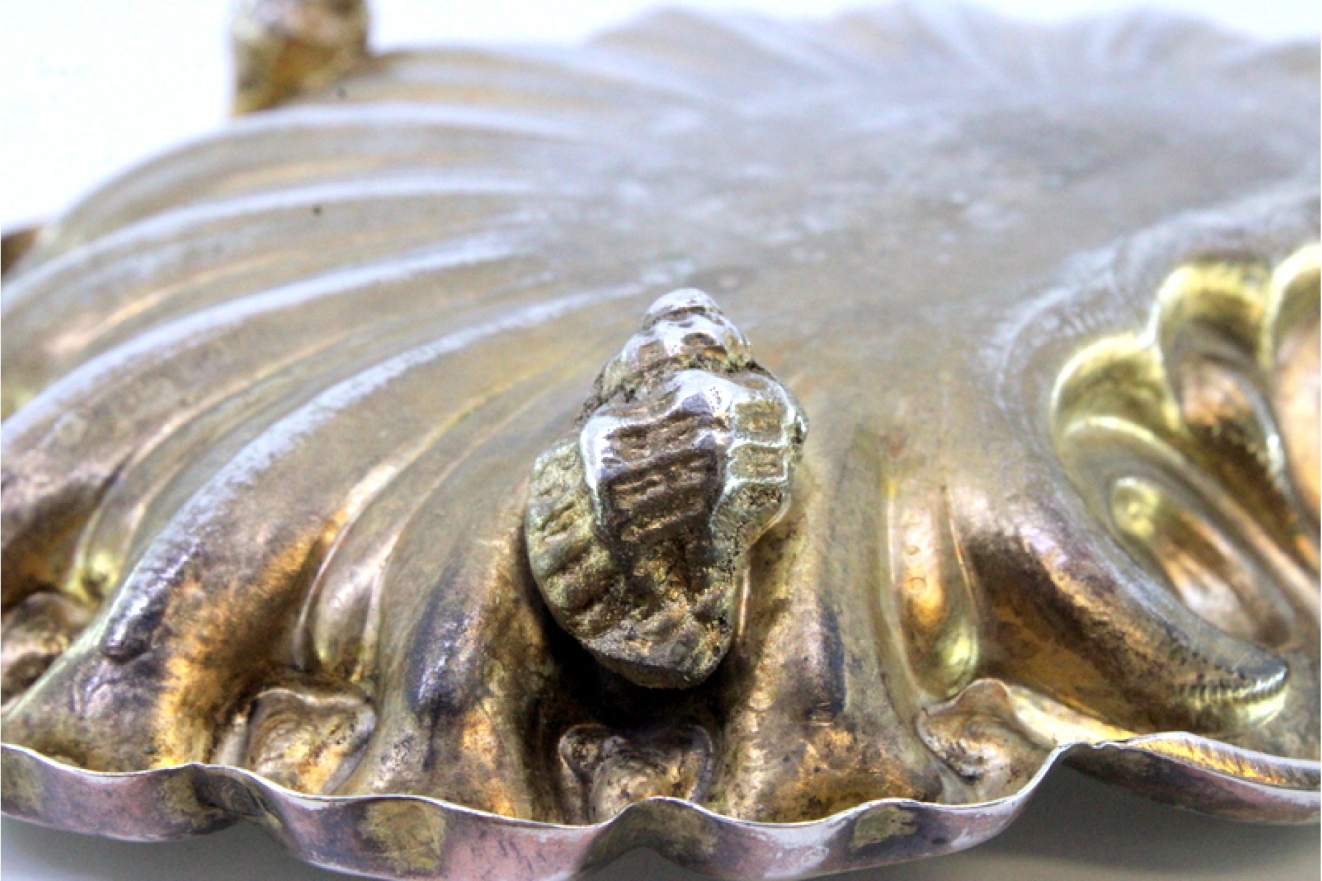 • Descrição: Aneleira em prata em forma de concha com relevos e assente em três pés em forma de búzios.