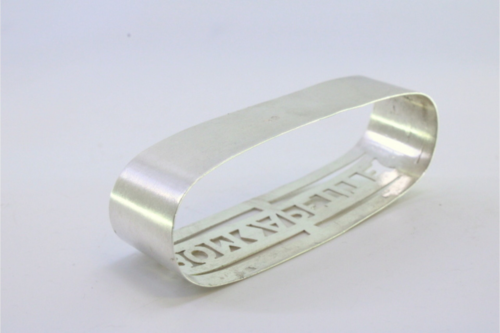• Descrição: Argola de guardanapo em prata arredondada com letras recortadas "BOM APETITE".