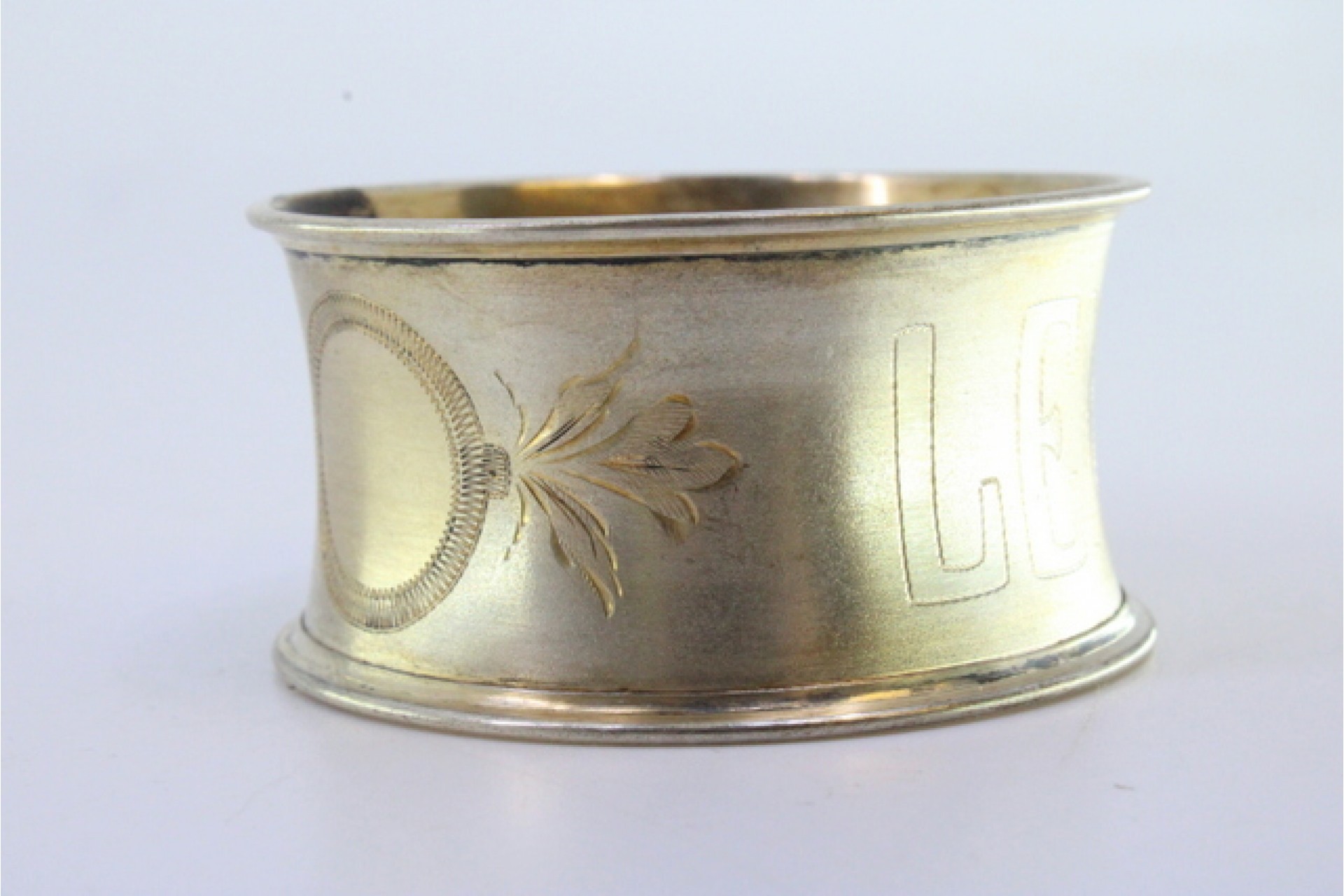 Etiquetas: Argola Guardanapo, Prata, Relevos, Monograma, Lembrança