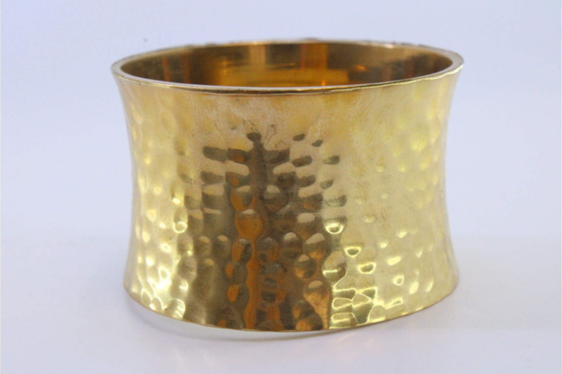 • Descrição: Argola de guardanapo em prata martelada dourada