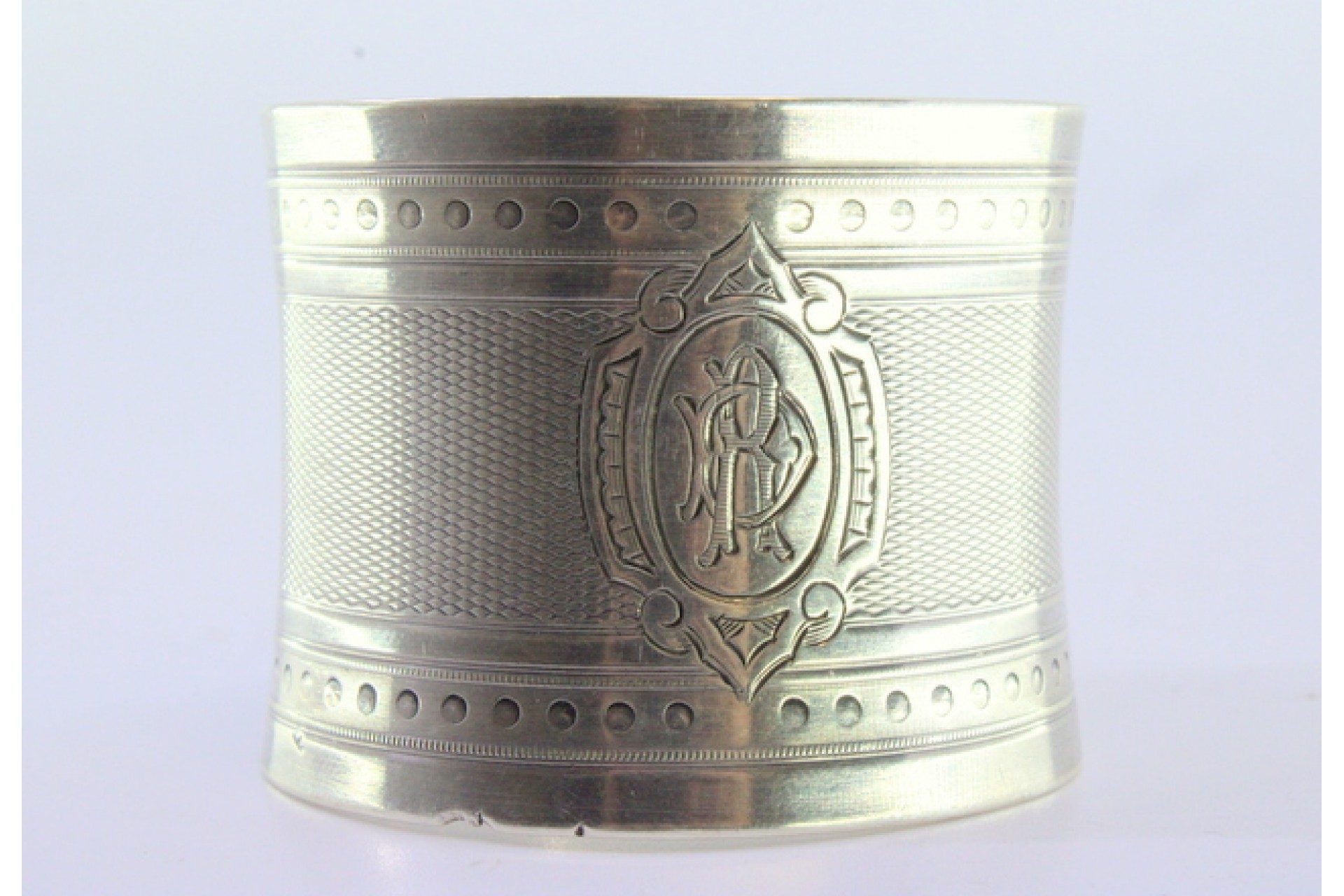 • Descrição: Argola de guardanapo em prata guilhochada com frisos envolvendo cartela para monograma.