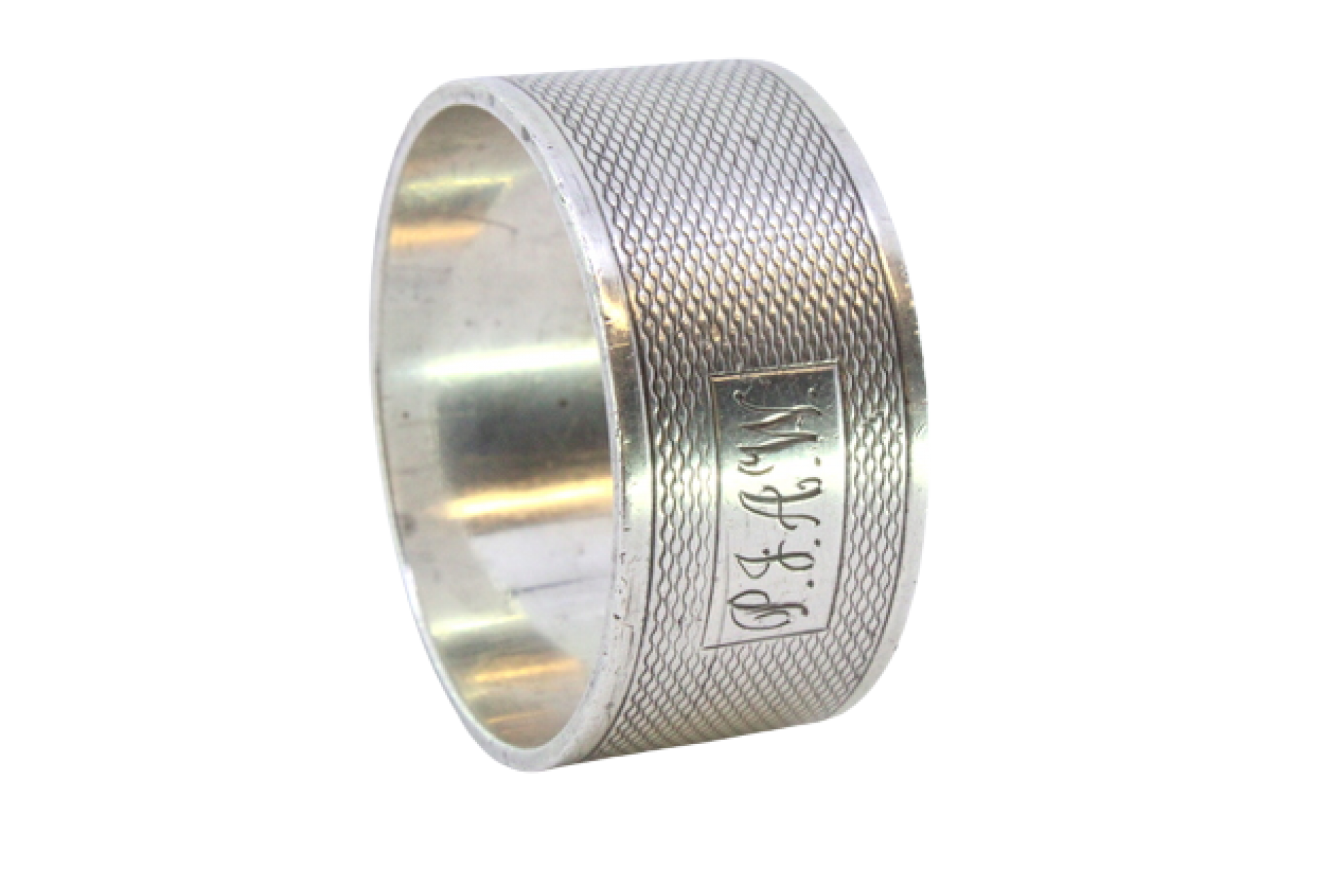 • Descrição: Argola de guardanapo em prata guilhochada com cartela para monograma.