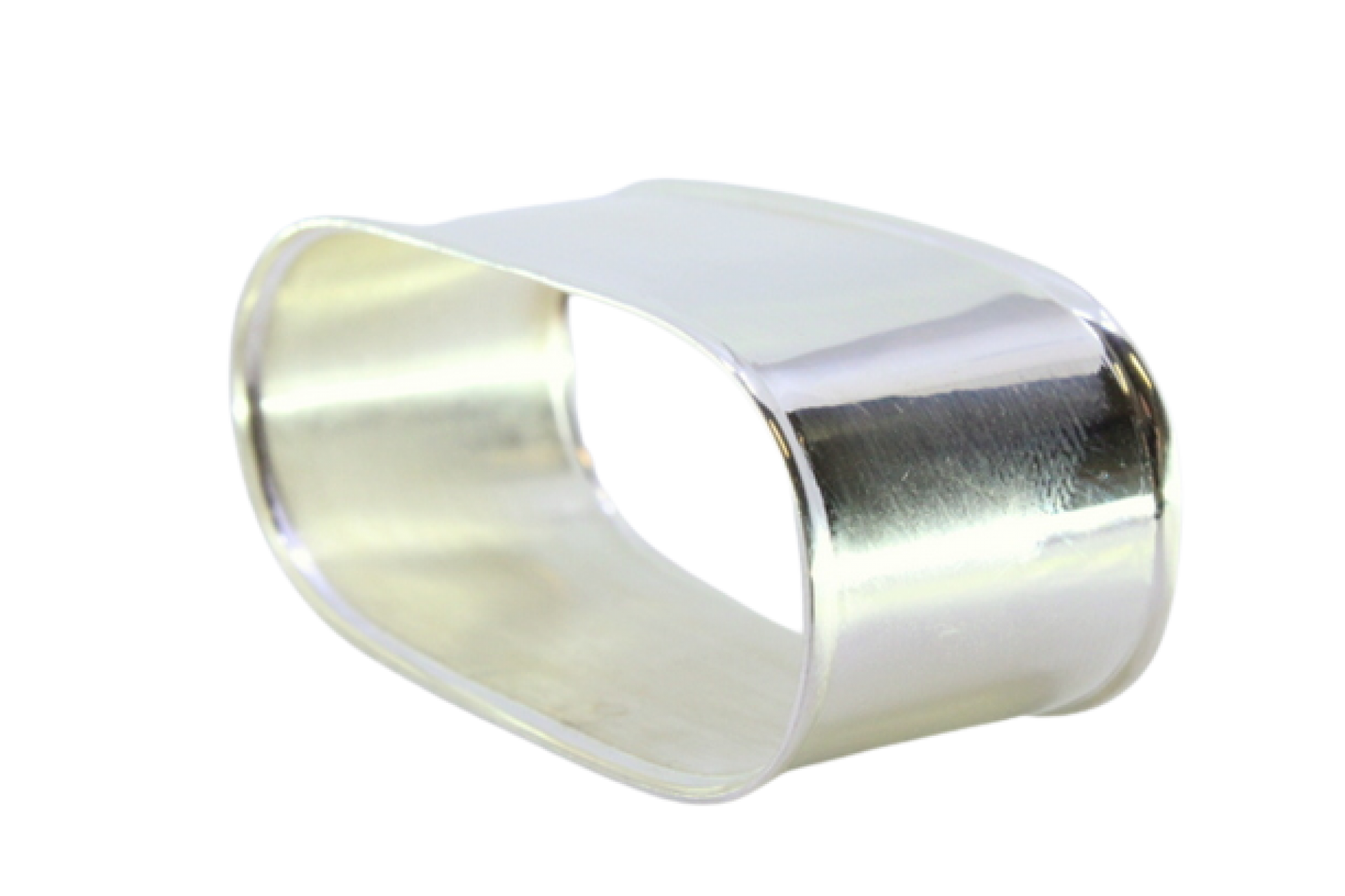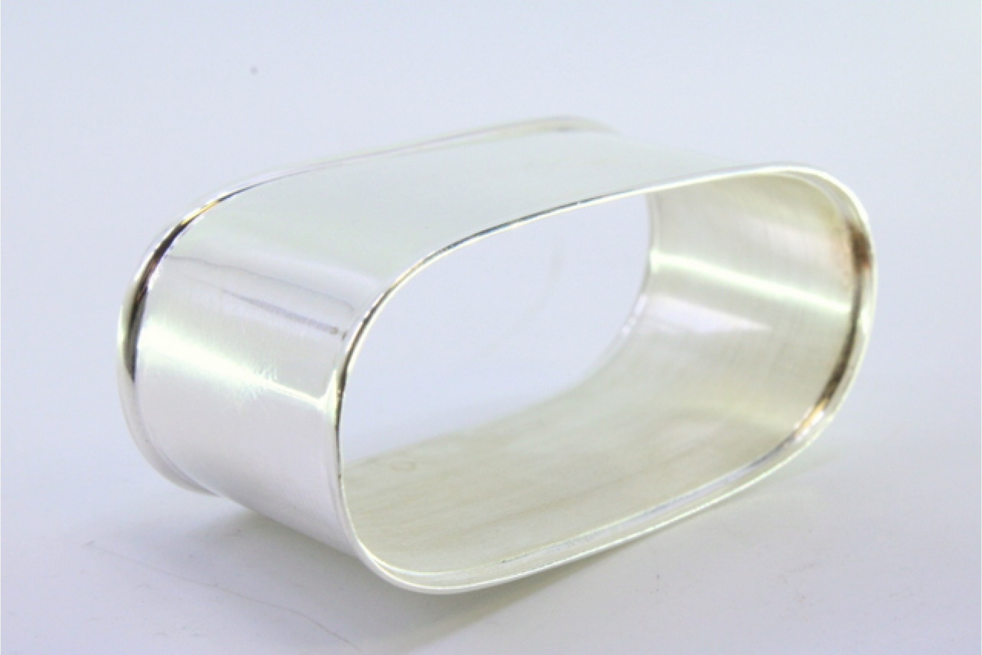 Argola de guardanapo em prata lisa de forma oval e rebordada na envolvência.