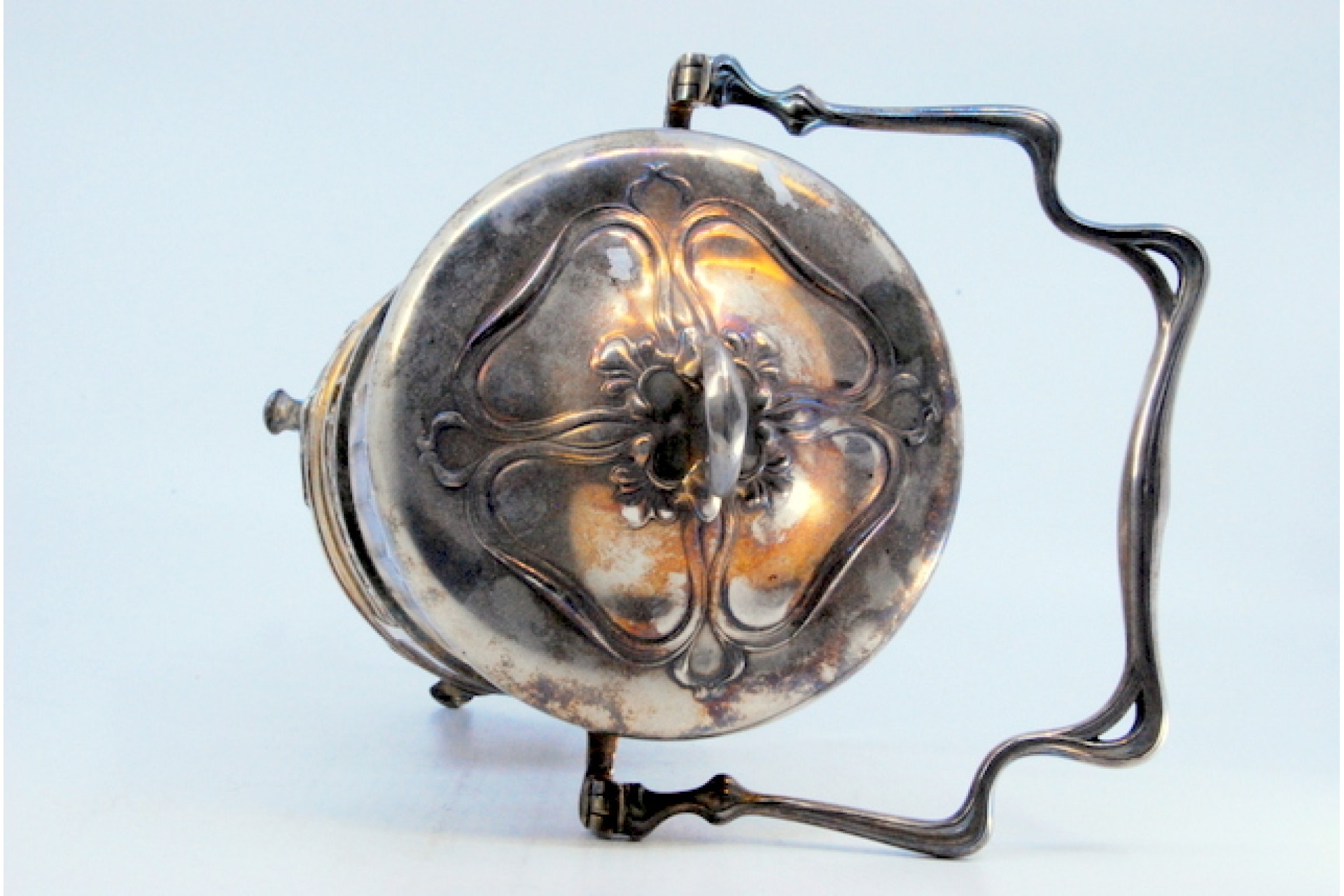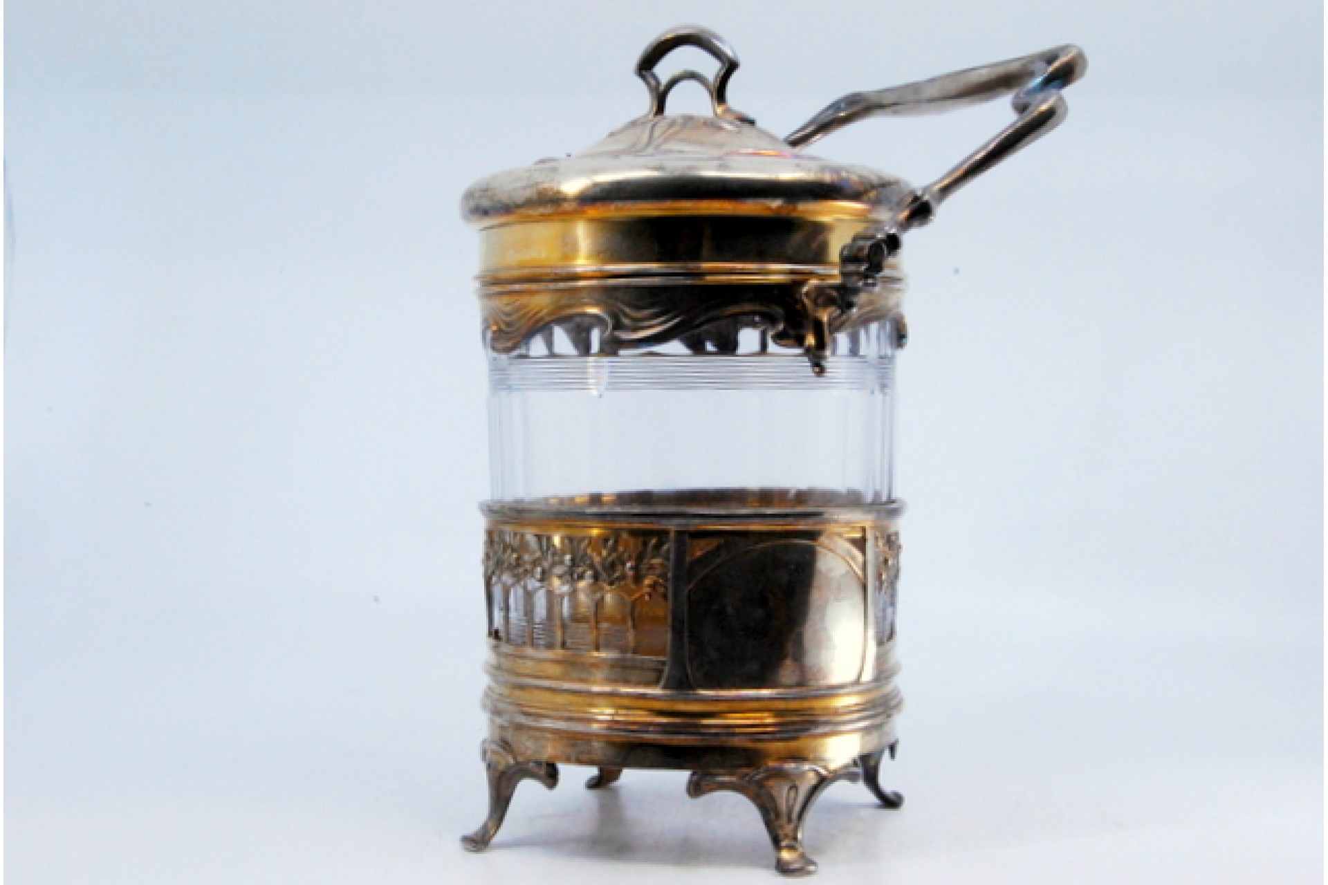 • Descrição: Balde de gelo em vidro lapidado com estrutura em prata recortada, tampa com relevos e aplicações.