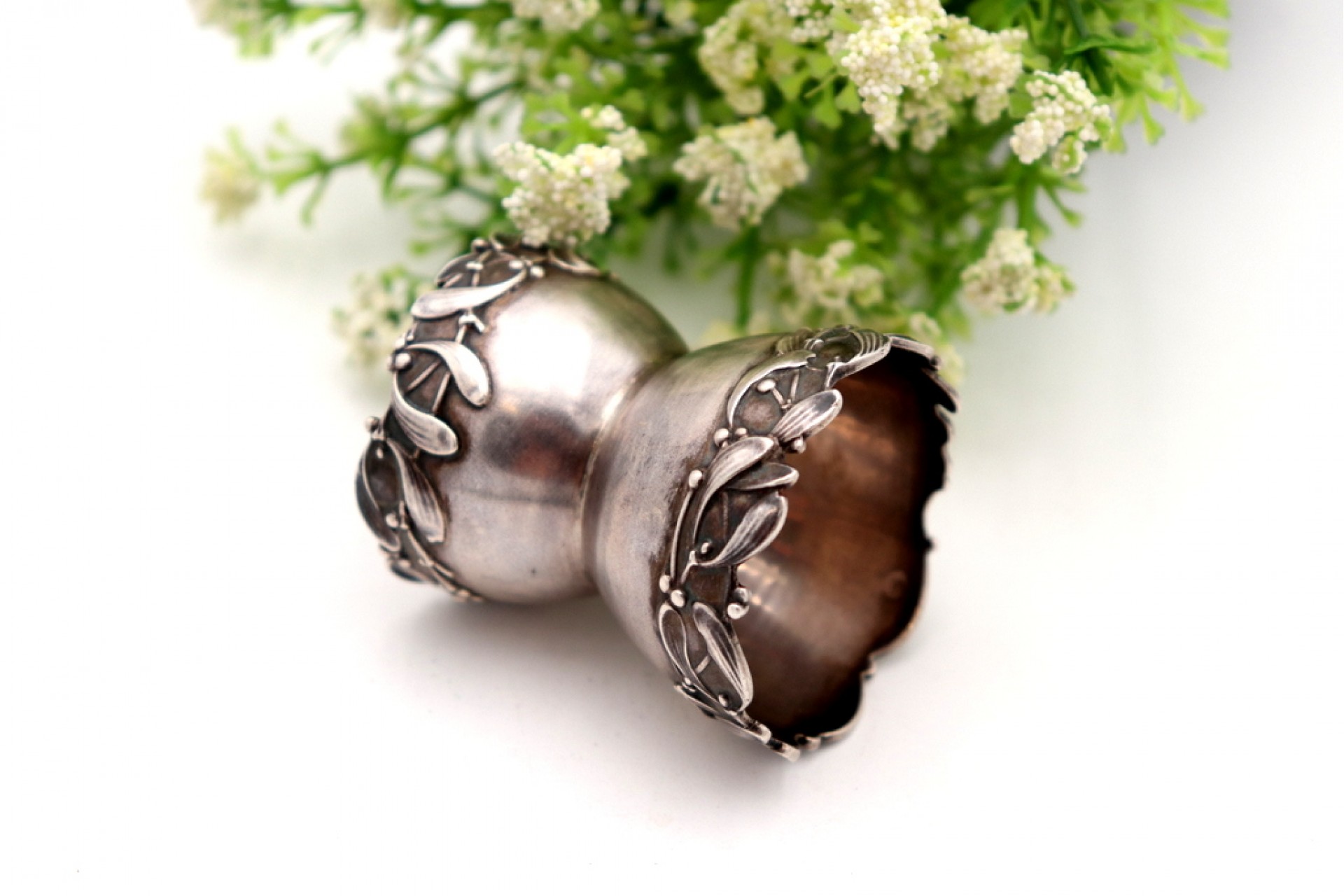 • Descrição: Base em prata para suporte de ovos com relevos florais.