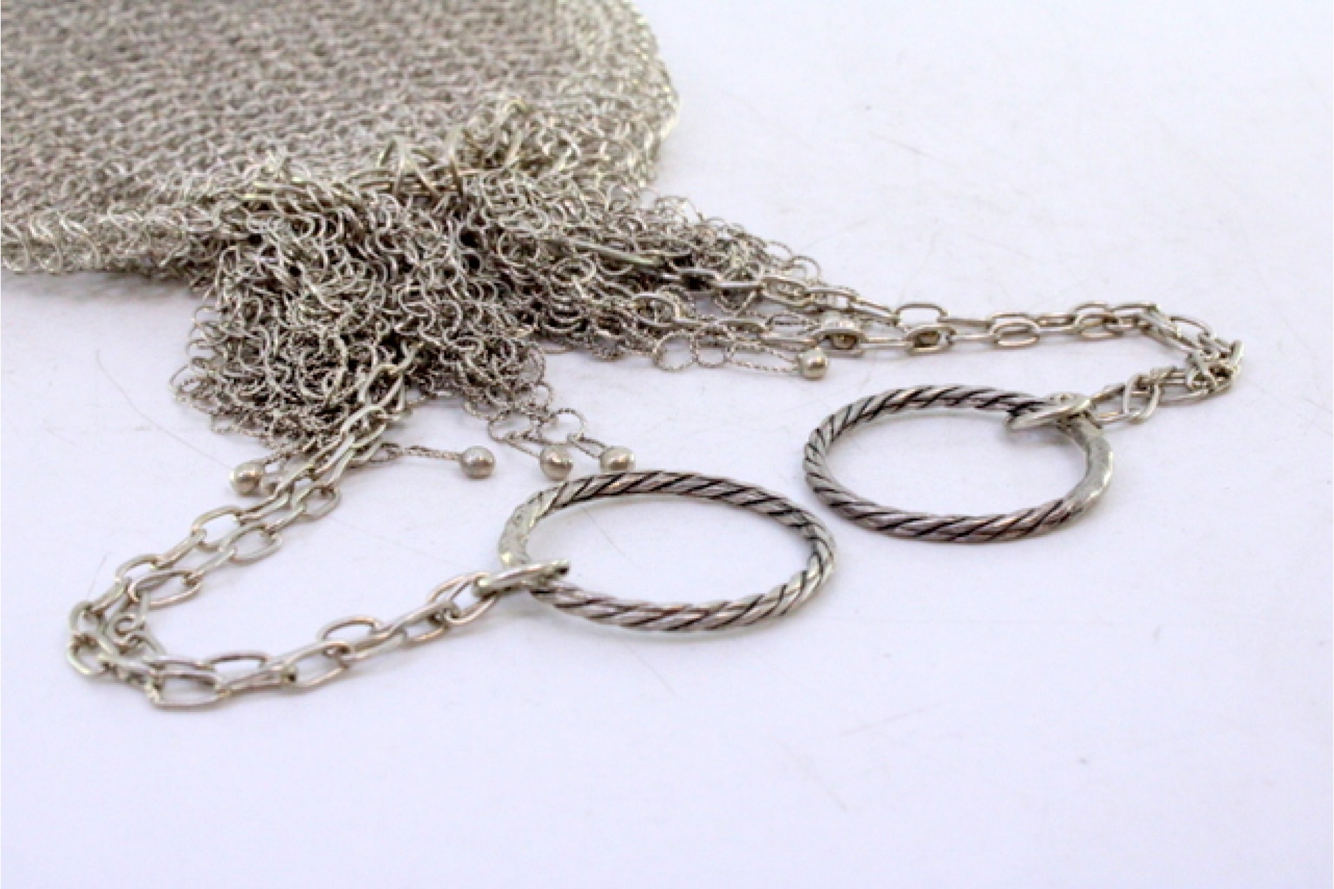 Etiquetas: Bolsa, Malha, Prata, Argolas
