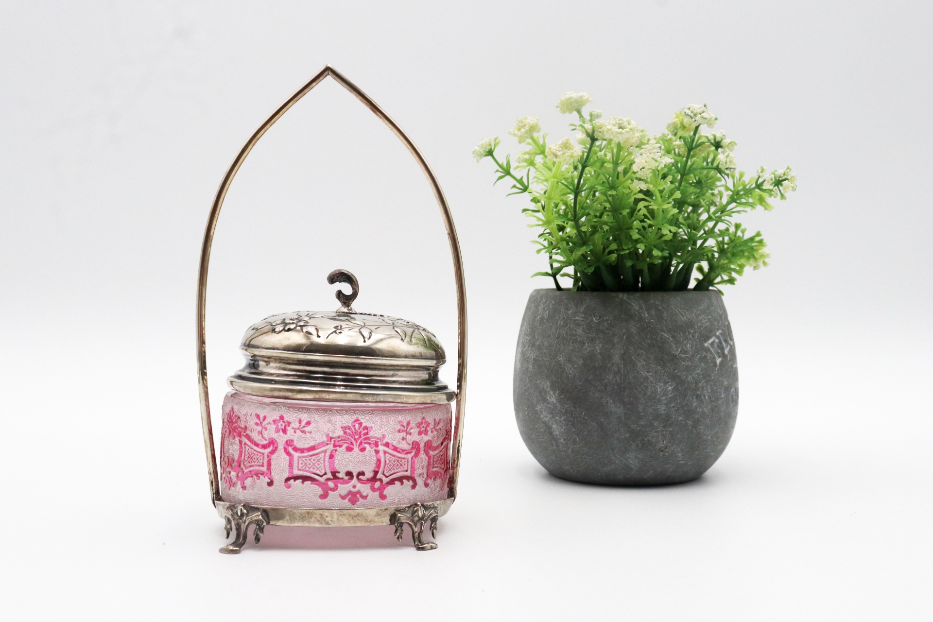 • Descrição: Compoteira com estrutura em prata com asa fixa, tampa amovivel com relevos e pomo, corpo em vidro gravado a ácido.