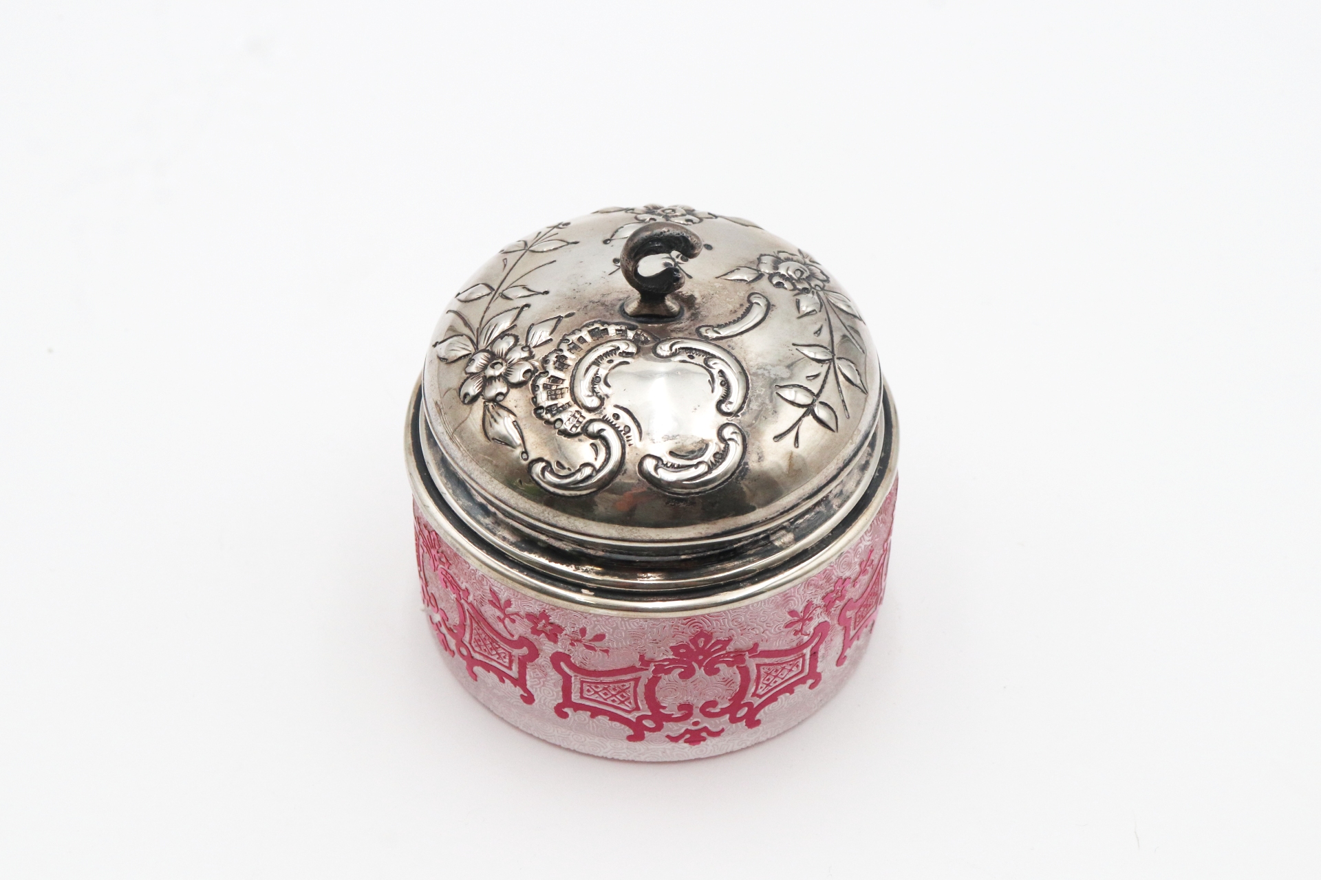Etiquetas: Bomboneira, prata, asa fixa, tampa, pomo, vidro