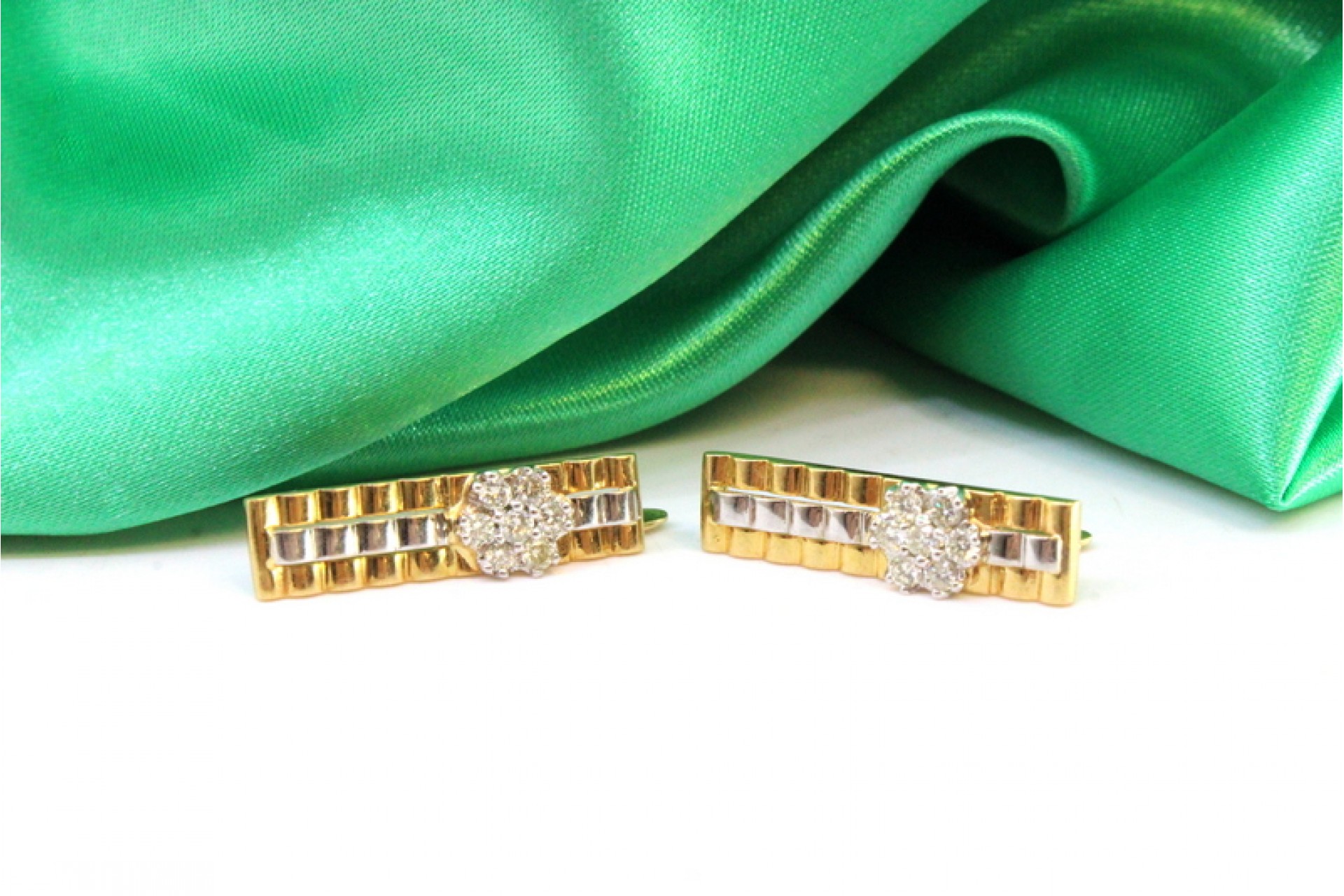 Botões de punho em ouro bicolor em forma de flores com diamantes (14) em talhe