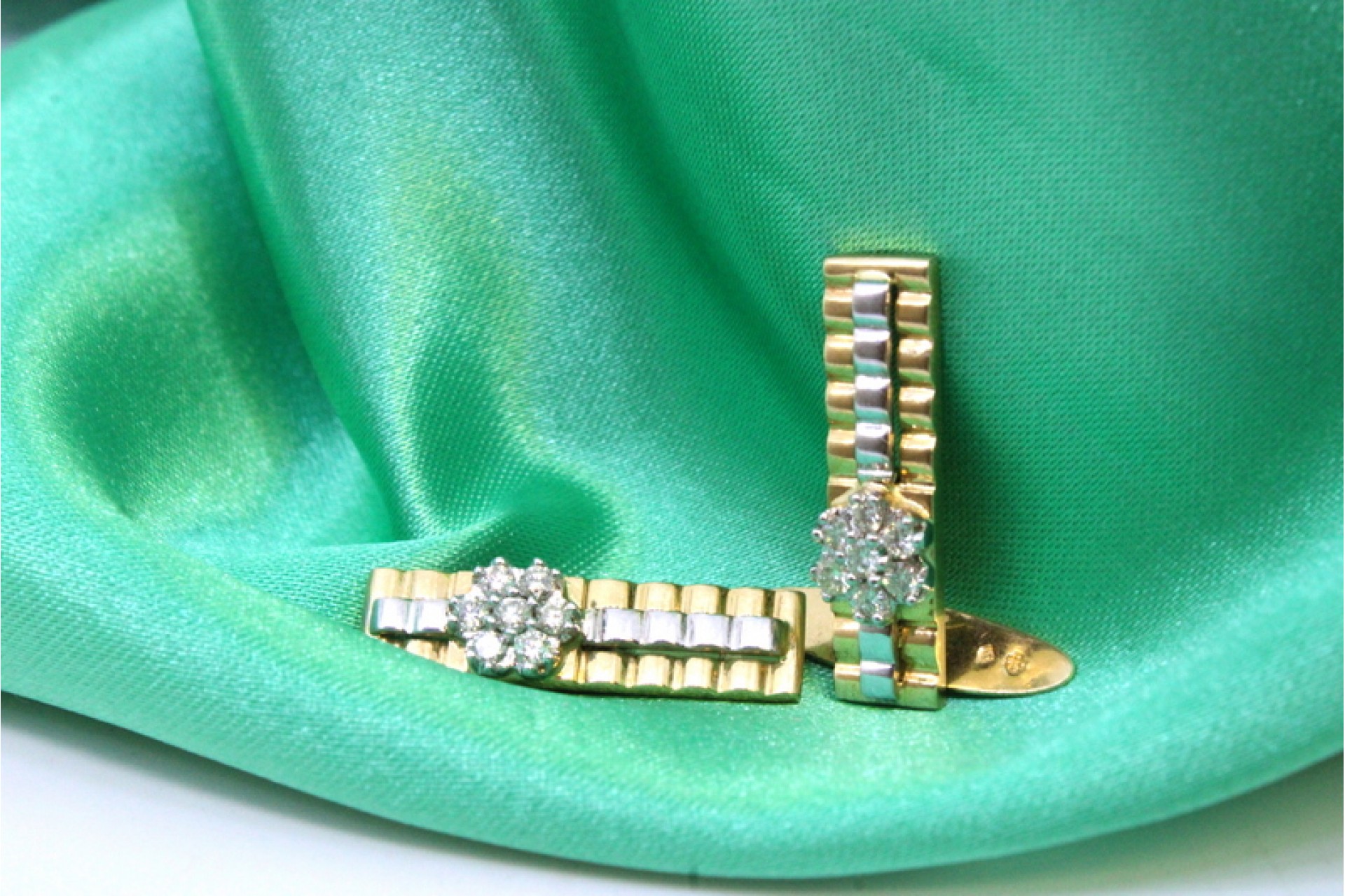 • Descrição: Botões de punho em ouro bicolor em forma de flores com diamantes (14) em talhe brilhante embutidos.