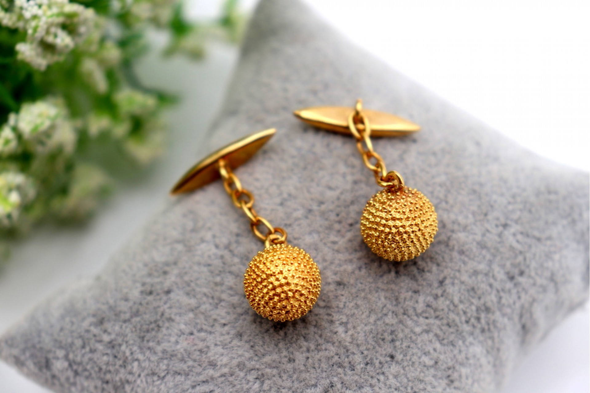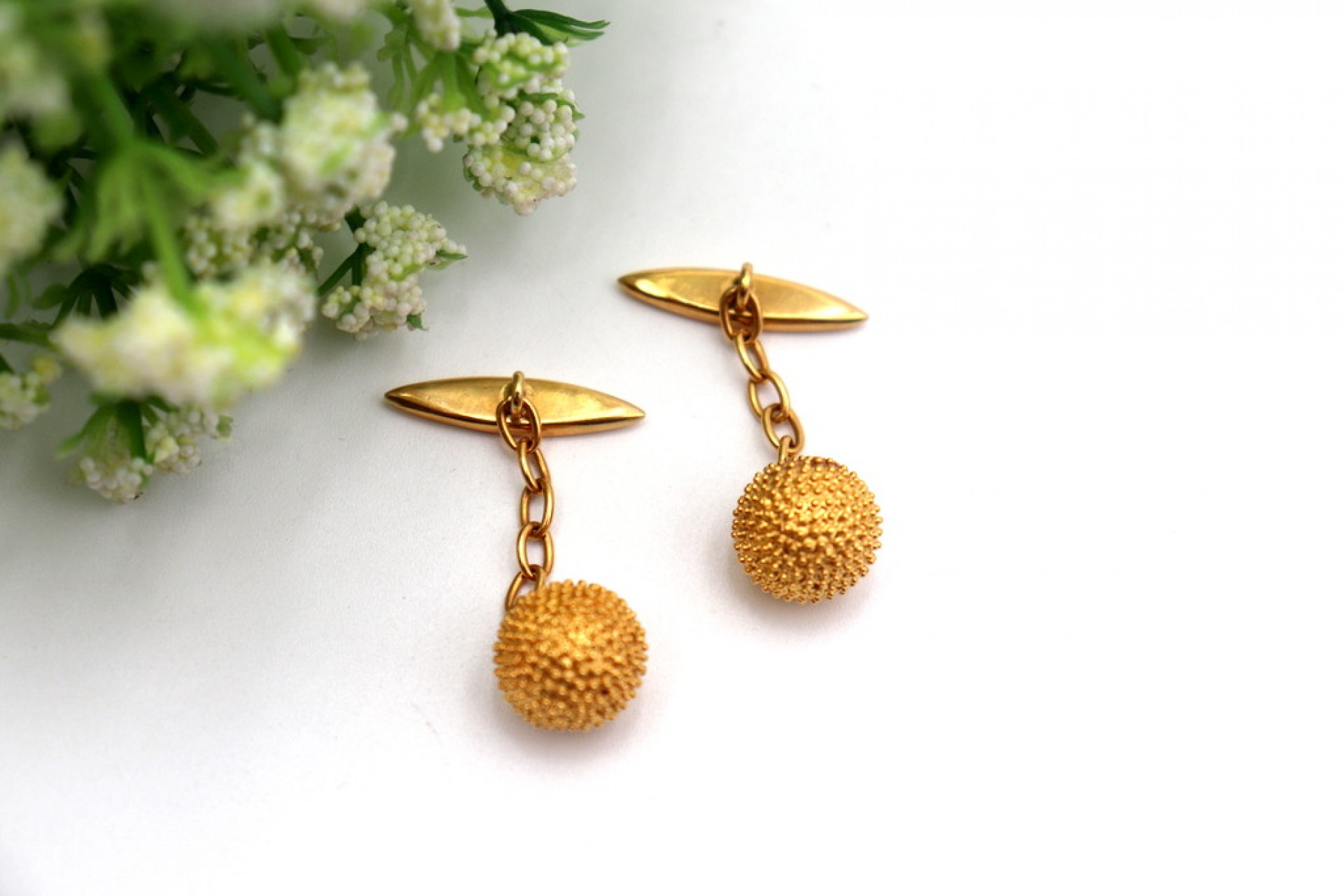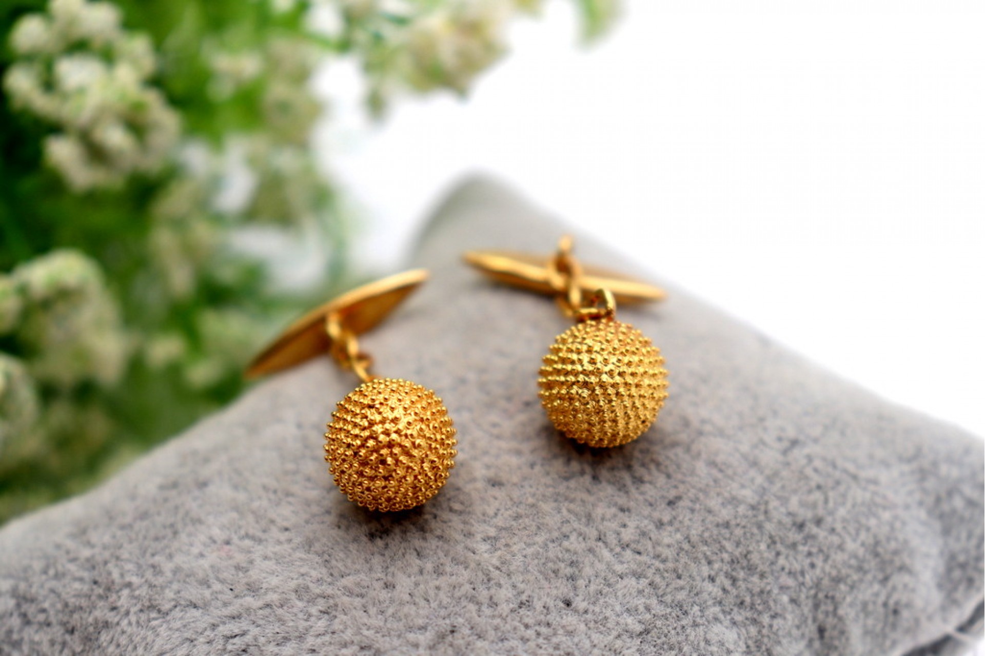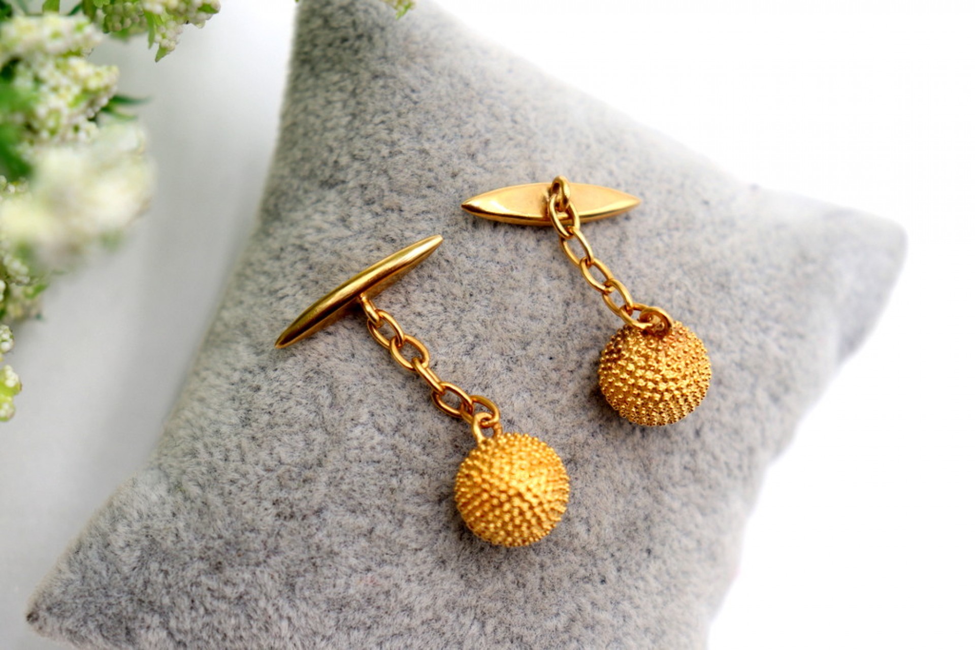 • Descrição: Botões de punho em ouro em forma de bolas com relevos