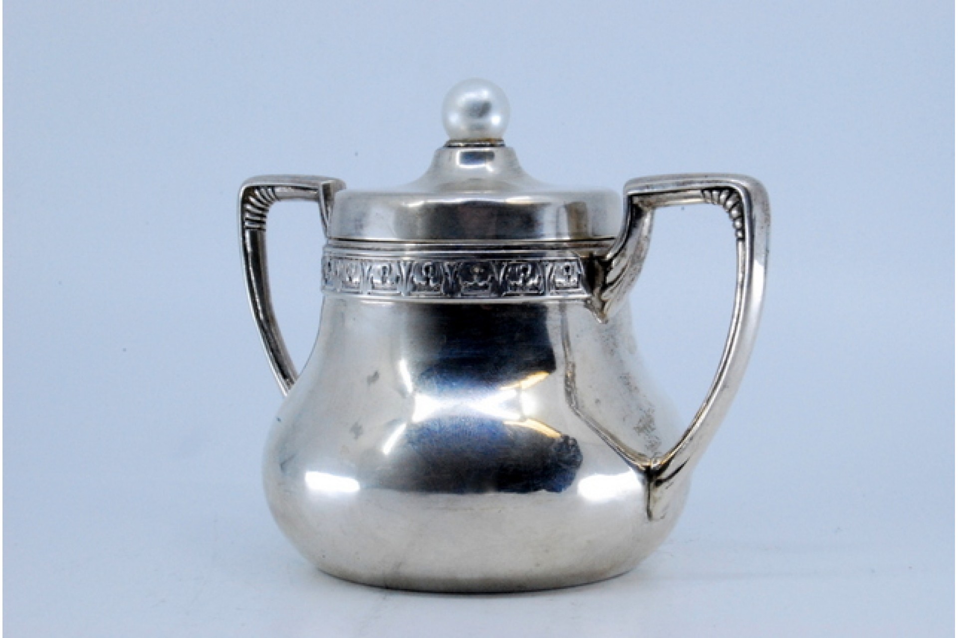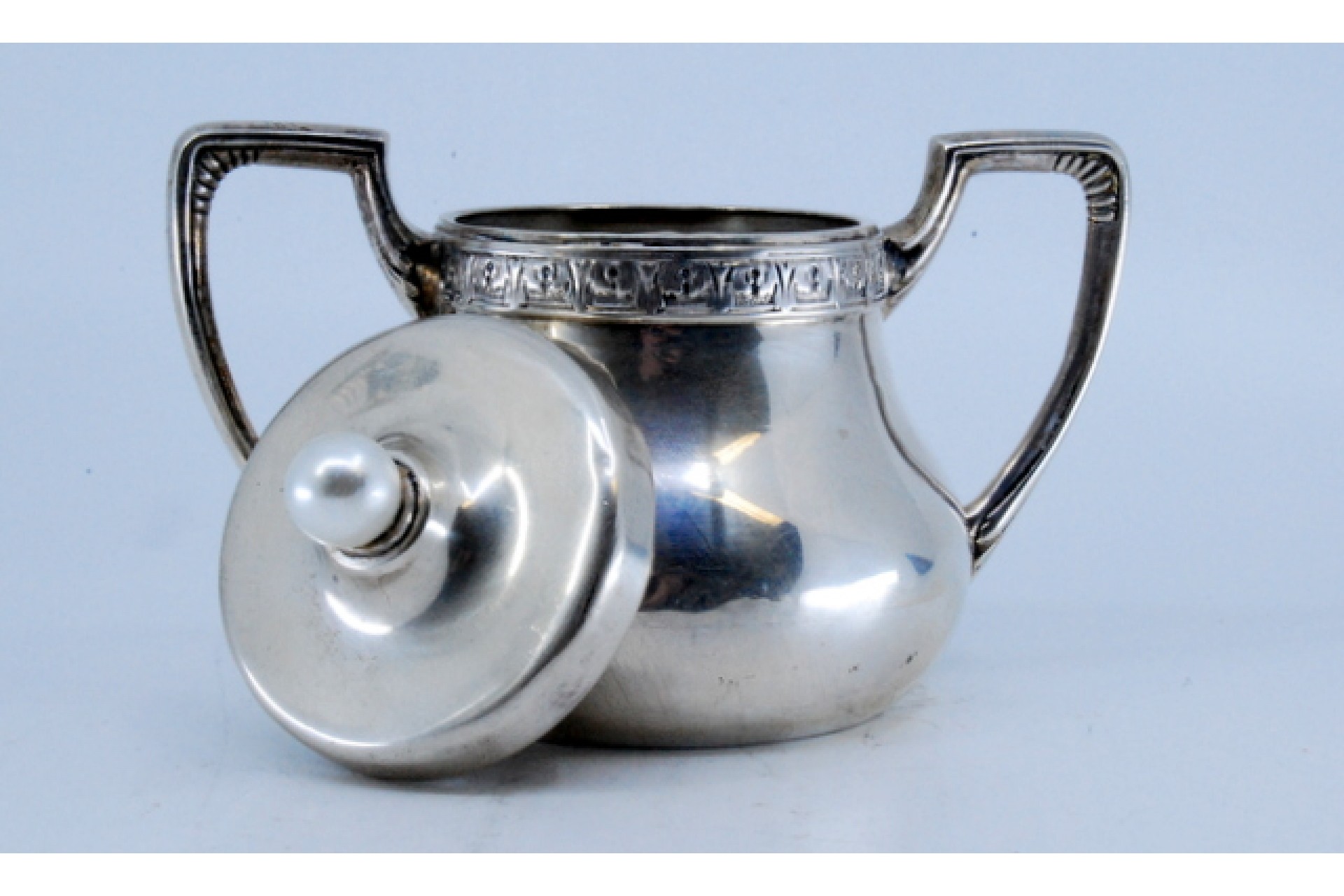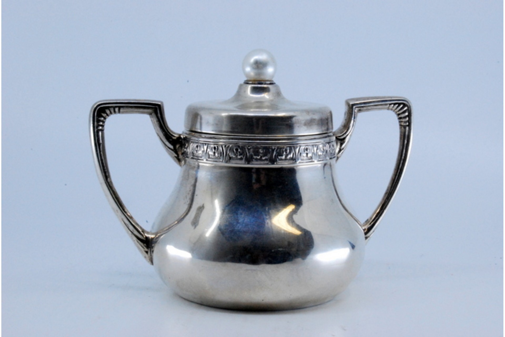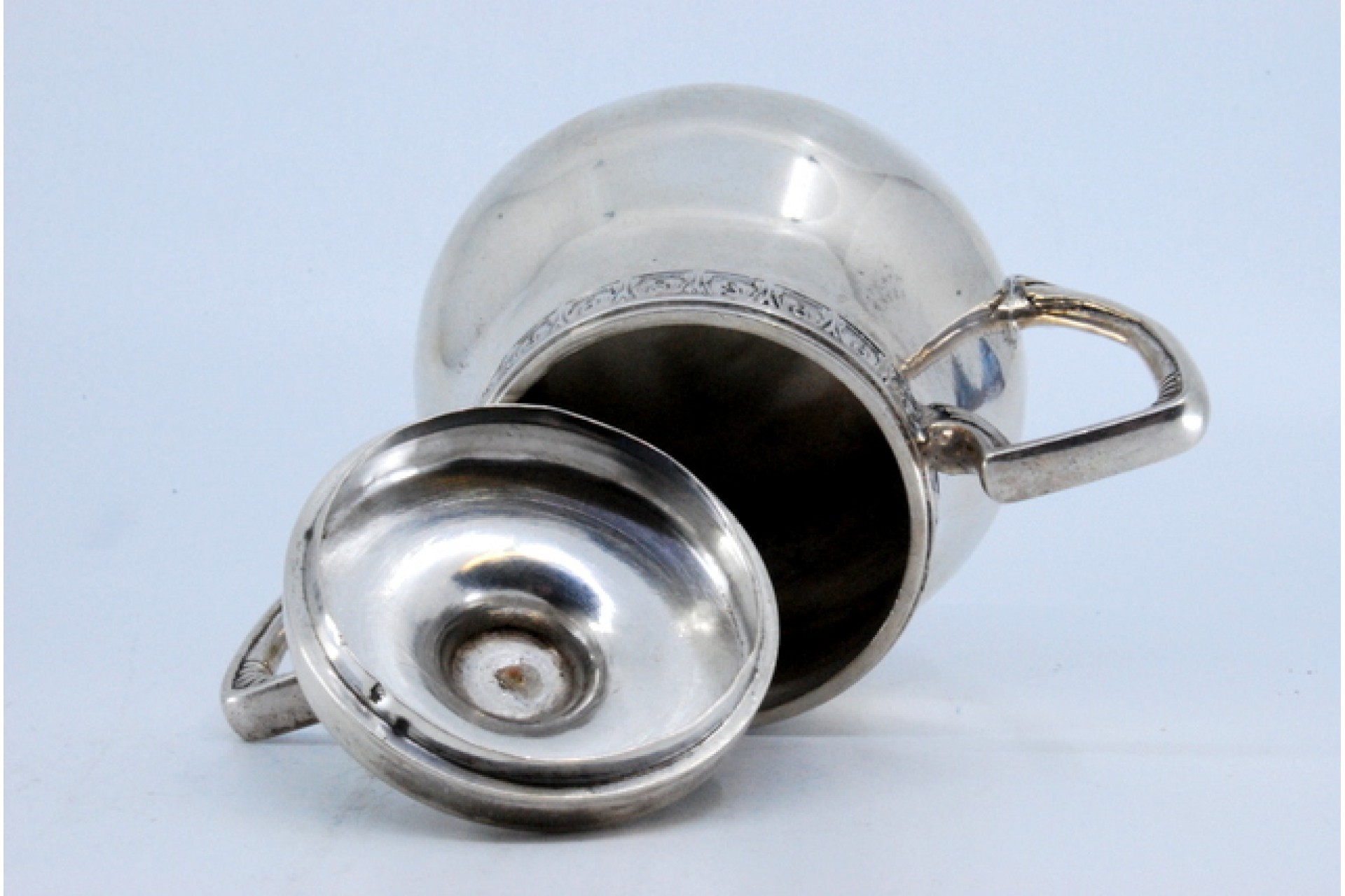 • Descrição: Açucareiro em prata lisa, frisado no rebordo e pegas com gravados.