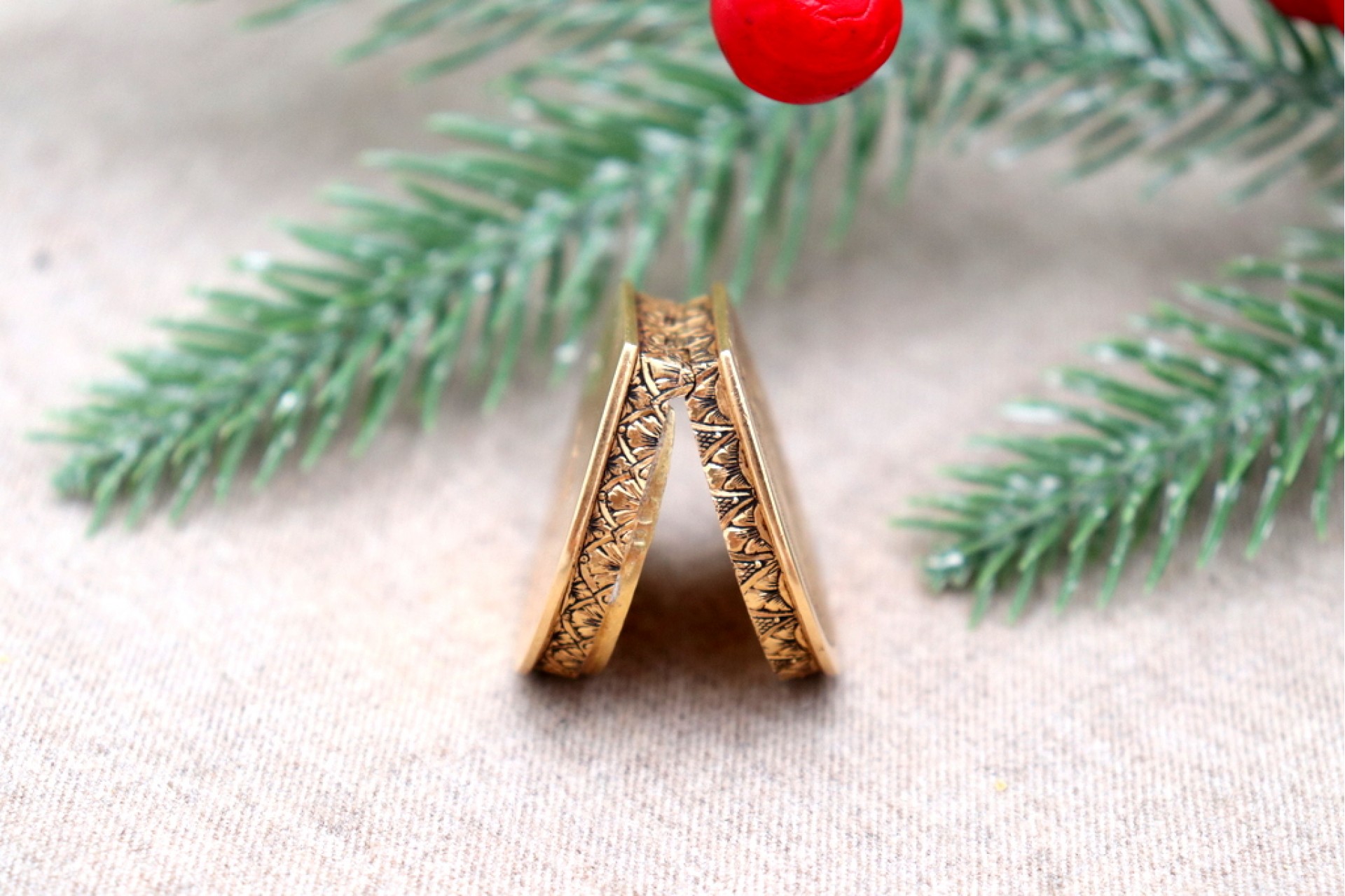 Caixa de comprimidos de ouro em forma de ferradura e cabeça de cavalo gravado