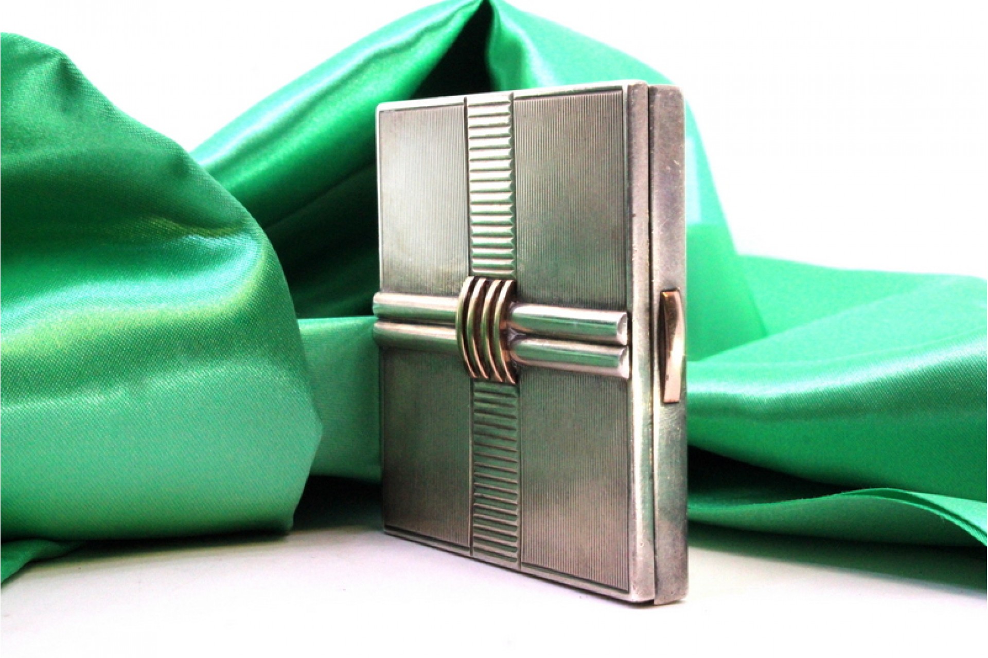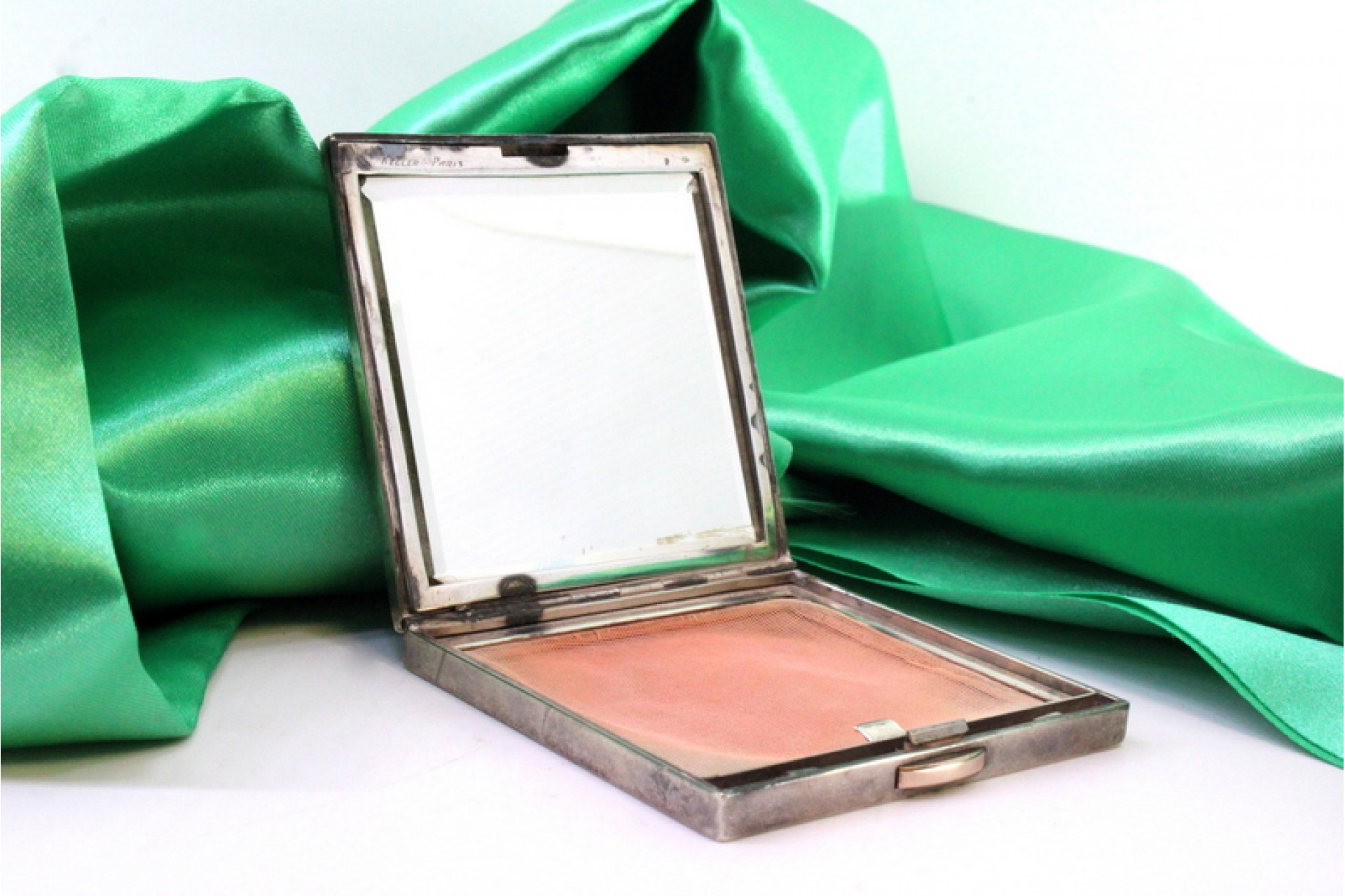 • Descrição: Caixa de Toilette em ouro e prata com aplicações na tampa, interior com espelho e pó de arroz.
