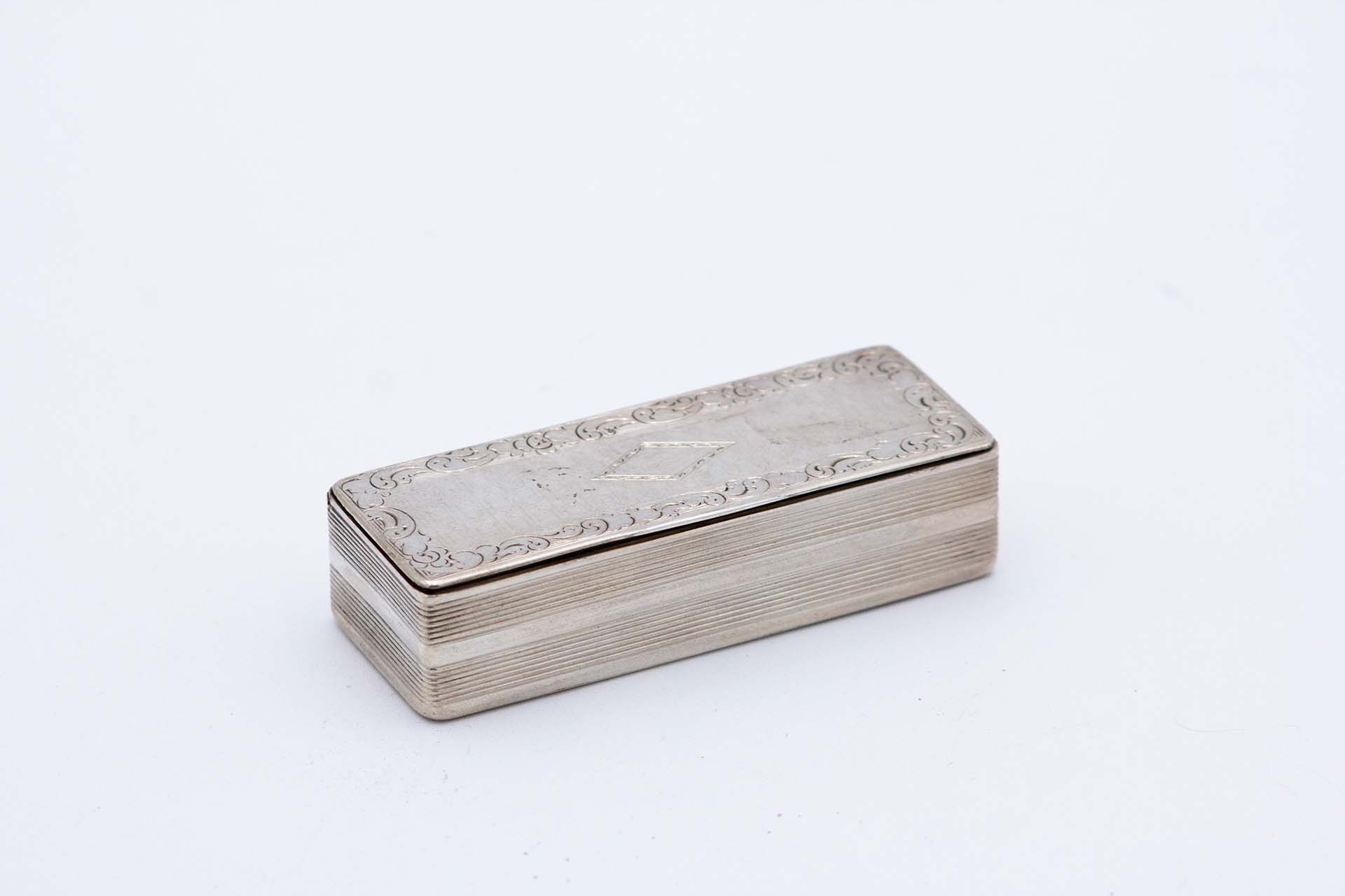 • Descrição: Caixa de rapé de prata com relevos canelados ao longo na envolvência e motivos florais gravados na tampa.
