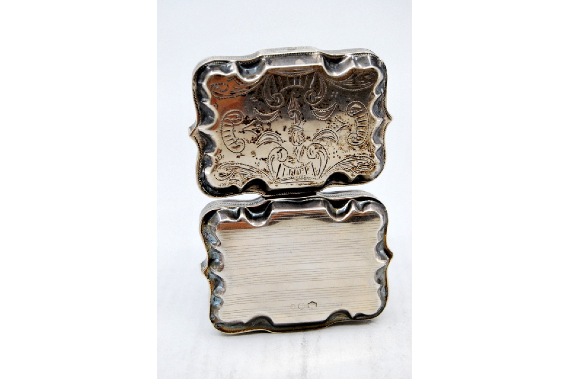 • Descrição: Caixa de rapé em prata com gravados e ondeados na envolvência.
