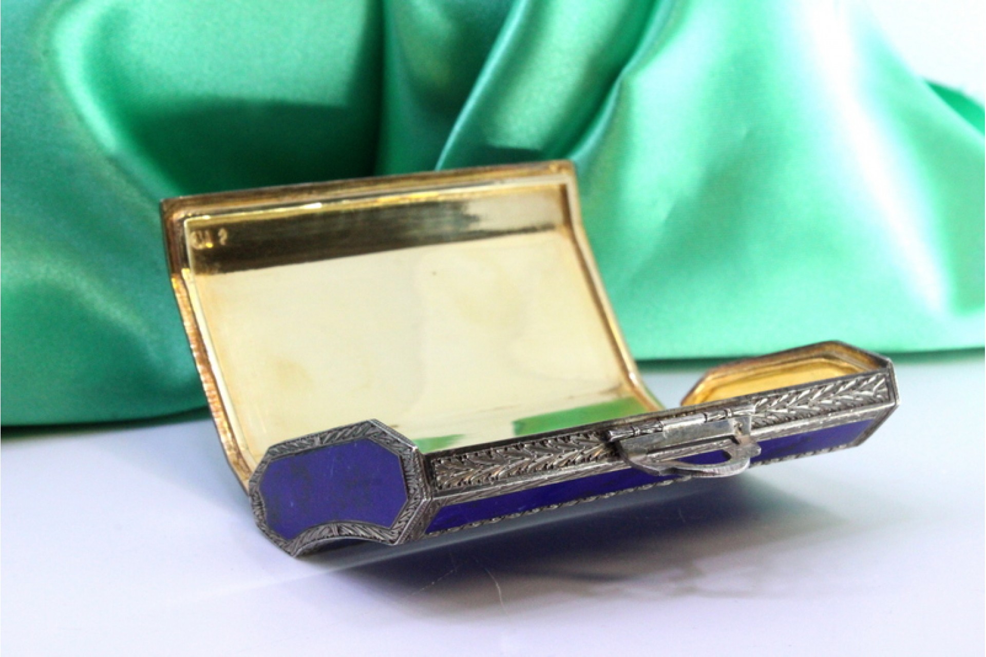 • Descrição: Caixa de Toilette em prata revestida a lápis lazuli e com interior em ouro.