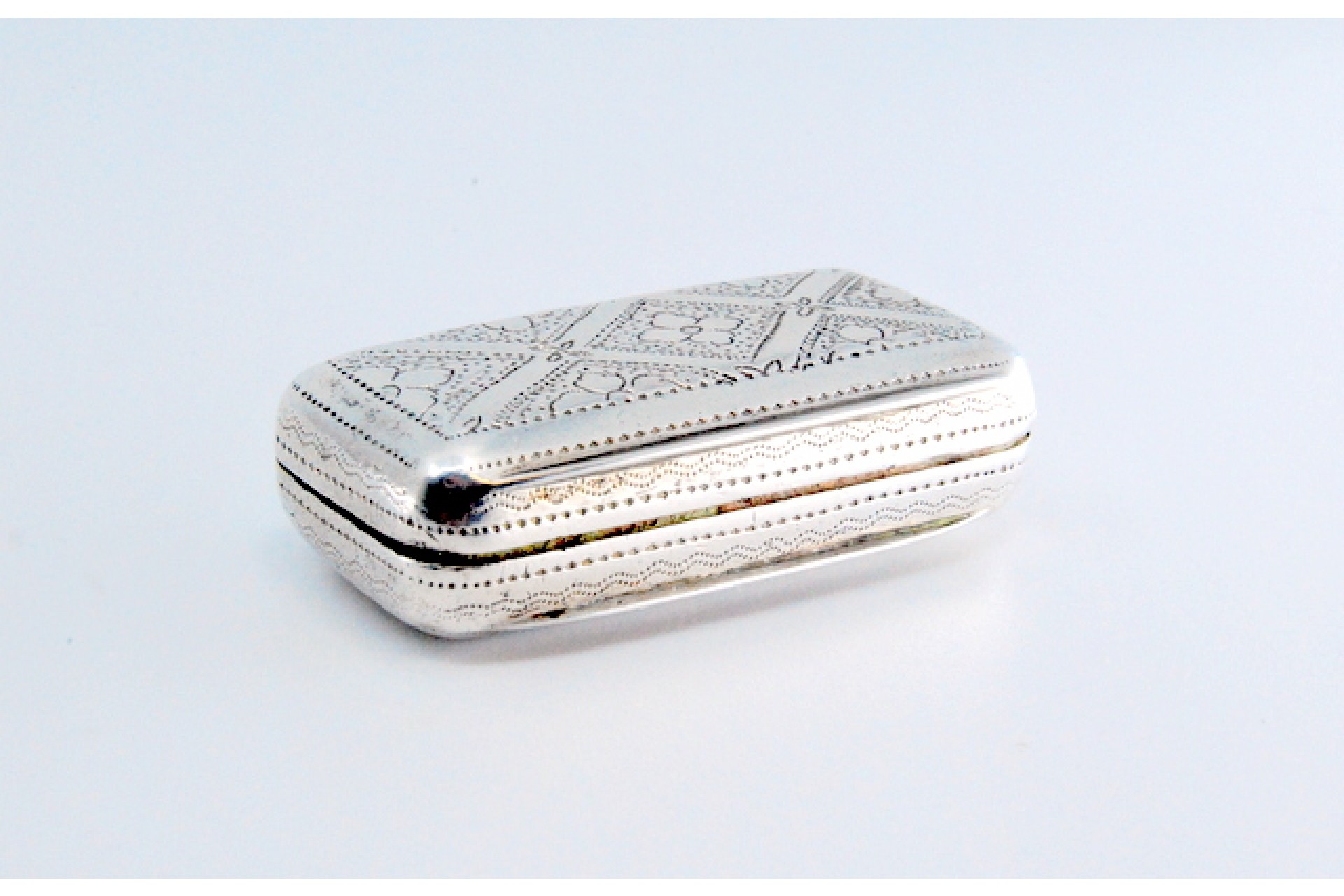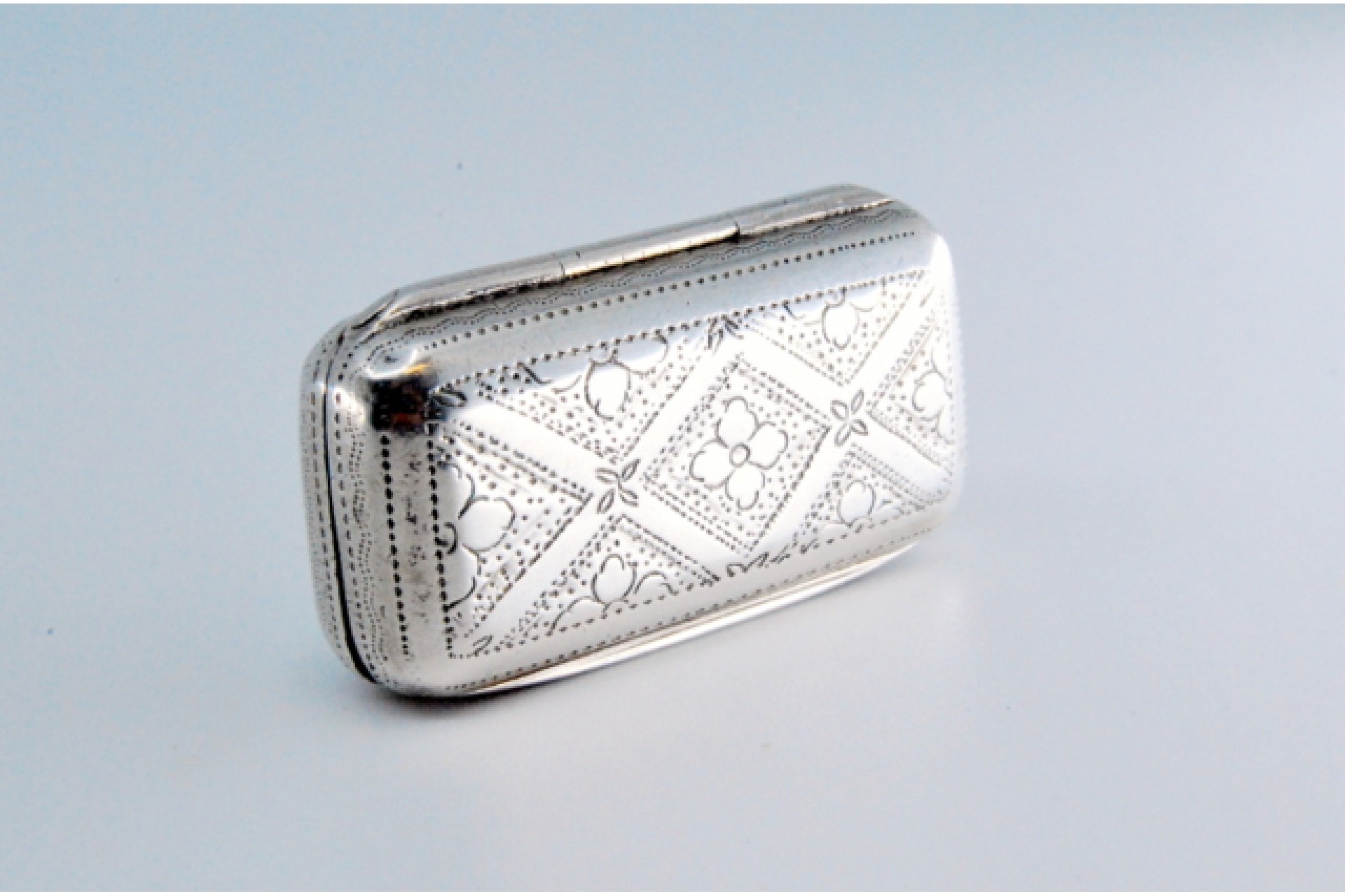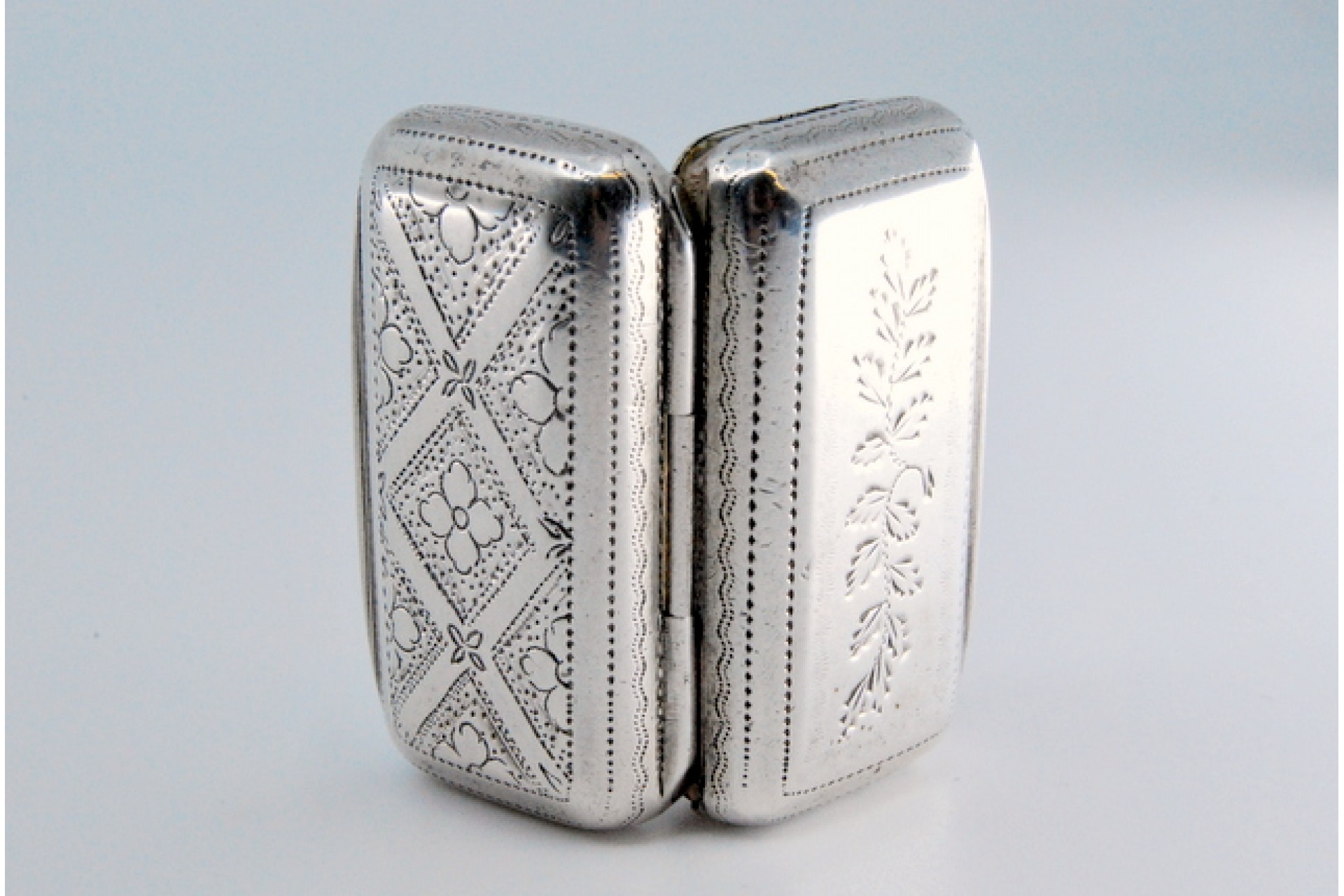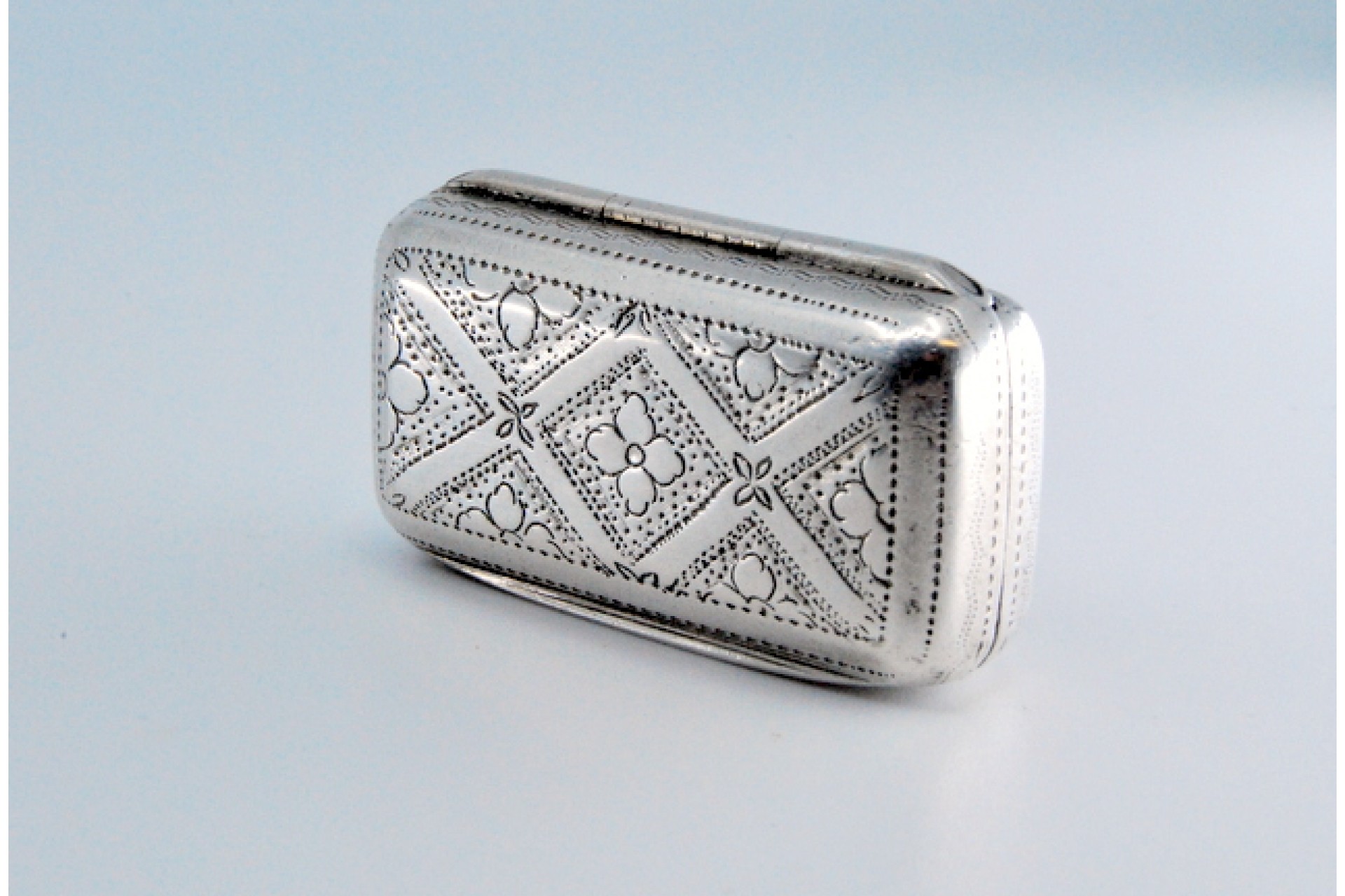 • Descrição: Caixa de Vinagrete em prata e ouro com figuras geométricas em ambos os lados do período de George III.