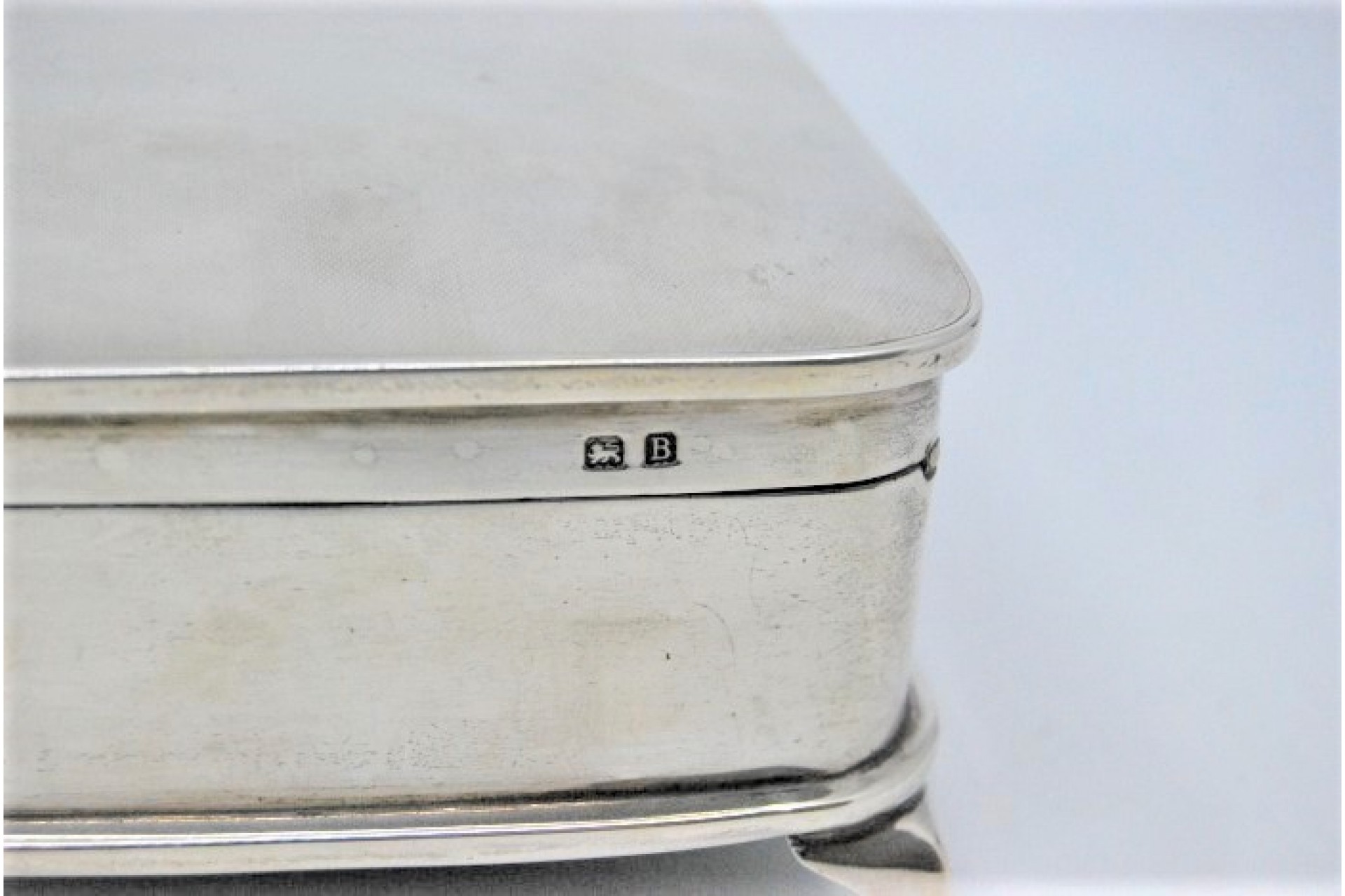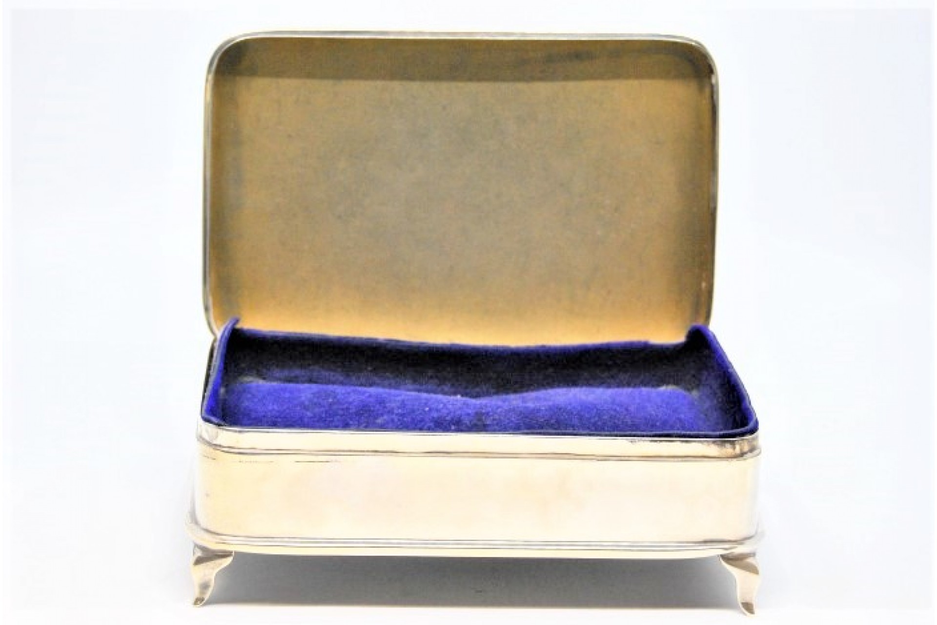 • Descrição: Guarda joias em prata com gravados com gravados e assente em quatro pés recortados.