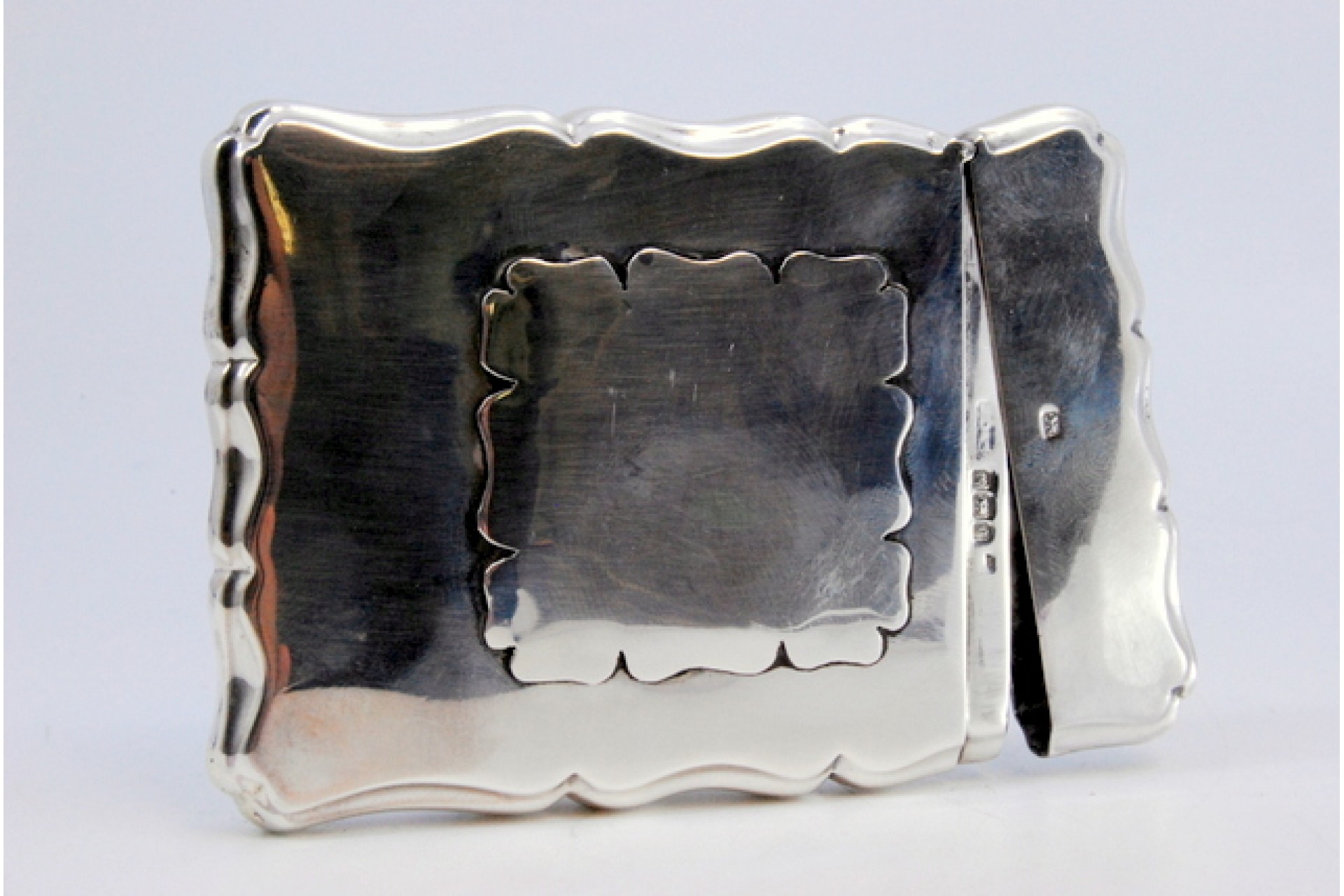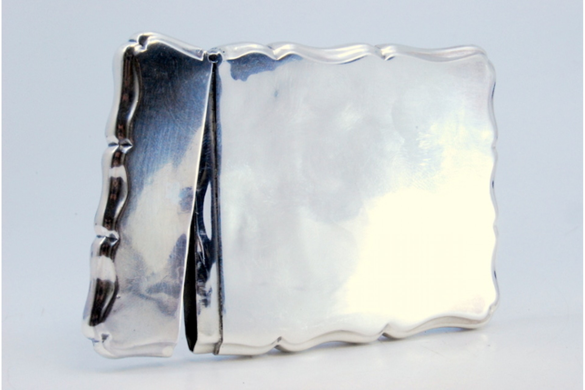 • Descrição: Cartoneira em prata lisa com aplicação ao centro para monograma e contornos ondeados.