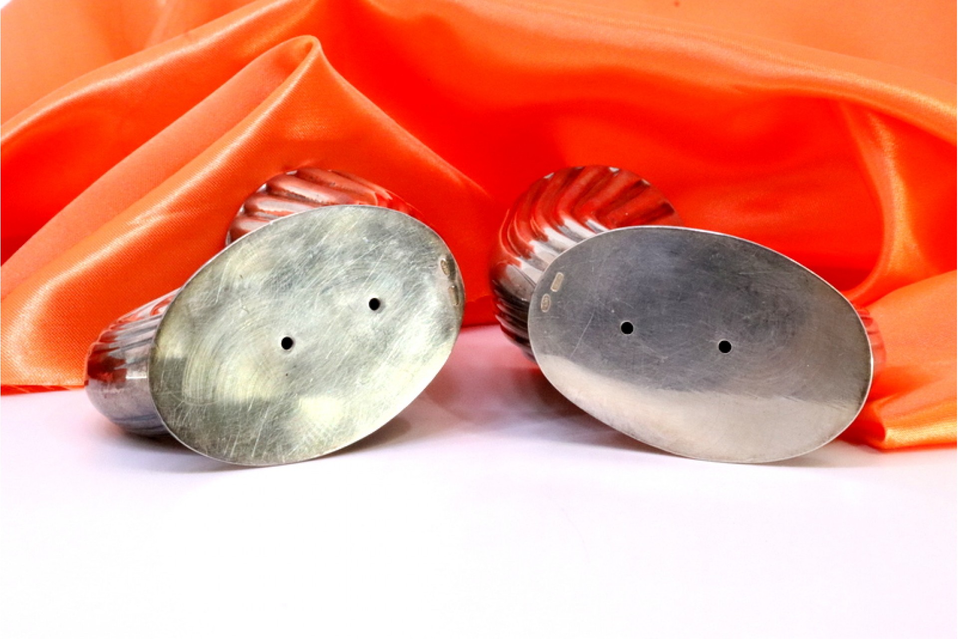 • Descrição: Castiçais baixos em prata canelada em forma de caracol e assentes em bases ovais lisas.