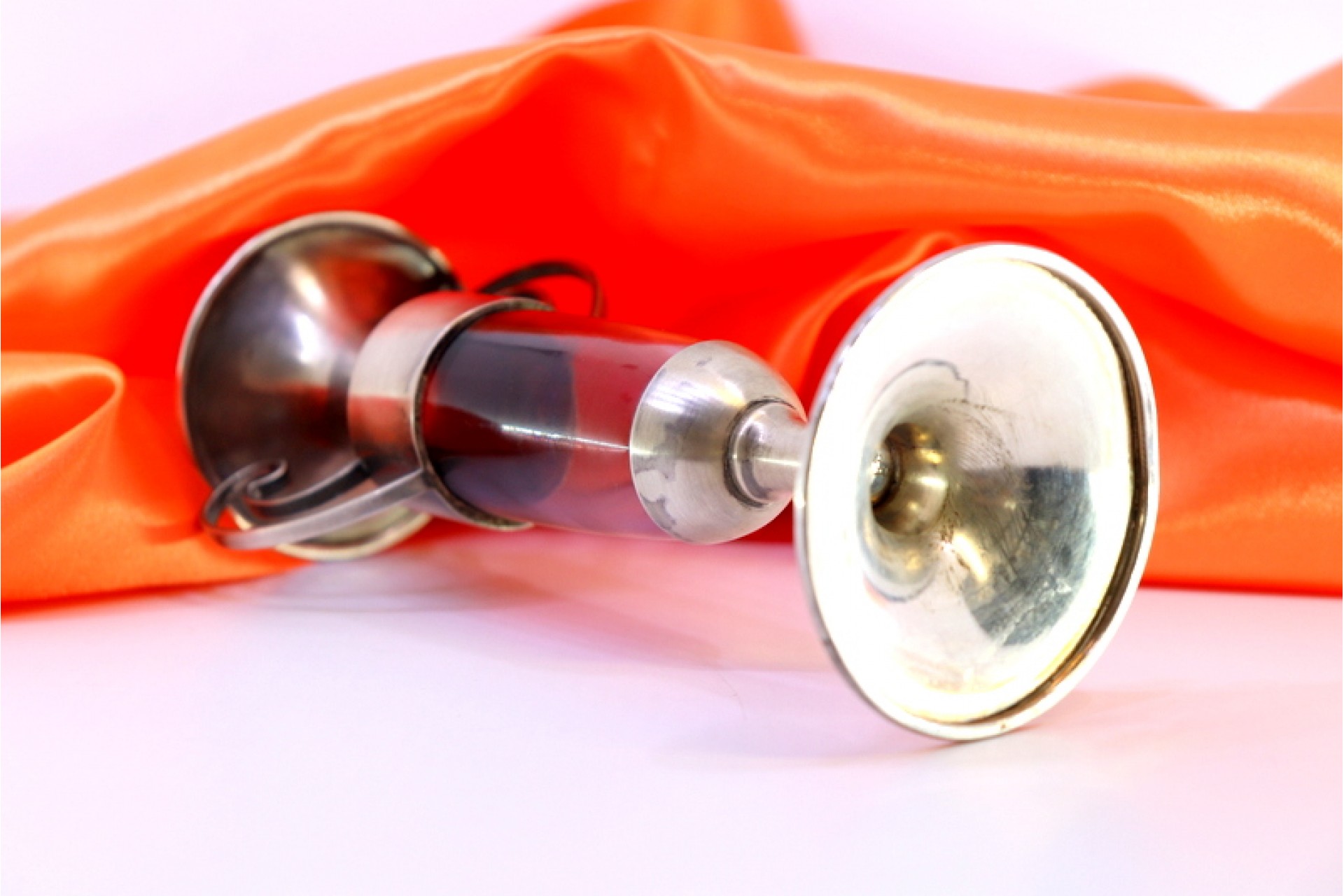 • Descrição: Castiçal em prata com duas pegas alma em vidro lilás e assente em base lisa circular.