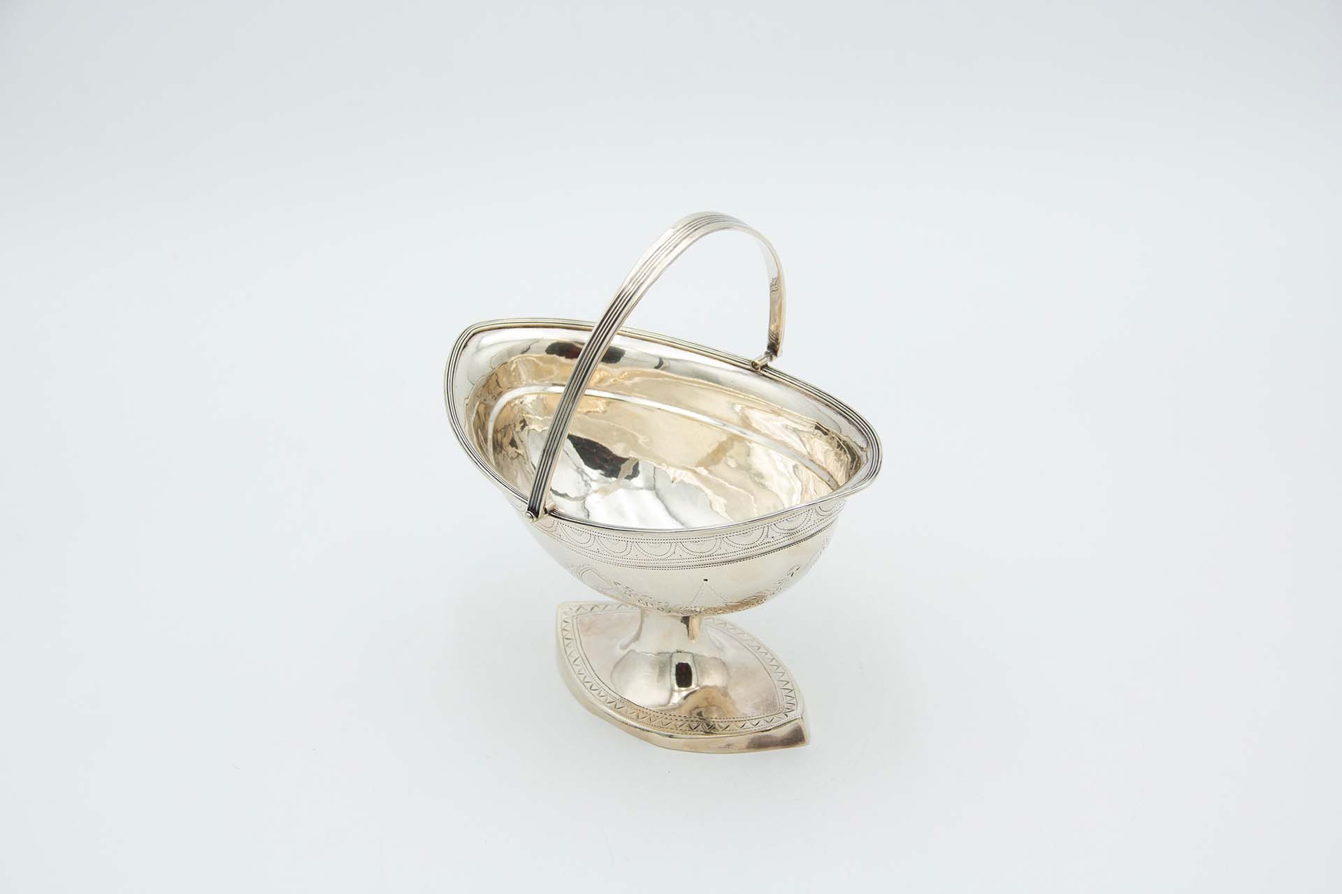 Cesto de prata com grinaldas gravadas e timbre heráldico de asa frisada