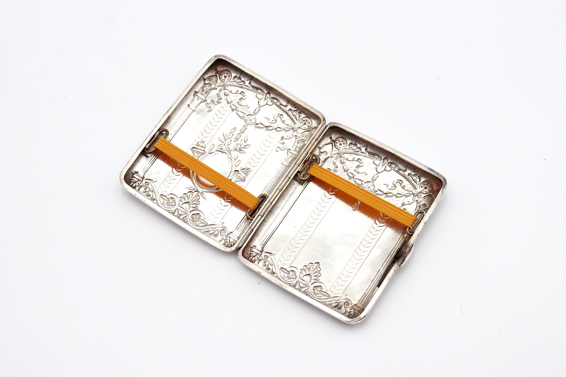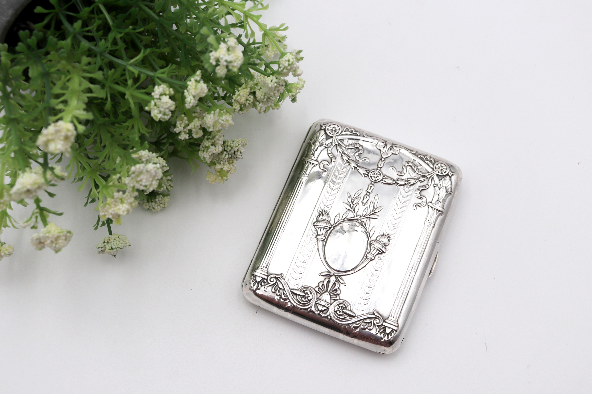 • Descrição: Cigarreira em prata com decoração em alto relevo e cartela para monograma.