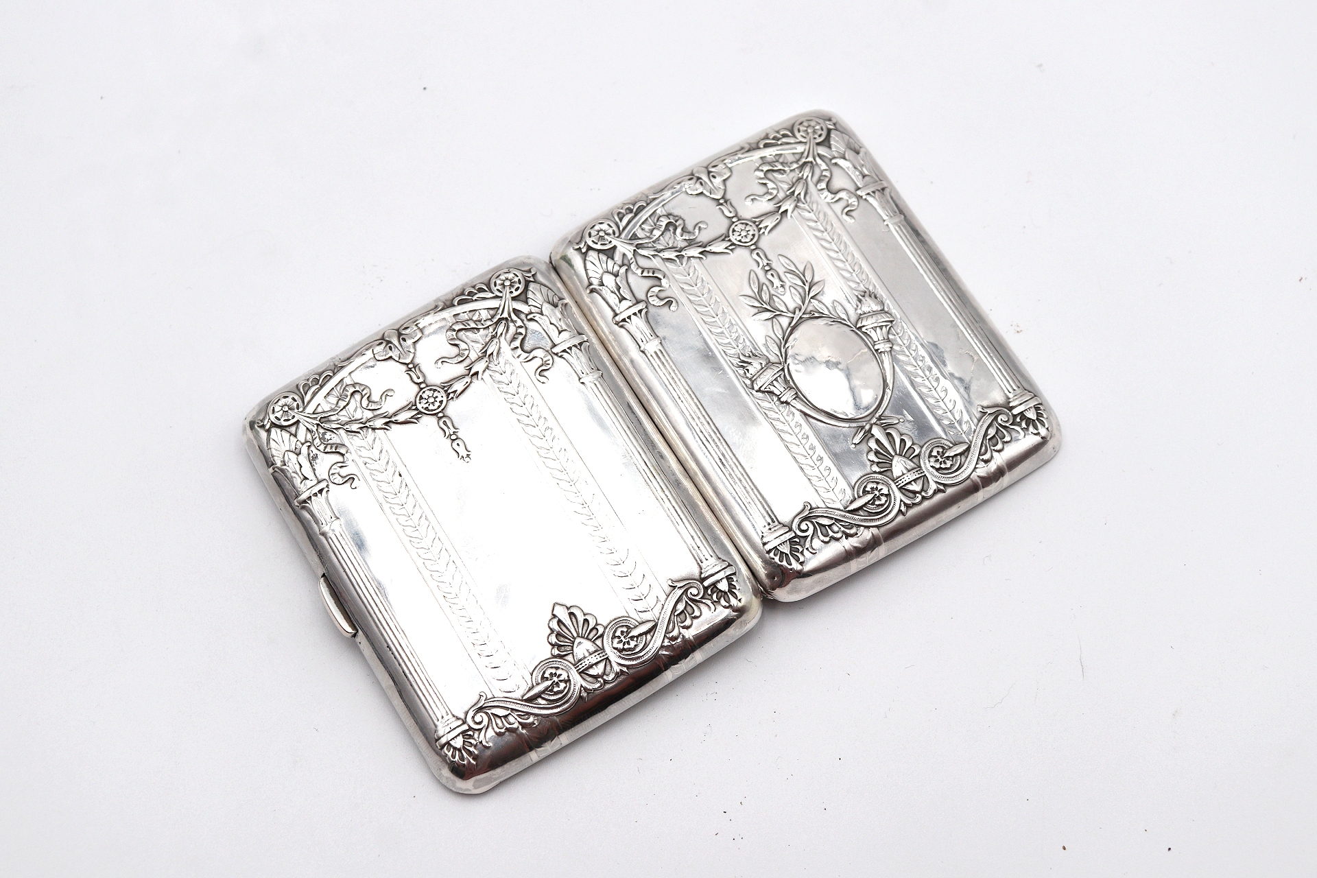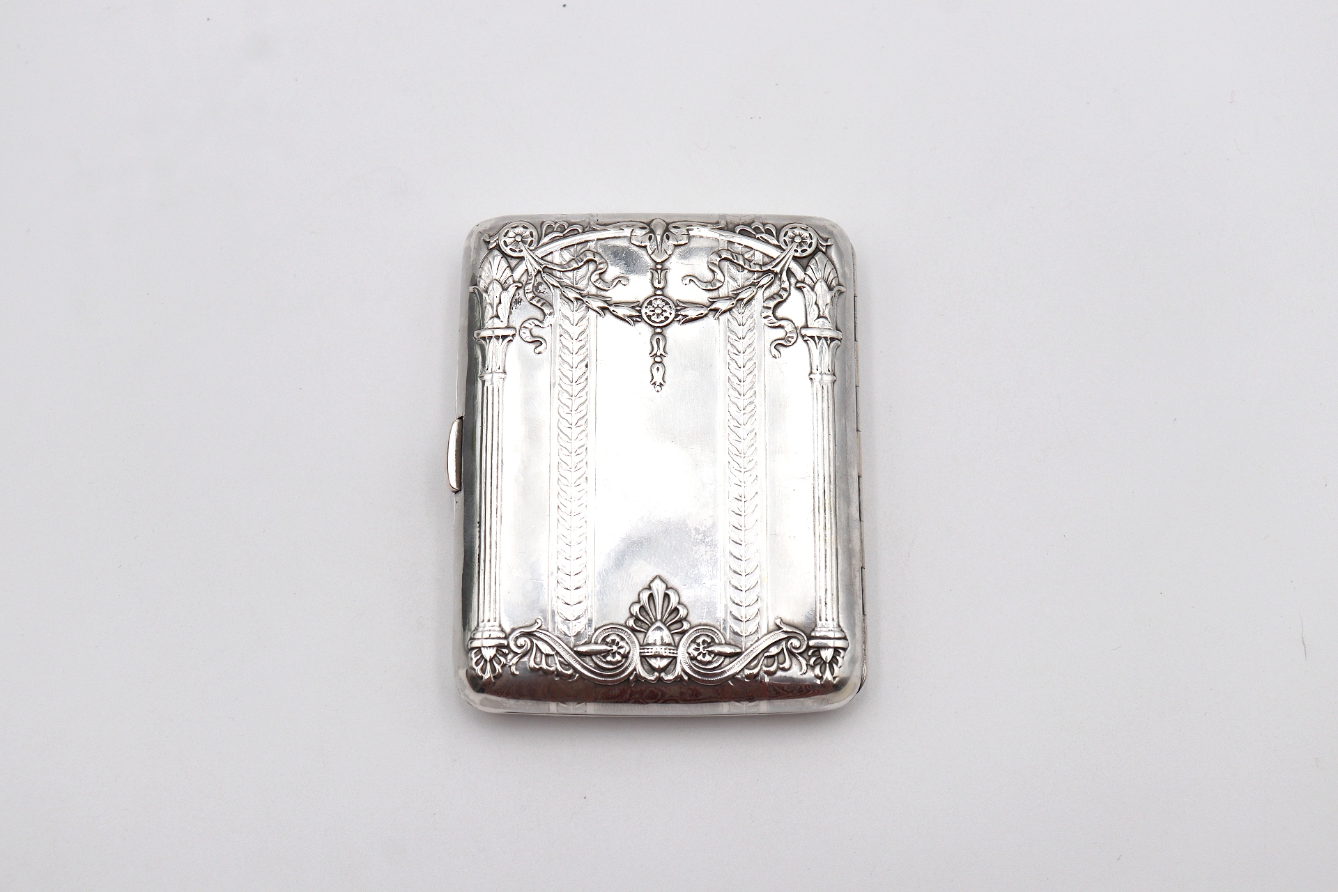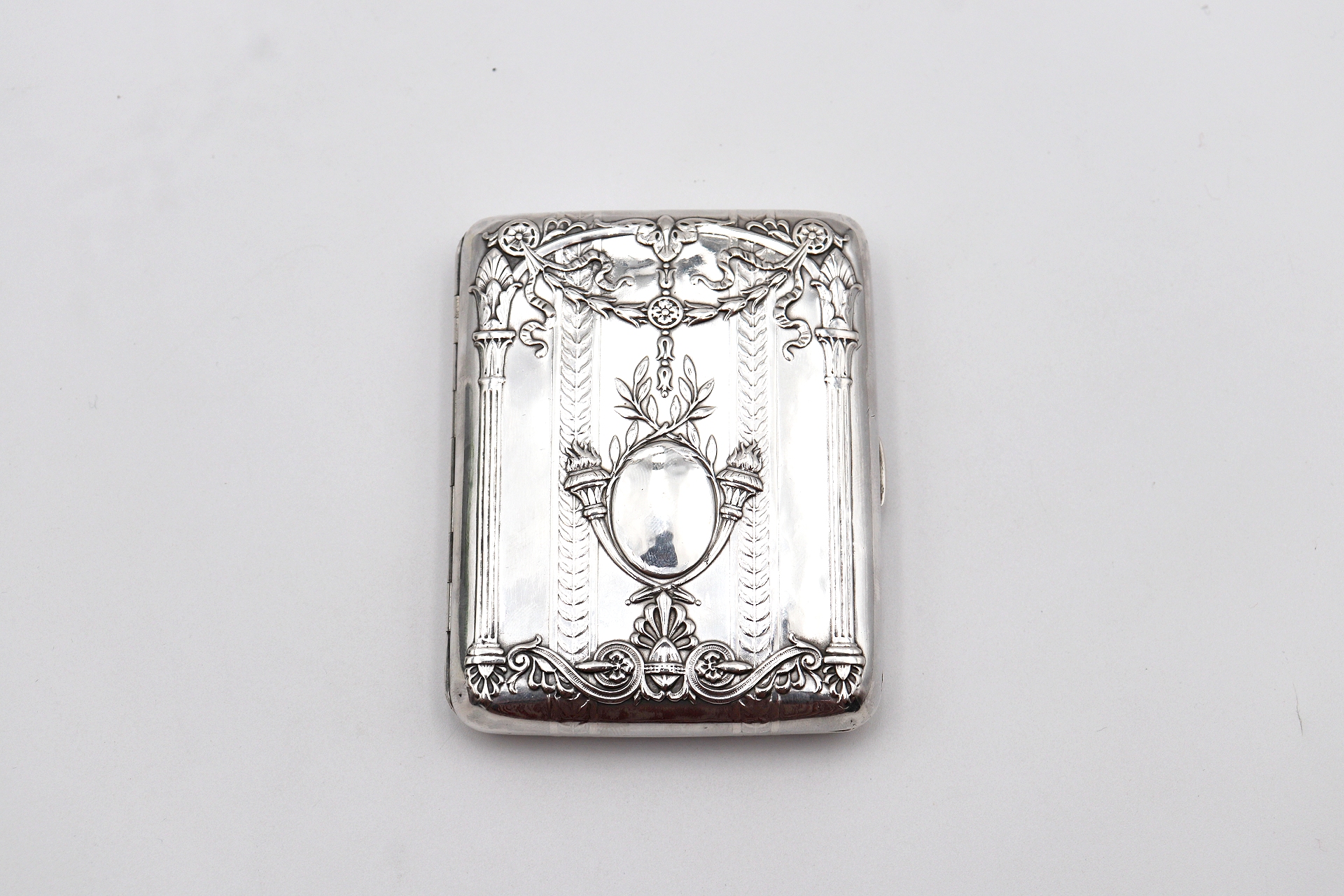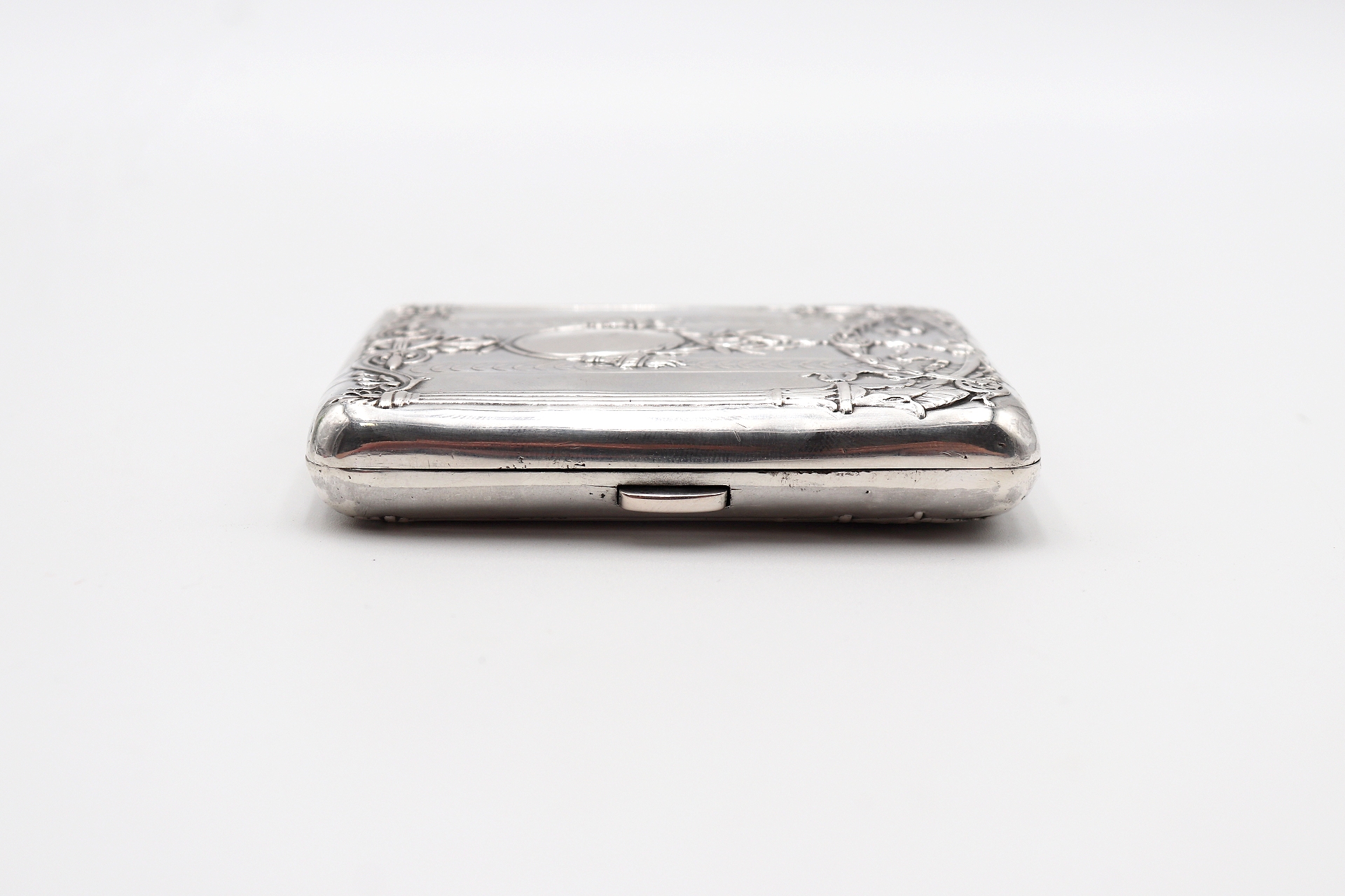 Cigarreira em prata com decoração em alto relevo e cartela para monograma