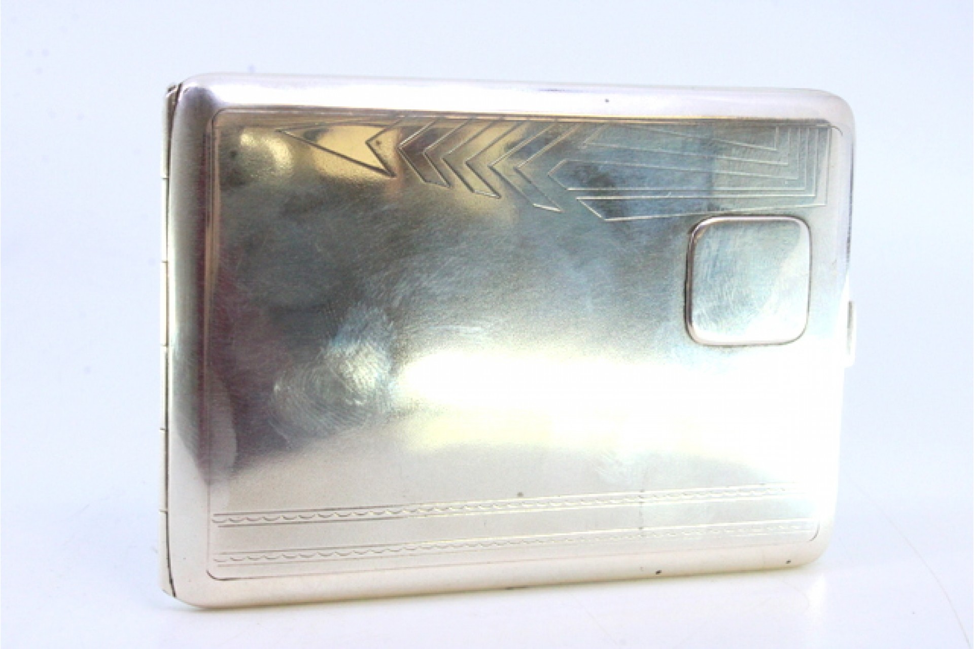• Descrição: Cigarreira em prata lisa com frisos gravados ao longo com cartela para monograma. e interior dourado.