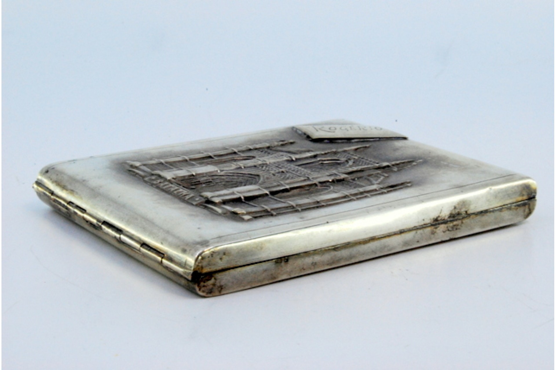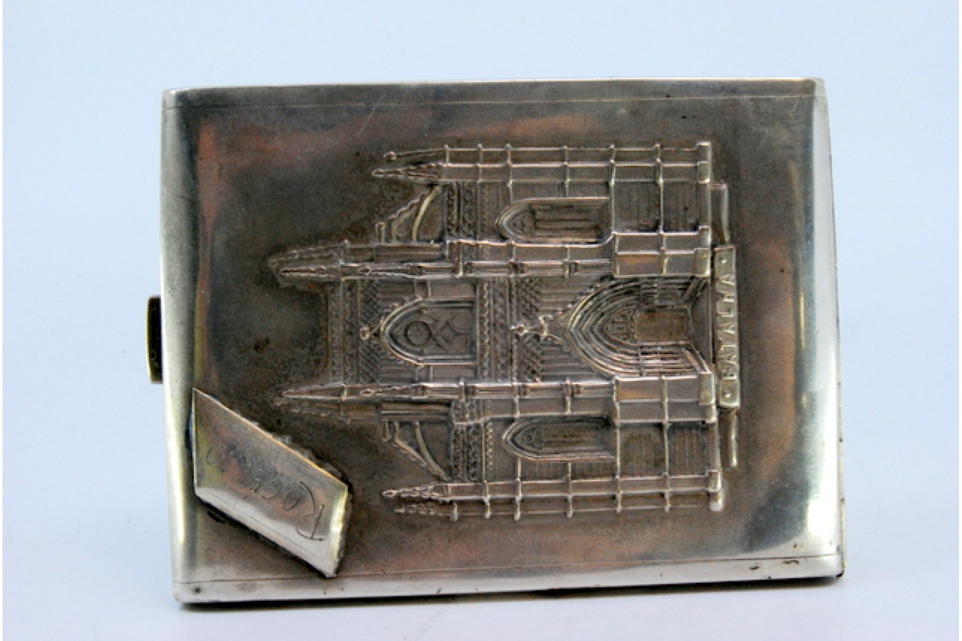 • Descrição: Cigarreira em prata com Mosteiro da Batalha em relevo na tampa basculante.