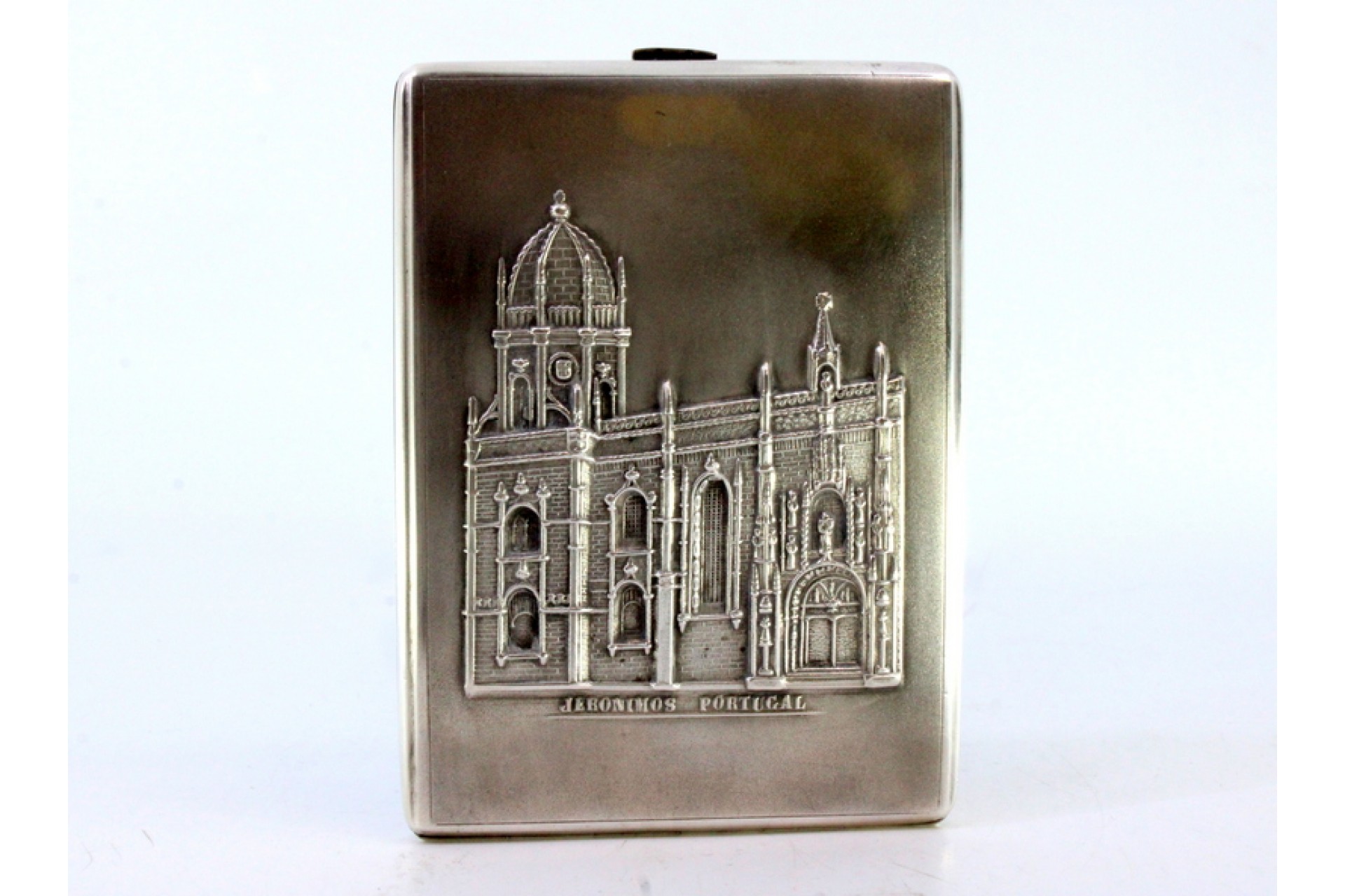 • Descrição: Cigarreira em prata com mosteiro dos Jerónimos relevado e interior dourado com tampa basculante.