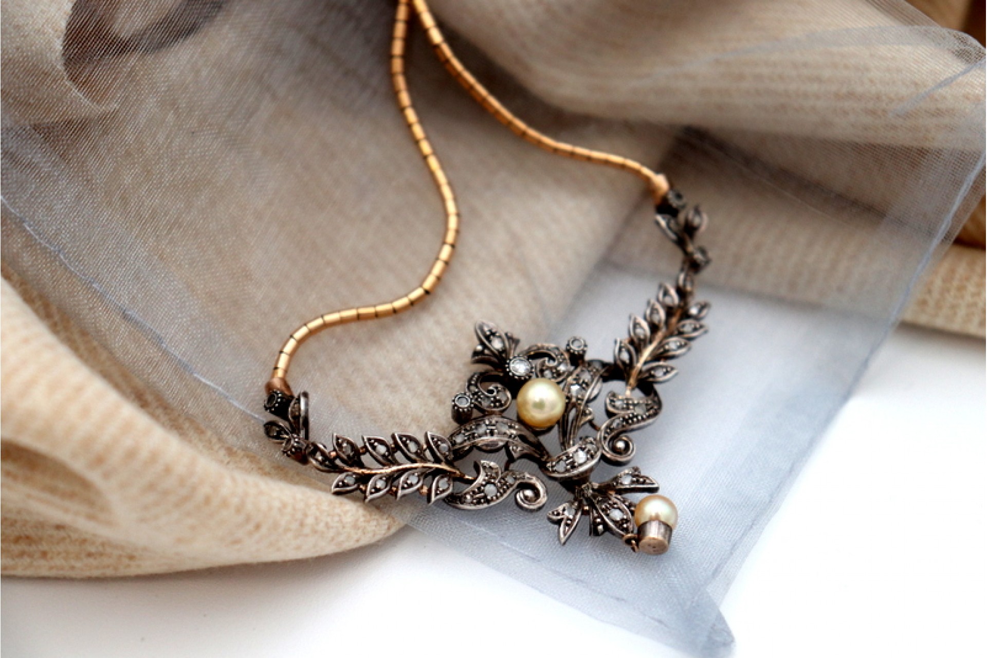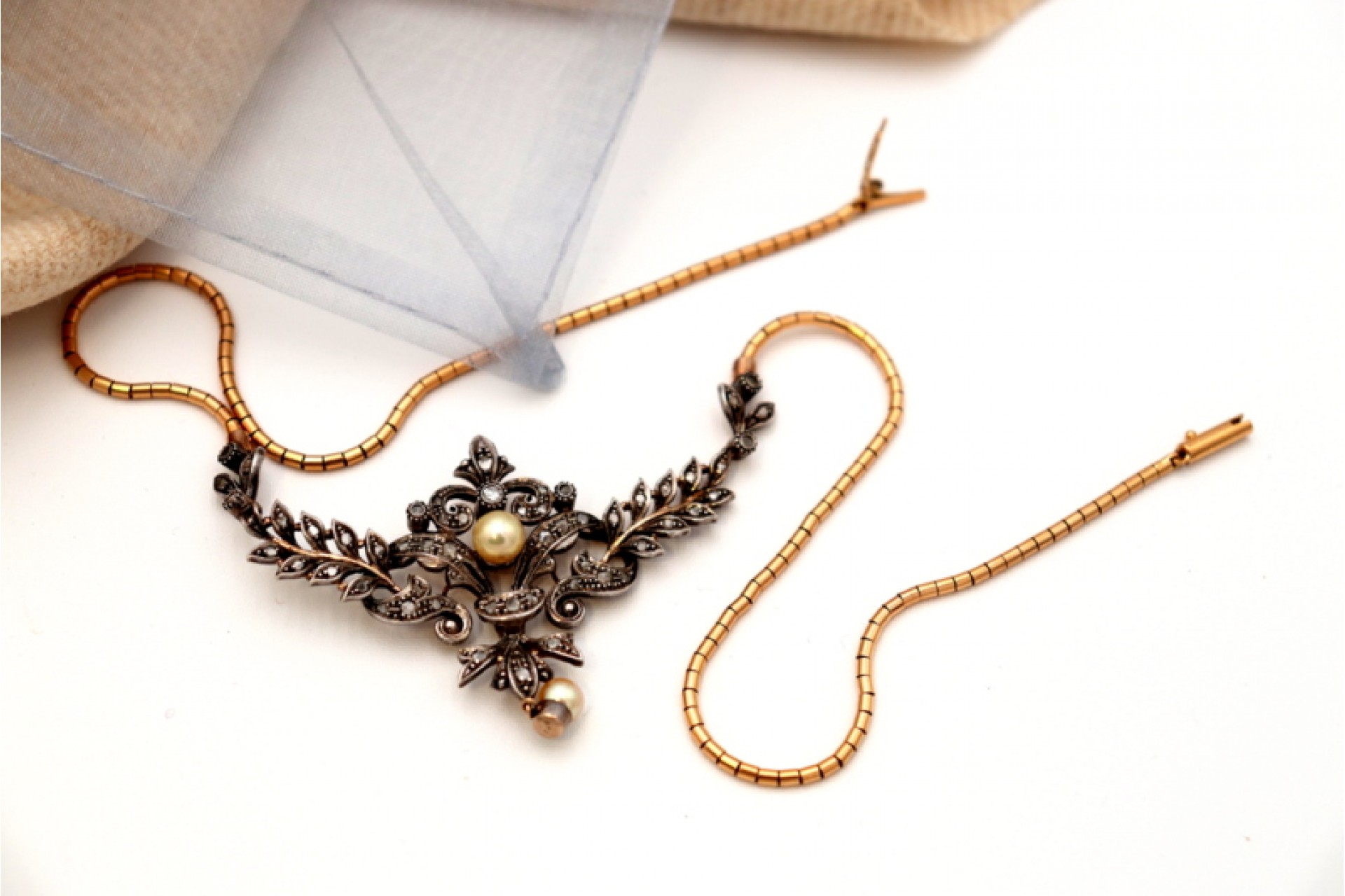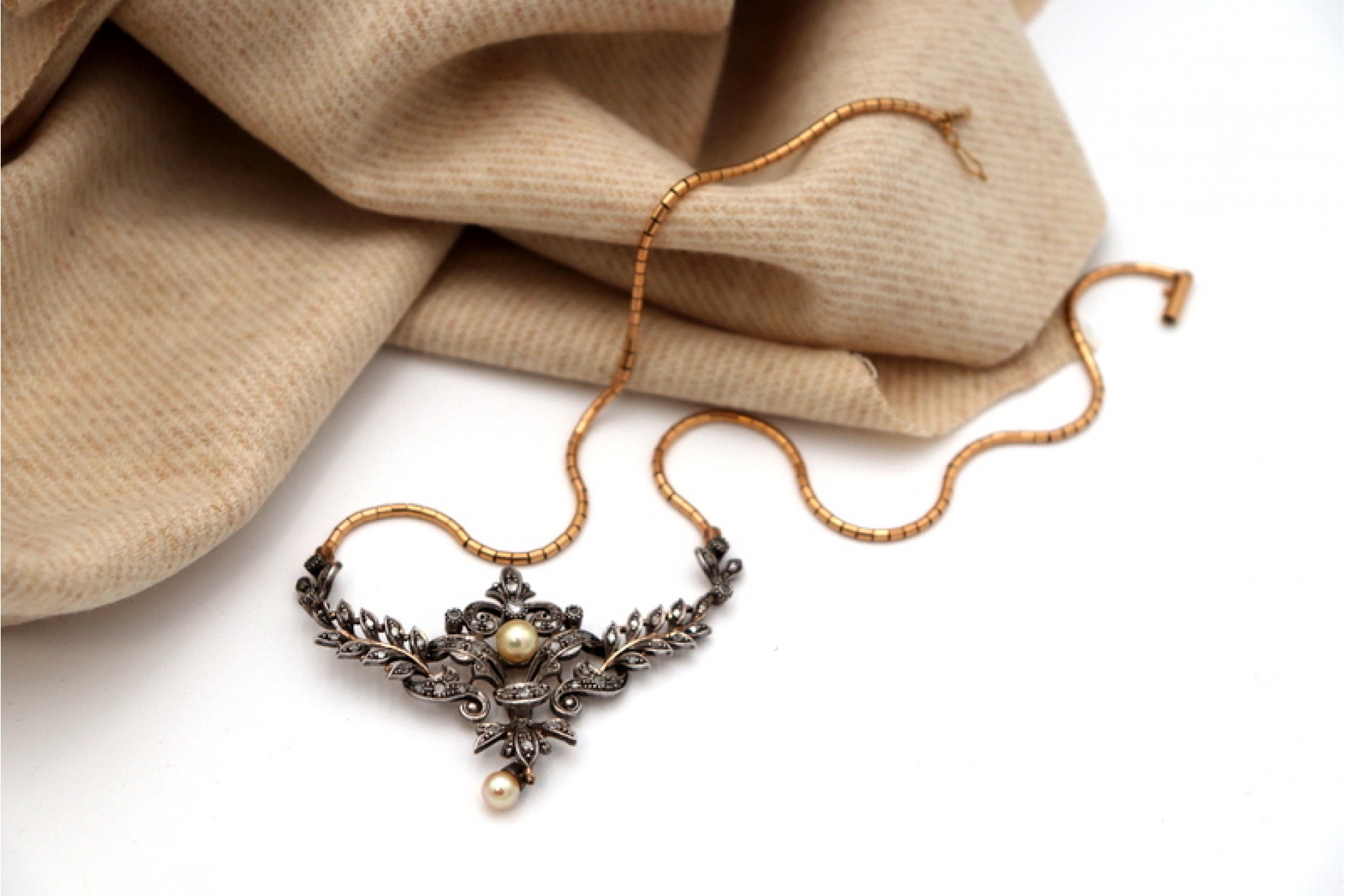 Etiquetas: Colar, Ouro, Lascas de diamante, Pérola