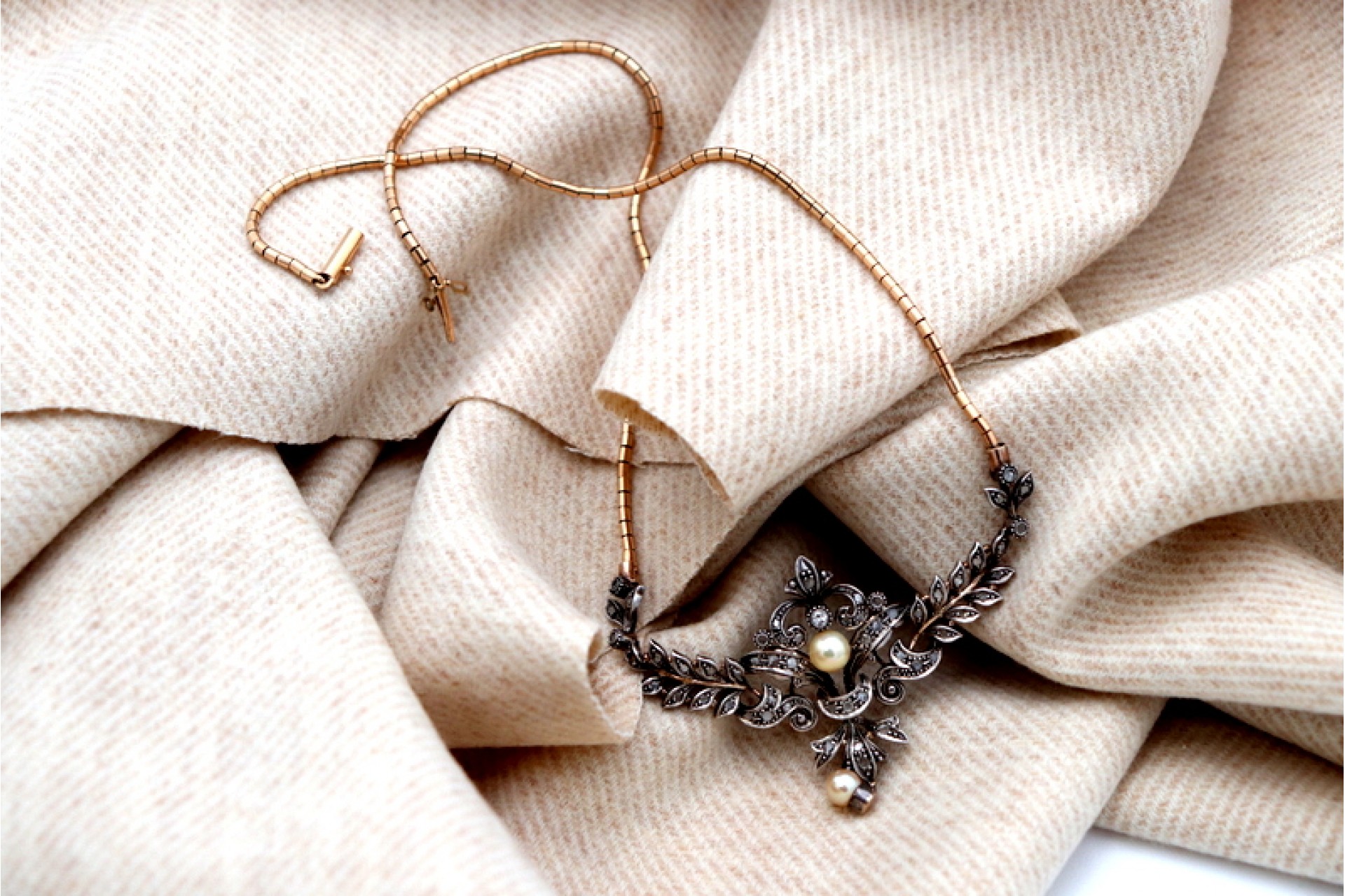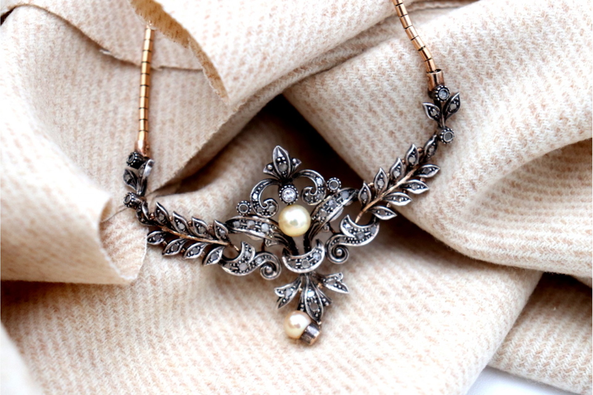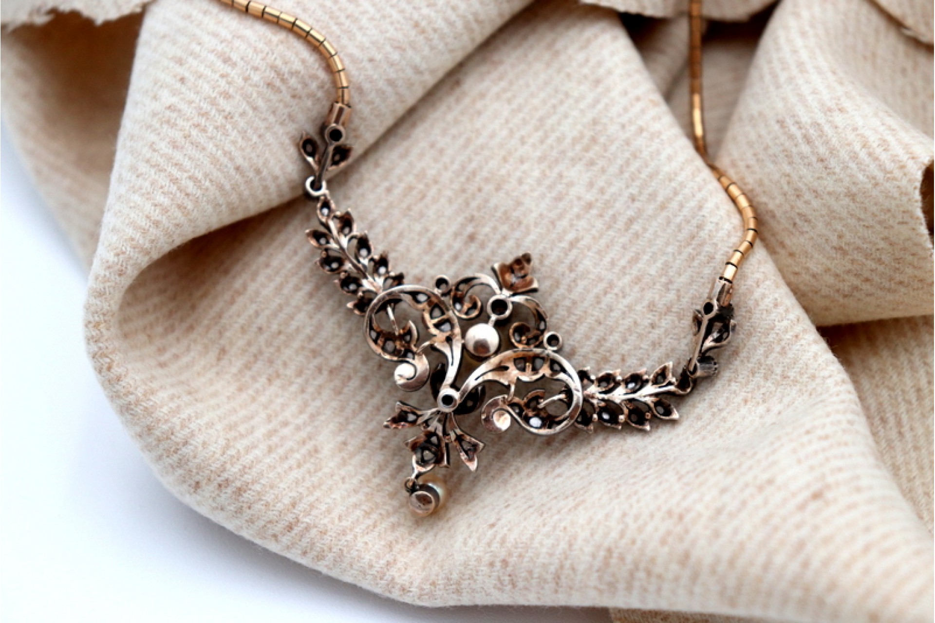 Etiquetas: Colar, Ouro, Lascas de diamante, Pérola