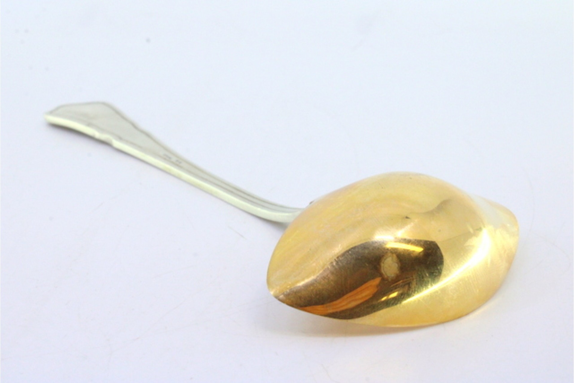 Colher de molhos em prata para ambidestros com friso ao longo do cabo e dourado na concha.