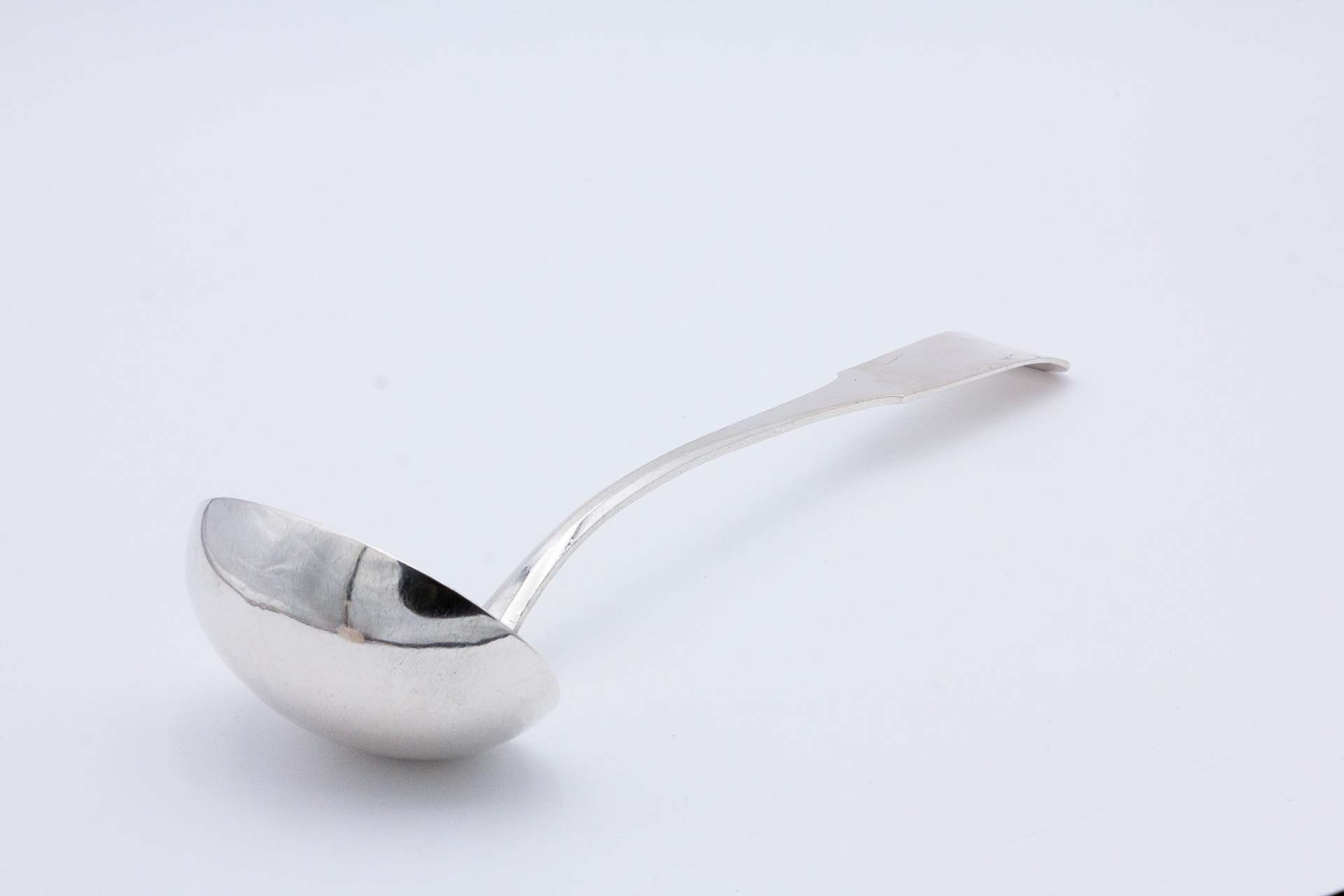 • Descrição: Concha de sopa em prata lisa com cabo a expedir recortado.
