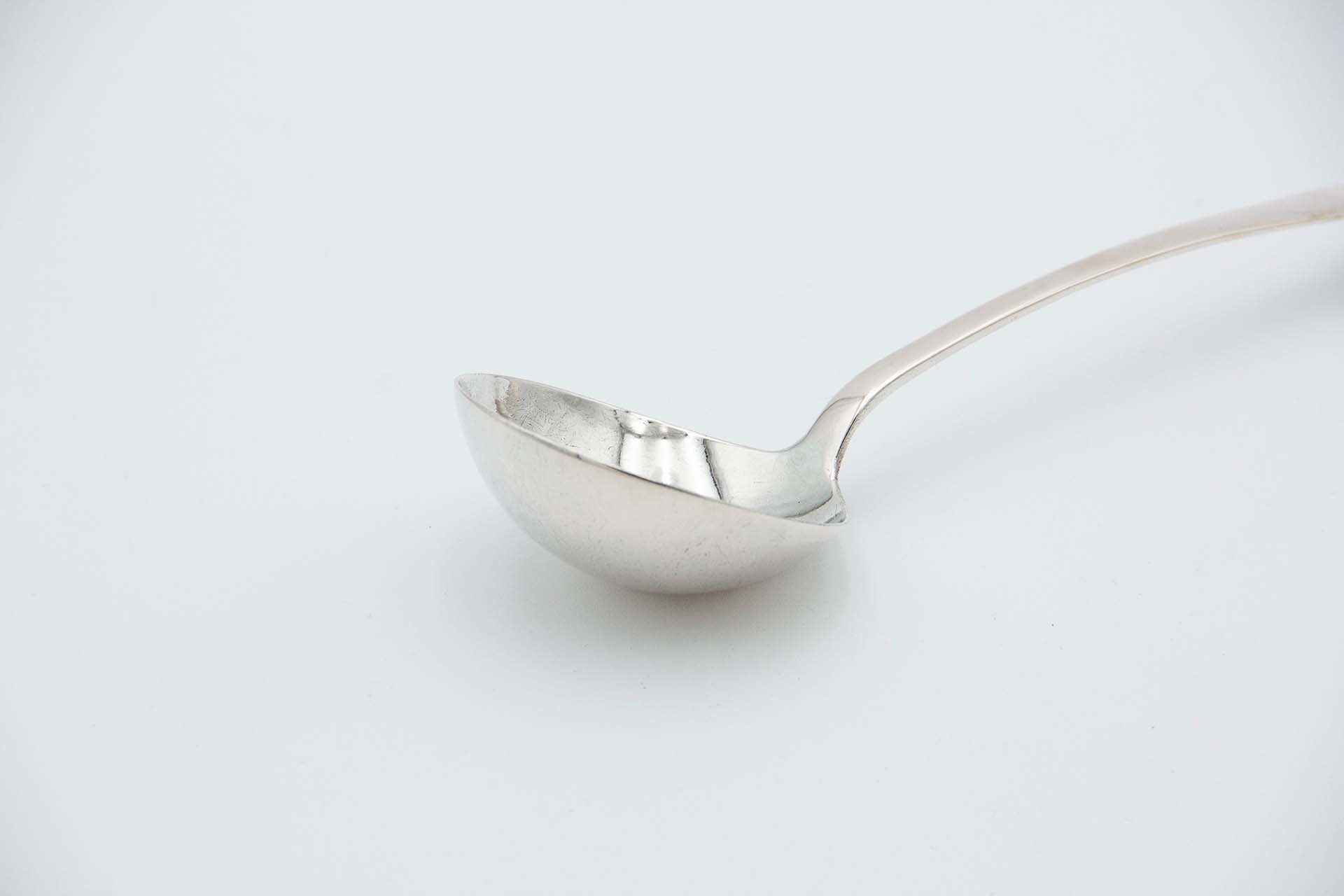 • Descrição: Colher de molhos em prata lisa com concha circular e cabo a expedir.