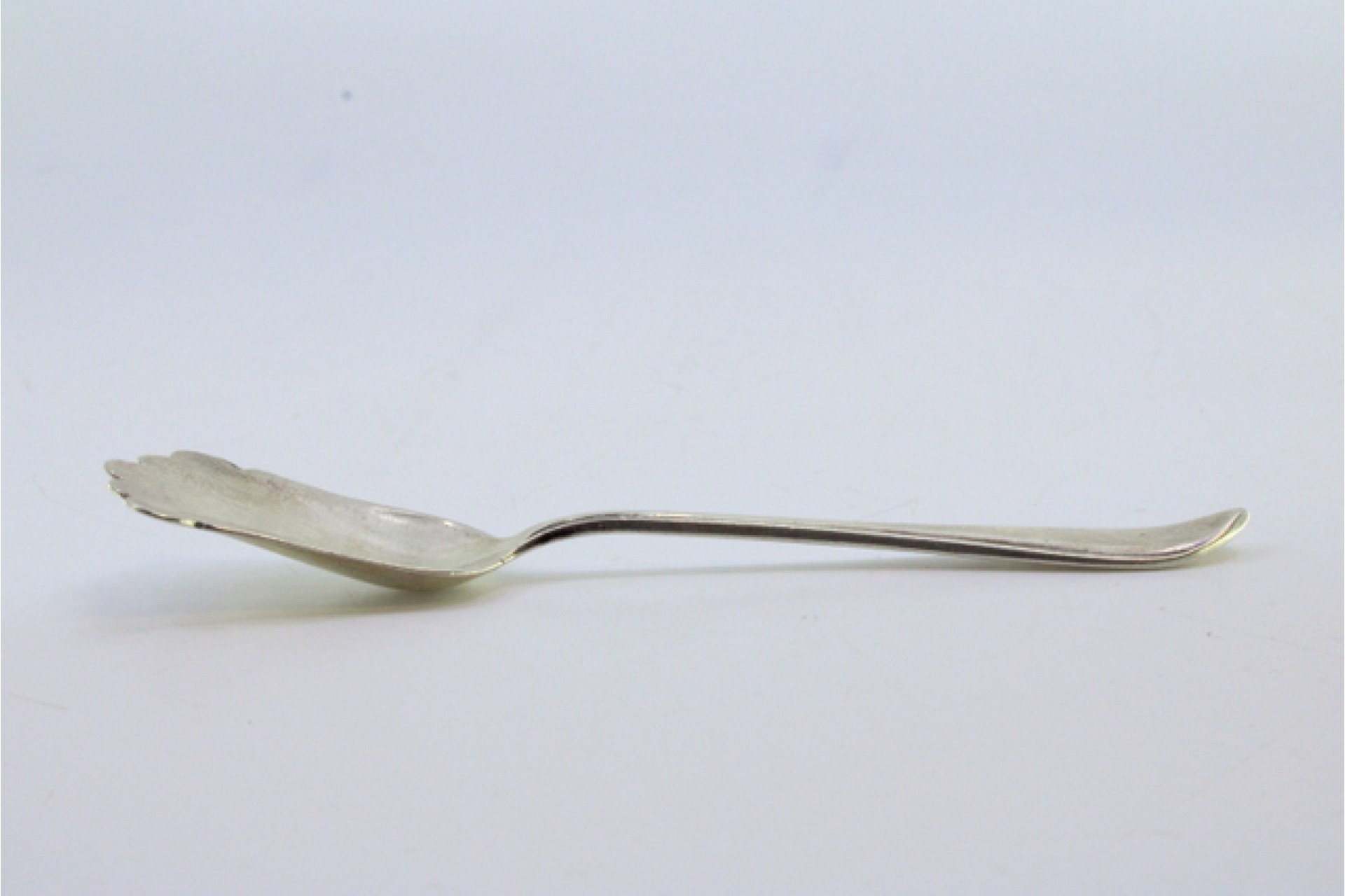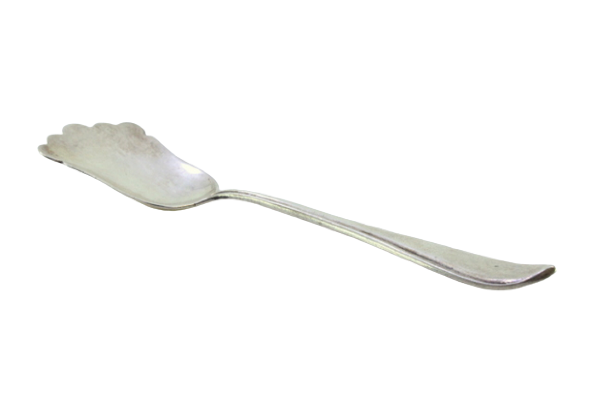 • Descrição: Colher de açúcar em prata com concha recortada e cabo frisado.