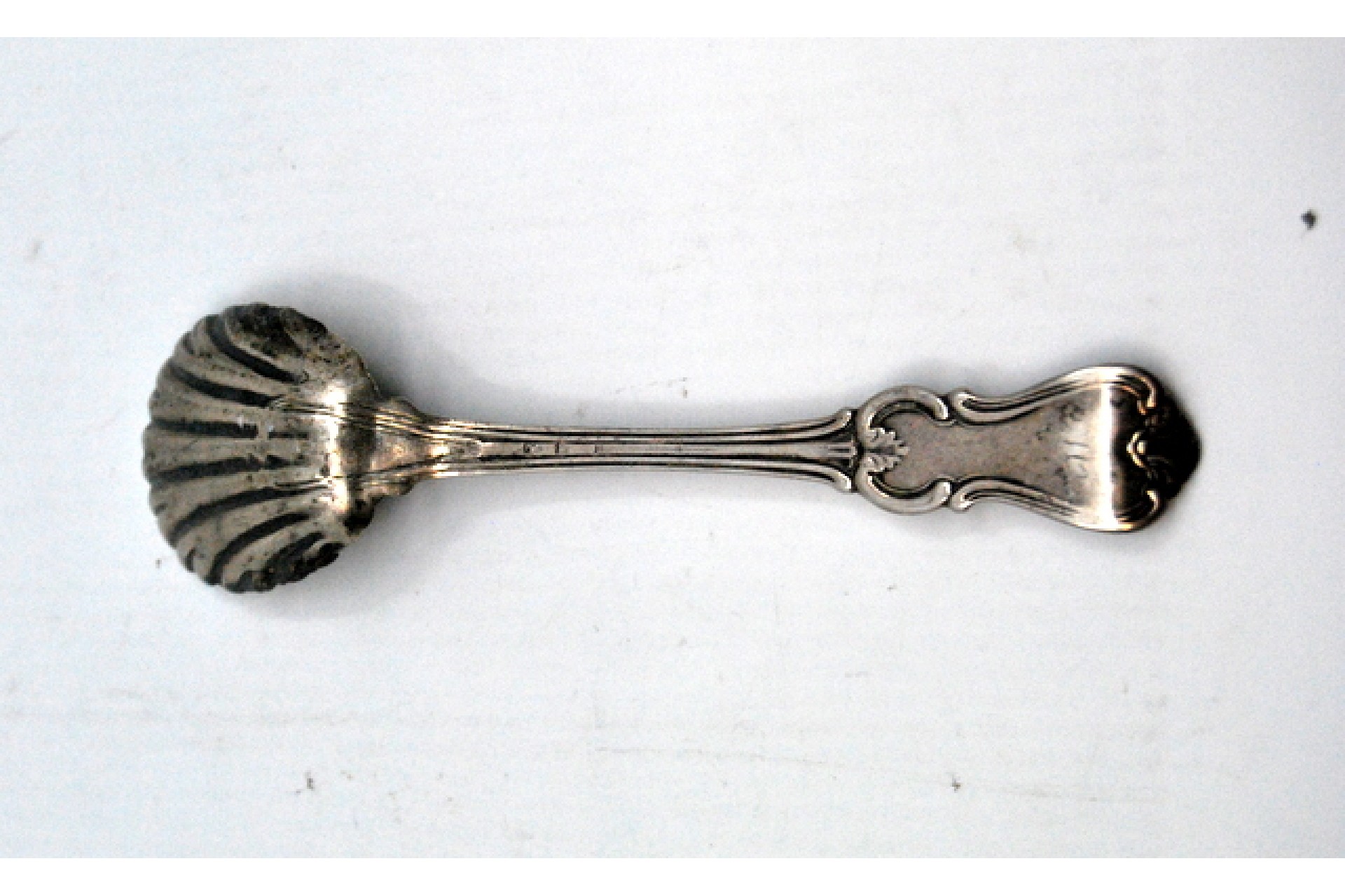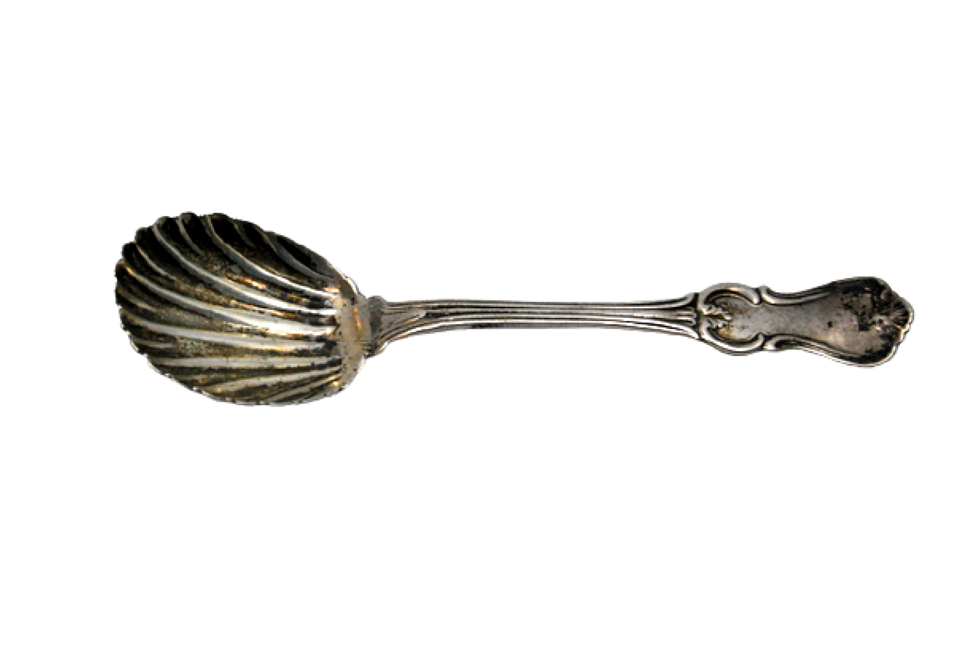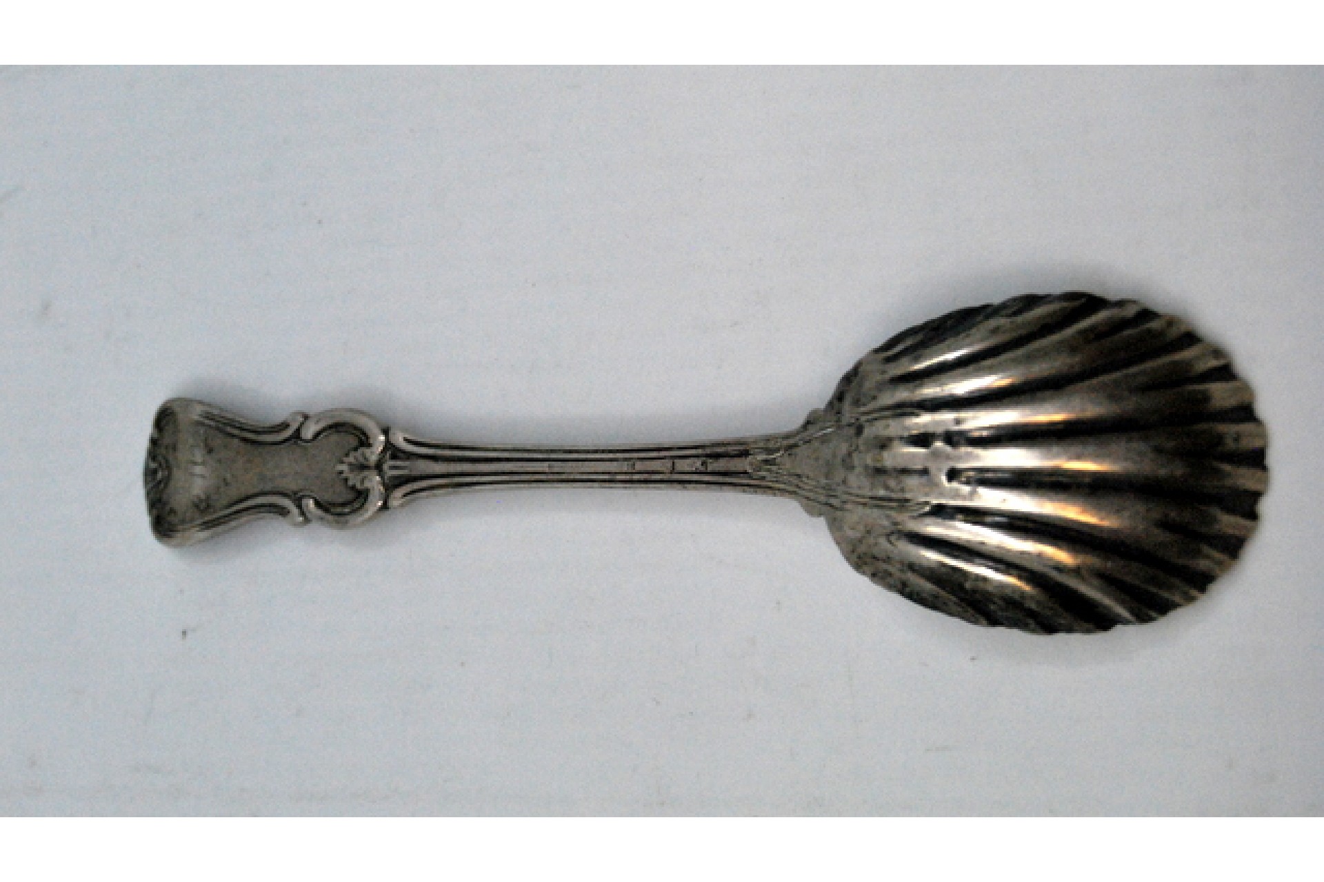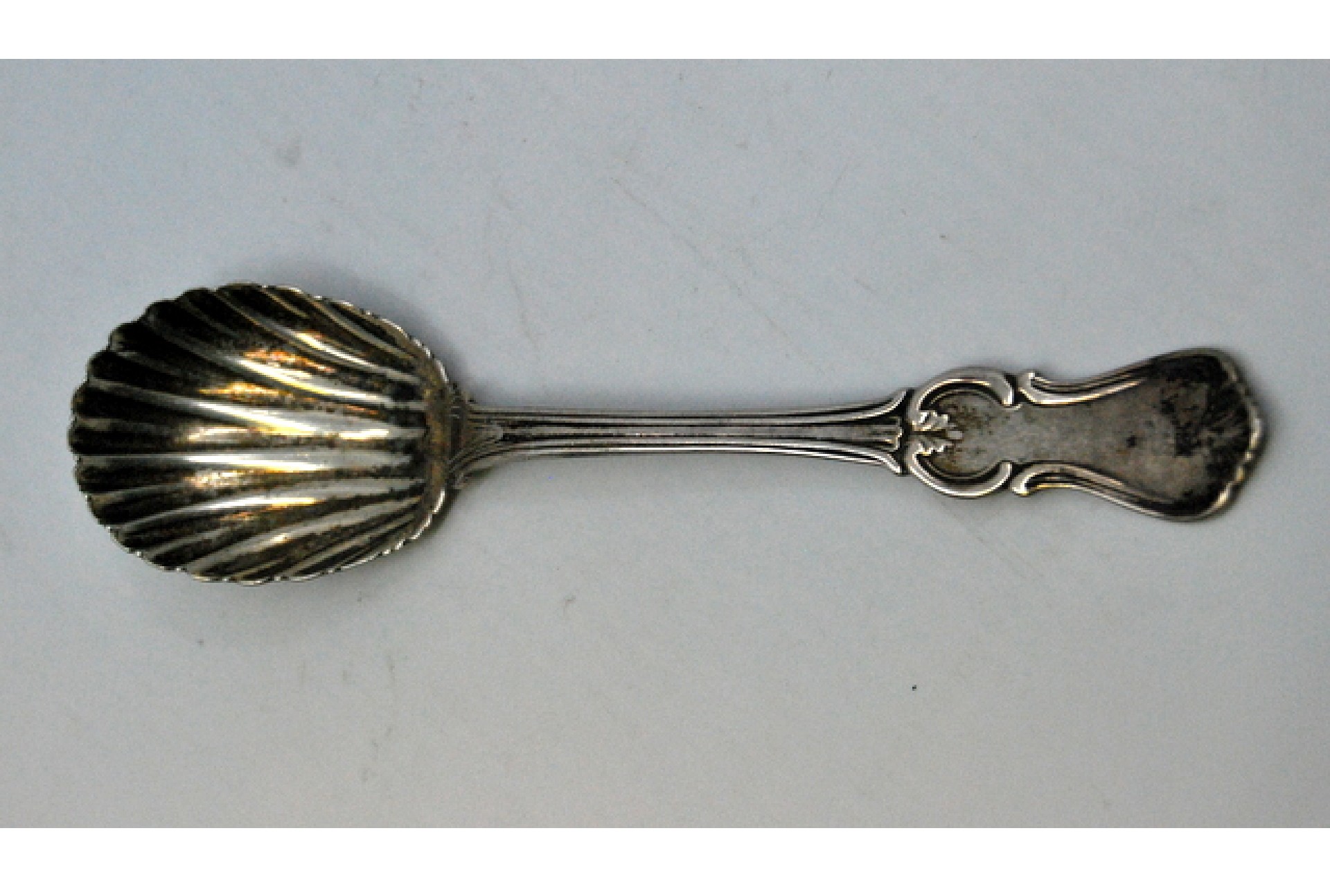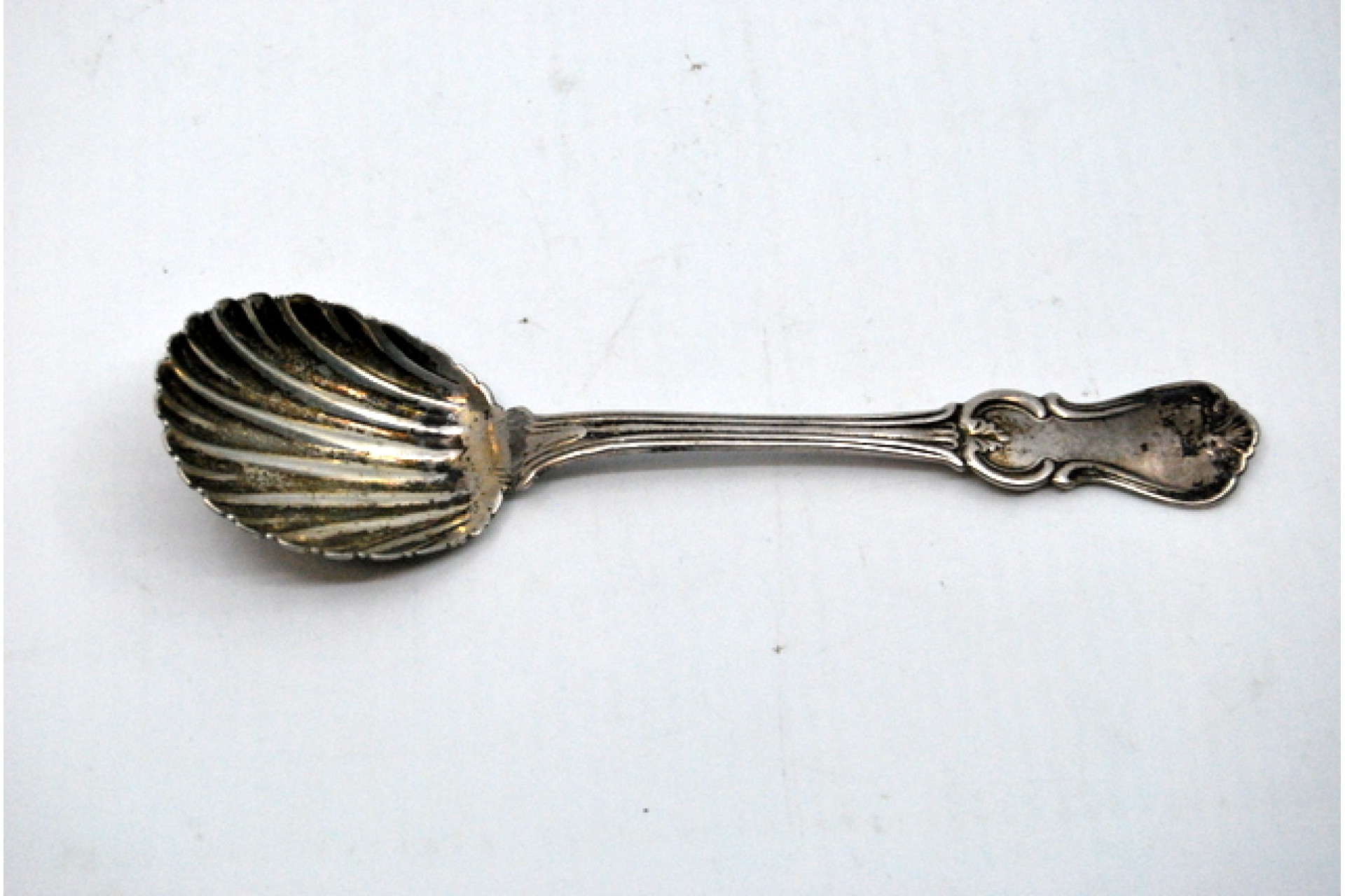• Descrição: Colher de açúcar em prata em formato de concha e cabo frisado.