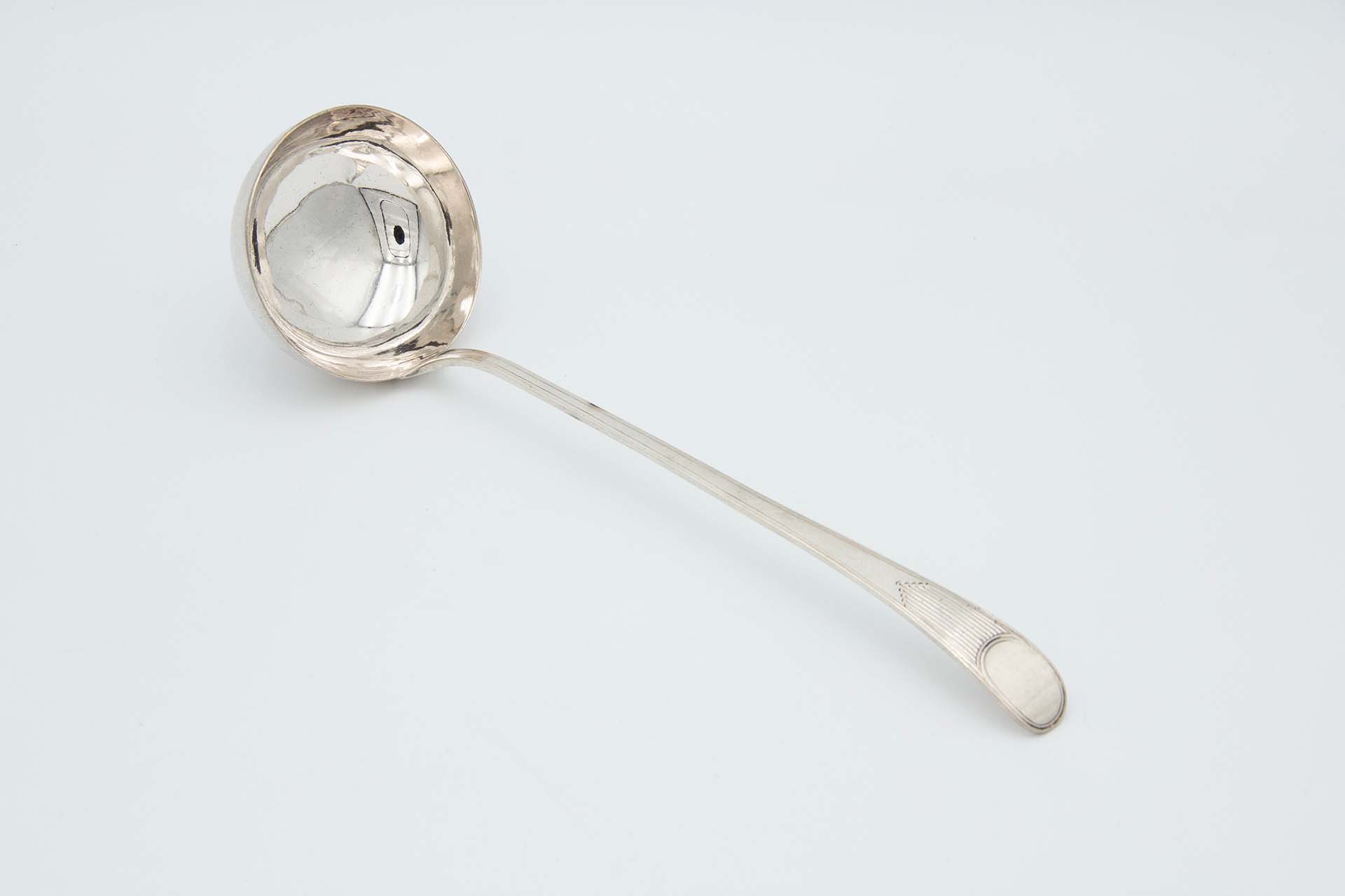 • Descrição: Concha de prata lisa com frisos e cartela no cabo.