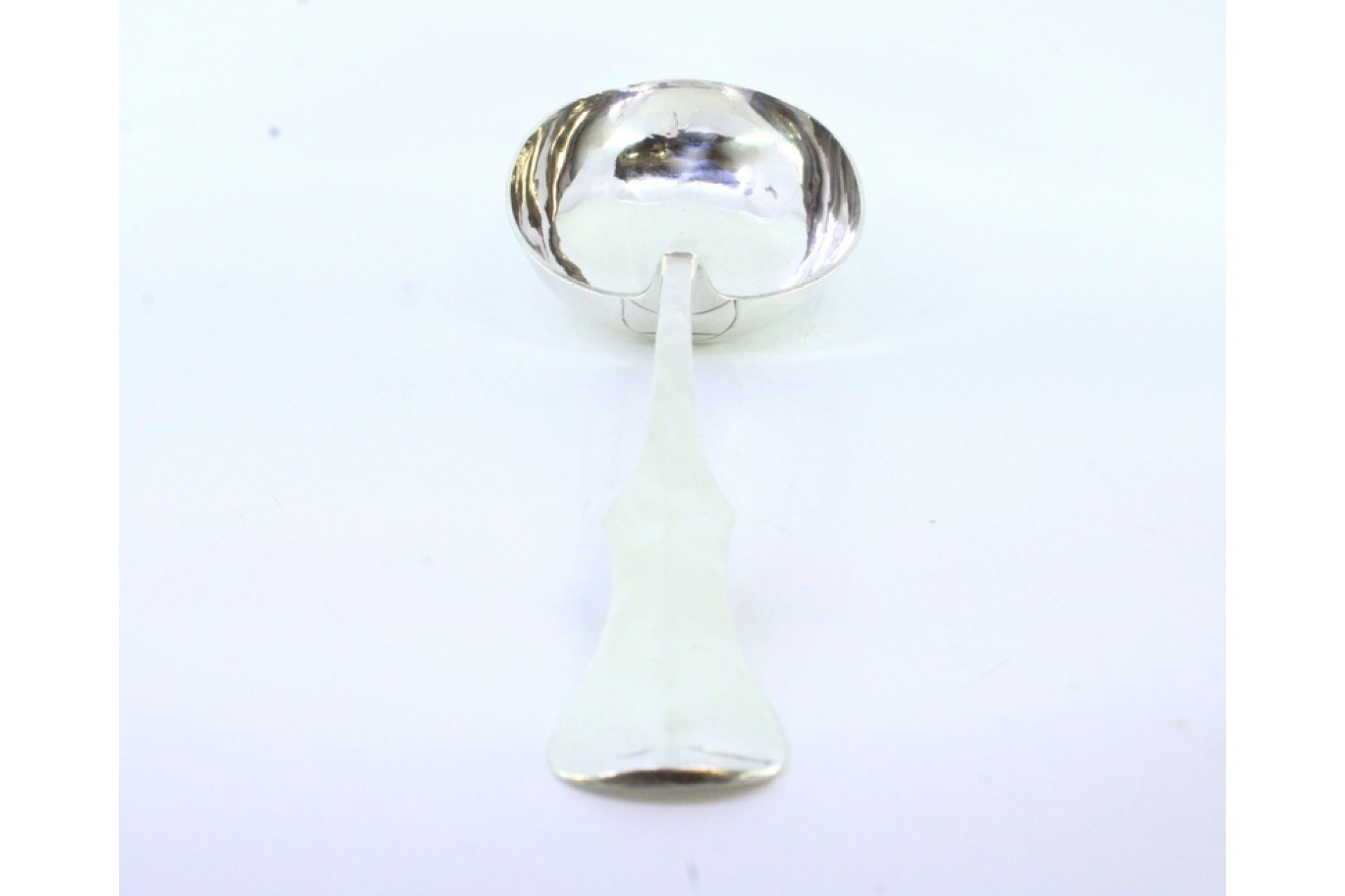 Concha de sopa em prata lisa com friso no cabo recortado.