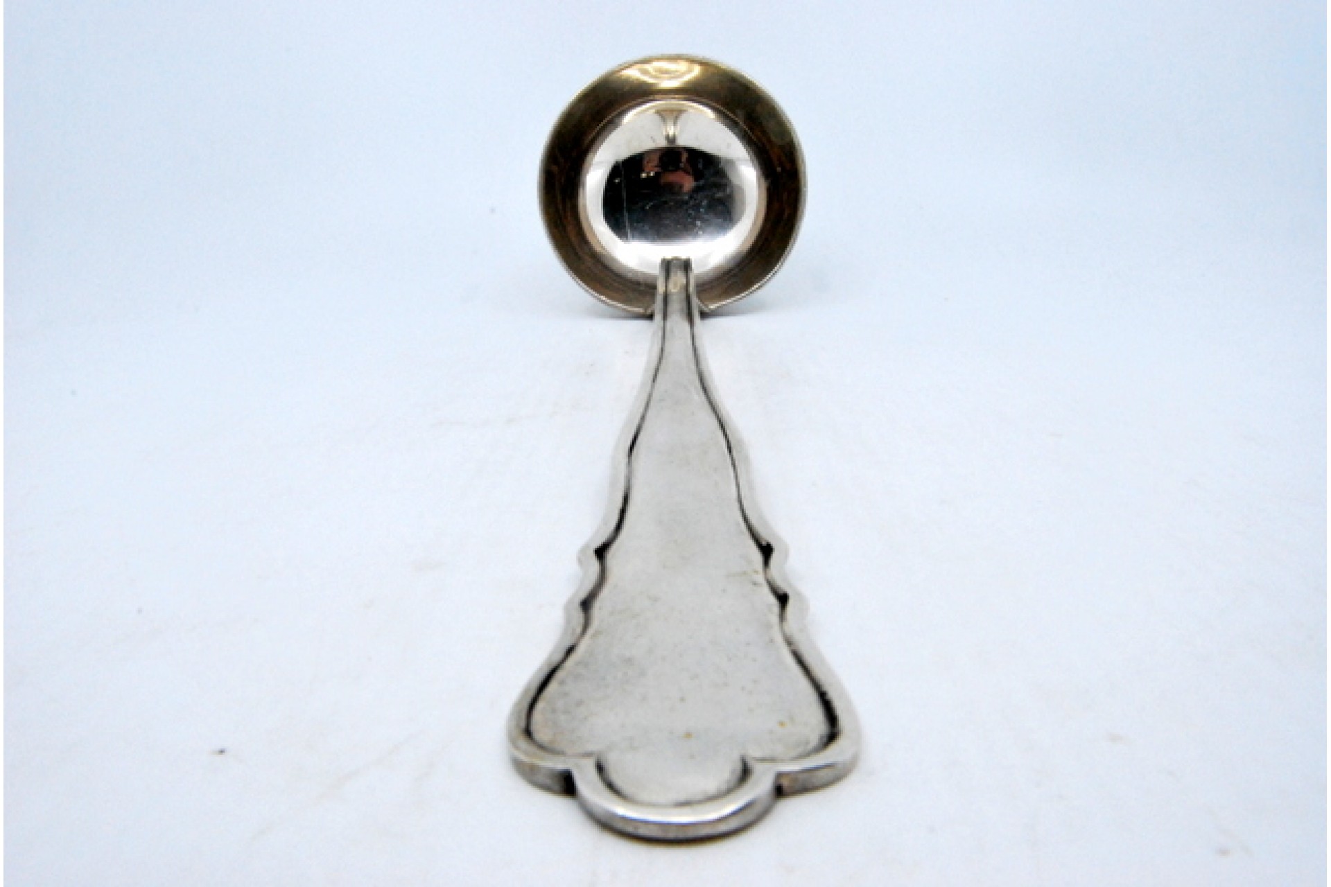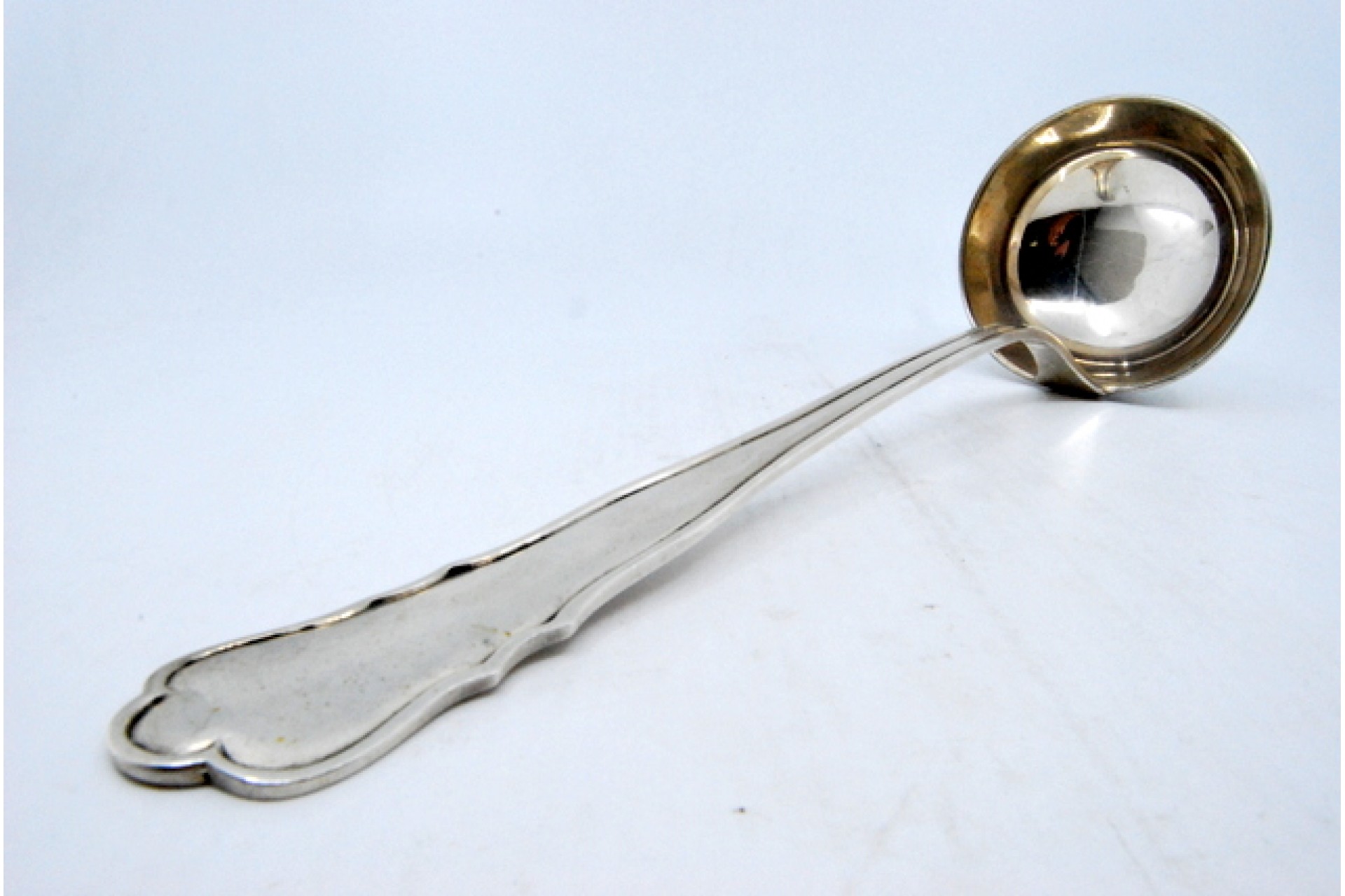 • Descrição: Concha de sopa em prata com frisos ao longo do cabo.