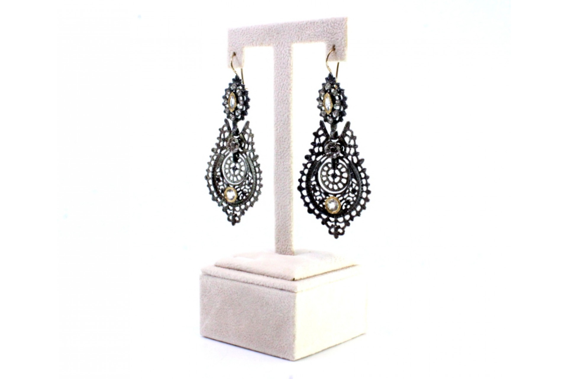 • Descrição: Par de brincos em ouro e prata com zircónias ao estilo rainha.
